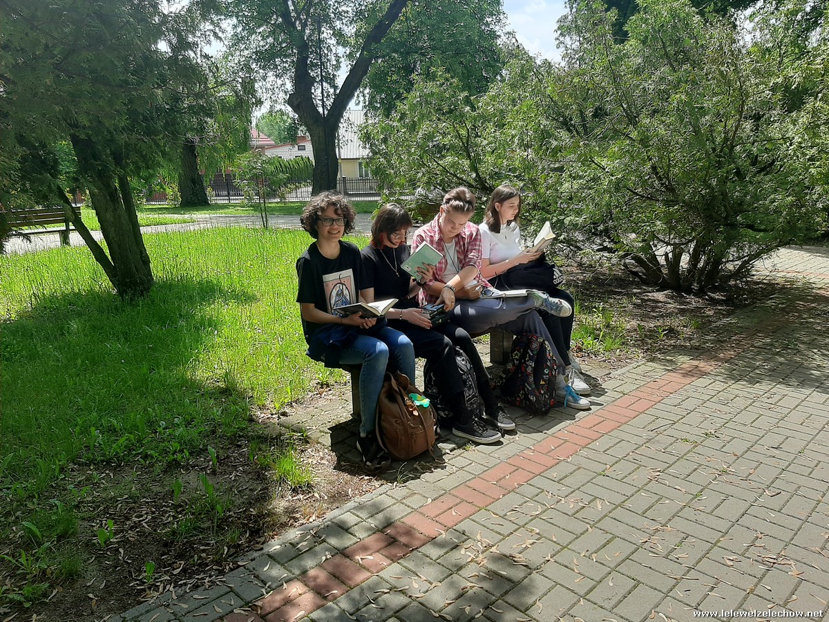 Trwała przez cały tydzień – od poniedziałku do piątku. Na długiej przewie uczniowie spotykali się na szkolnych alejkach, aby w cieniu drzew zanurzyć się w ulubionych tekstach literackich. We wspólnym czytaniu towarzyszyła nam Pani Dyrektor Sylwia Tomaszek, Pani Anna Włodarczyk oraz organizatorka akcji, Pani Magdalena Woźniak. Dziękujemy wszystkim za pięknie spędzony czas z książką.