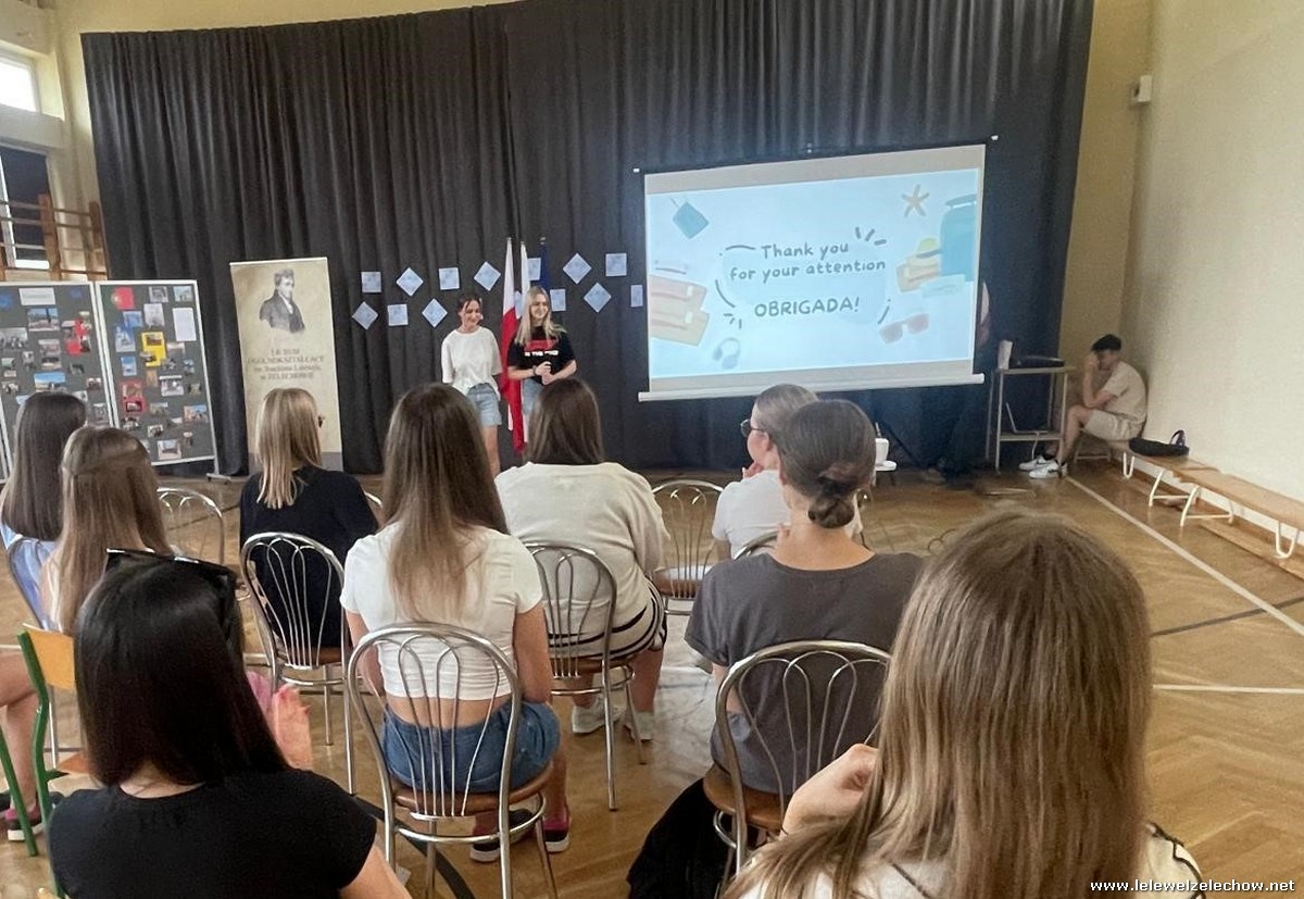 Uczniowie w trakcie wyjazdu edukacyjnego do Portugalii w czasie zajęć formalnych i nieformalnych wraz z uczniami szkoły partnerskiej, wymieniali się informacjami na temat swoich szkół, miejscowości i kraju. Grupa pierwsza podjęła tematy promujące polską kulturę, a tematem przewodnim grupy drugiej była ekologia, a konkretnie upcycling.