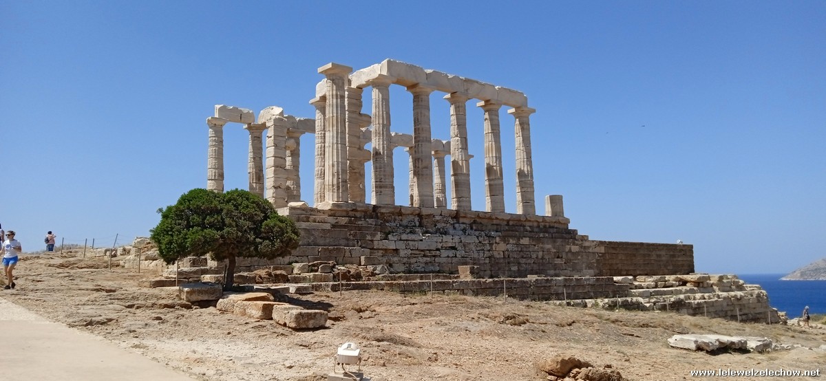 Na stromo wznoszącej się skale, od południa niemal pionowej, ponad 60 m nad lustrem Morza Egejskiego w epoce archaicznej znajdował się ołtarz. Budowę świątyni rozpoczęto na początku V wieku p.n.e. jednak w 490 r. p.n.e. została ona zniszczona przez Persów jeszcze przed ukończeniem. Ostatecznie świątynię Posejdona wzniesiono tutaj w 440 r. p.n.e.