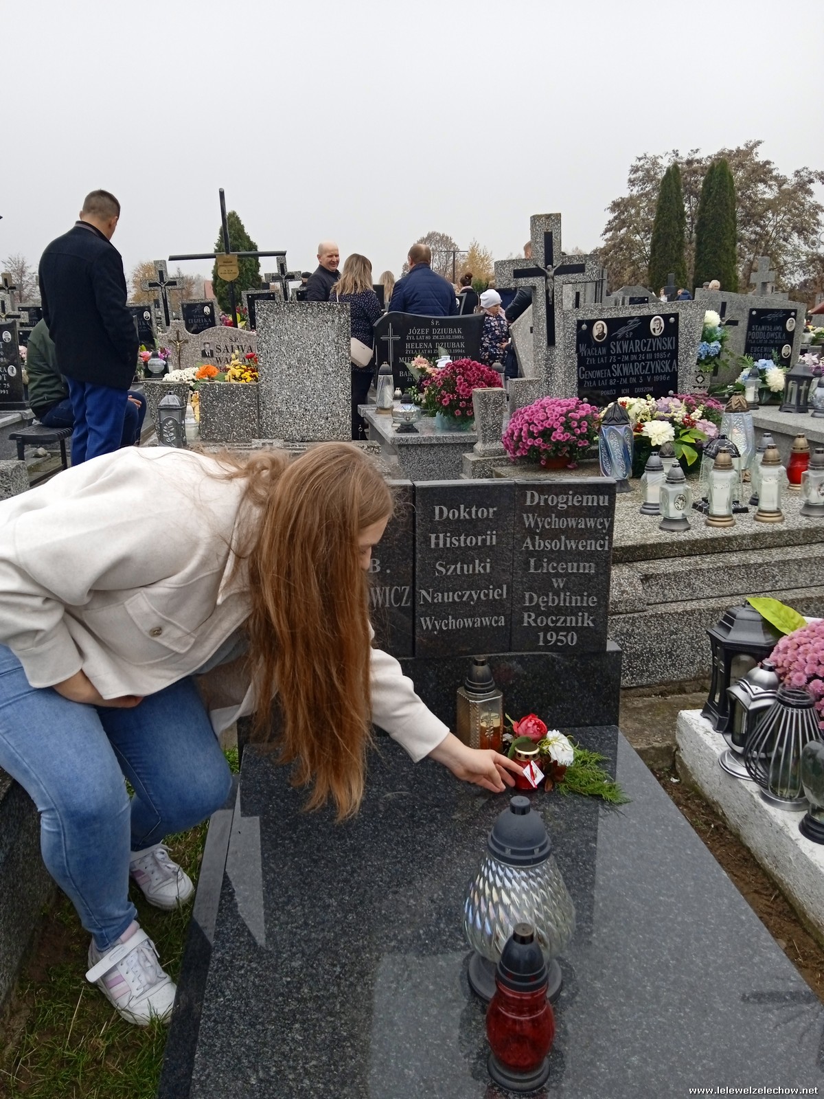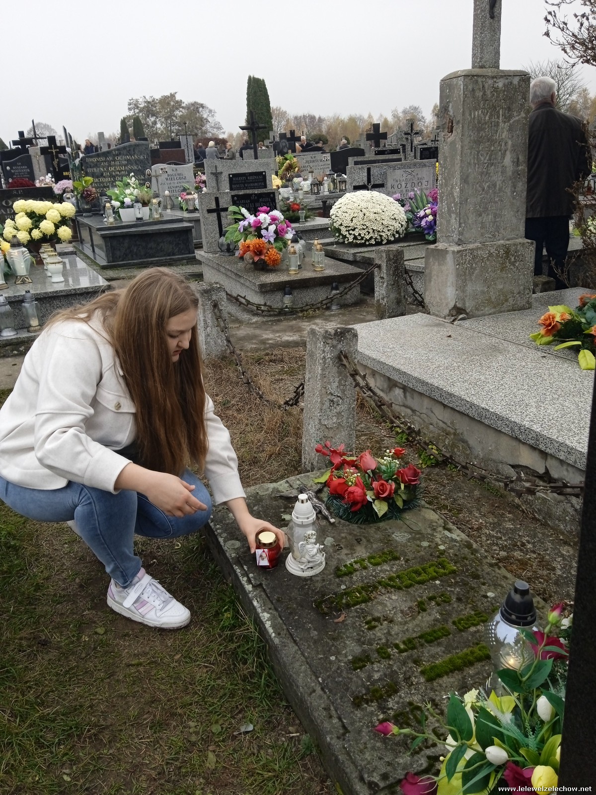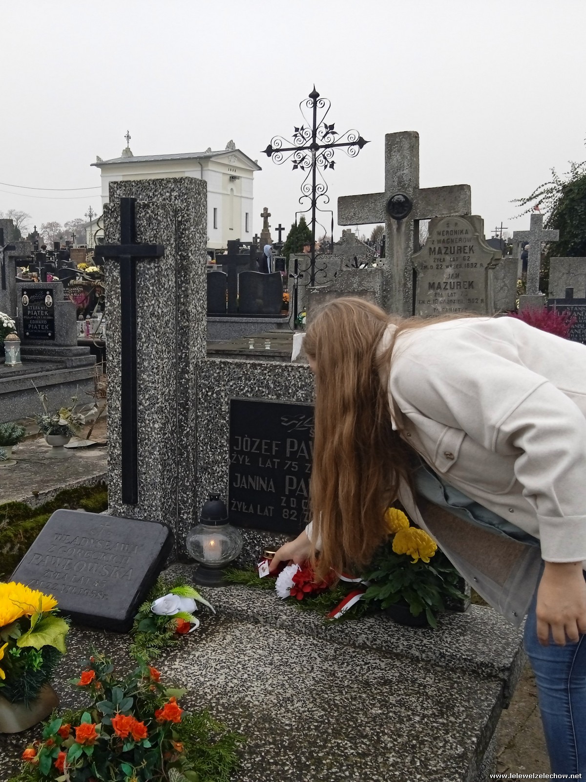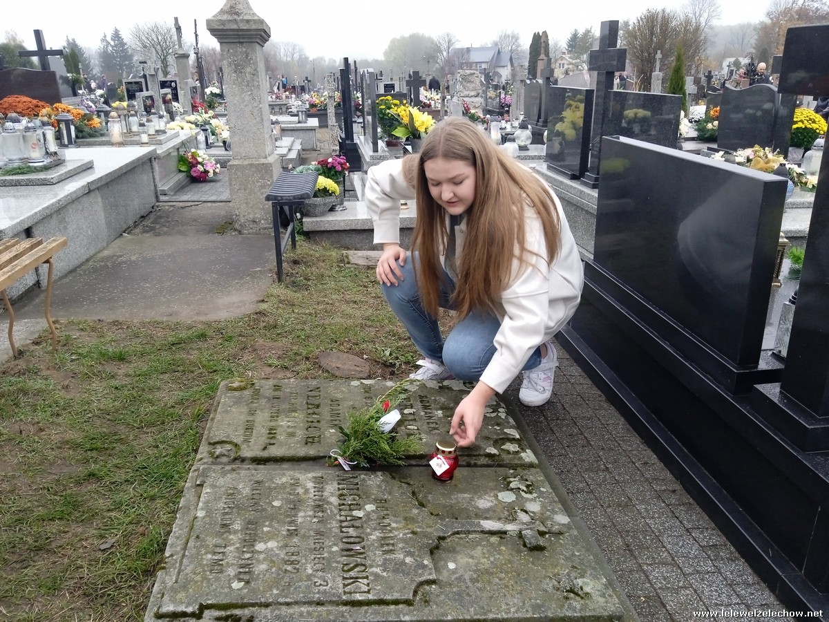 Jednocześnie tego dnia przewodnicząca SU Patrycja Pszczoła wraz z opiekunem- panią Urszulą Kobielus, zapaliły znicze na grobach osób zasłużonych oraz innych zabytkowych nagrobkach.