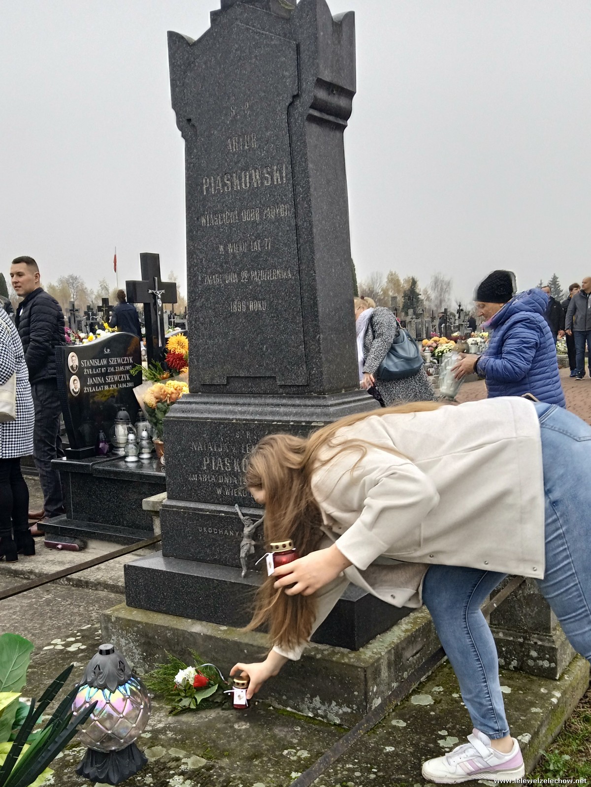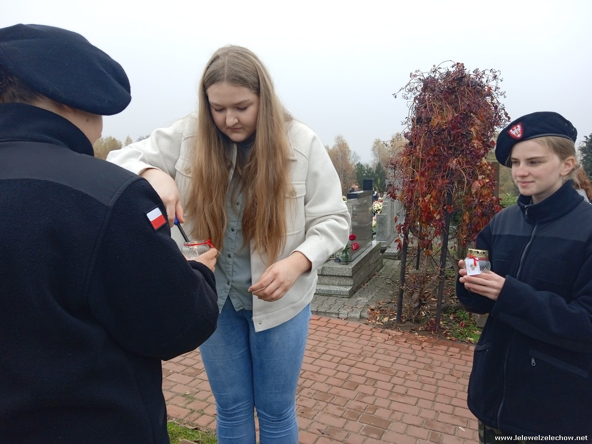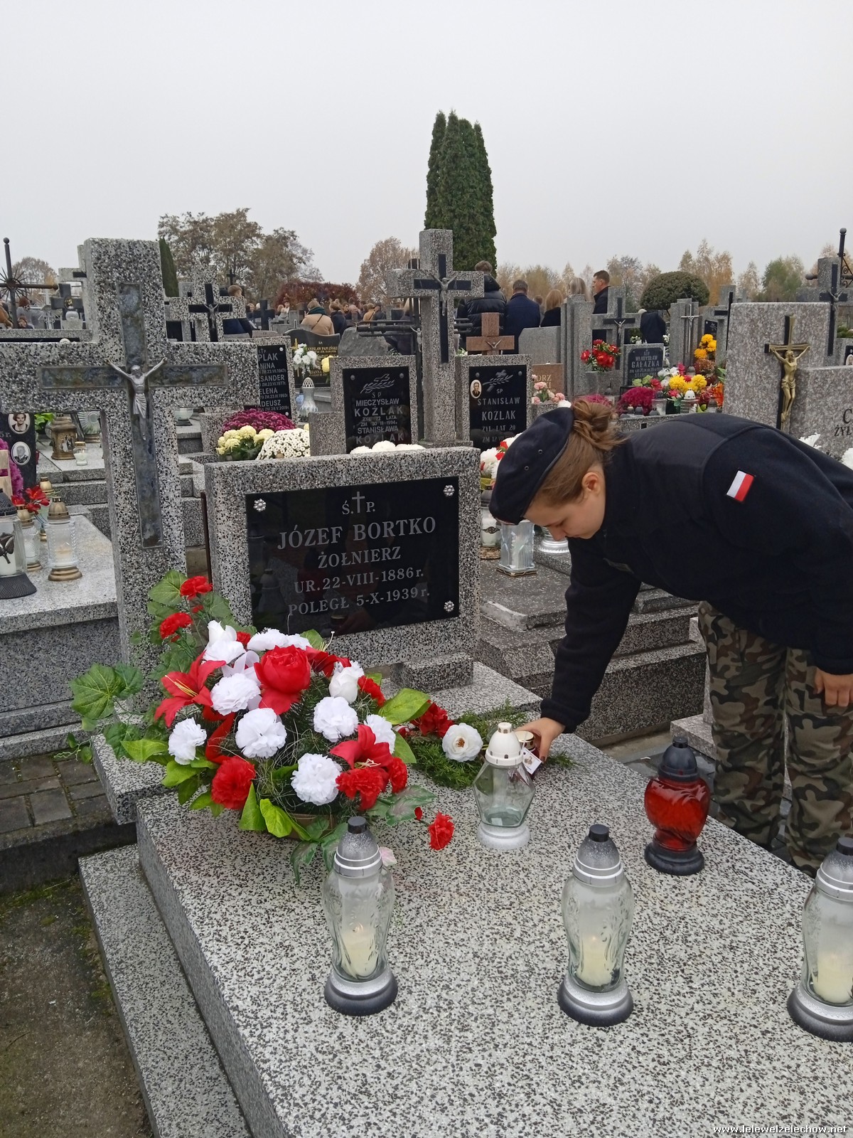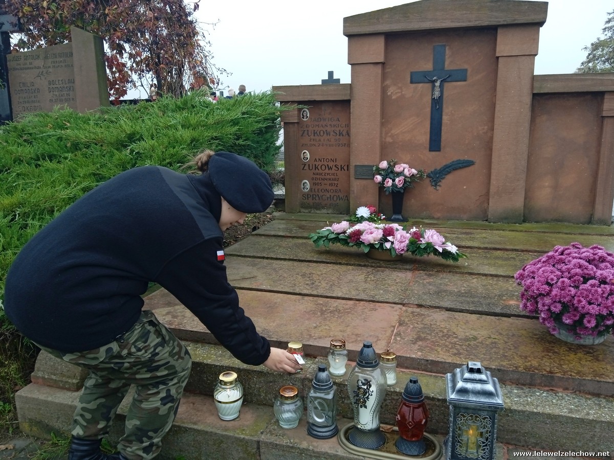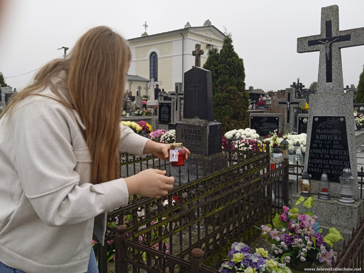 Jednocześnie tego dnia przewodnicząca SU Patrycja Pszczoła wraz z opiekunem- panią Urszulą Kobielus, zapaliły znicze na grobach osób zasłużonych oraz innych zabytkowych nagrobkach.