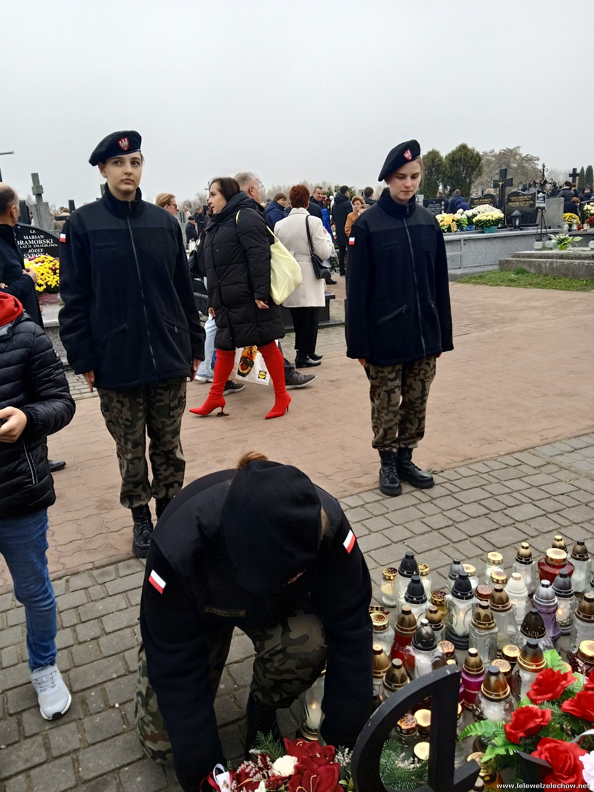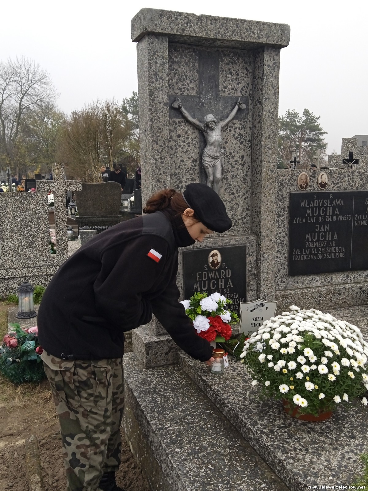 1 listopada od wielu już lat uczniowie mundurowi grupy policyjno-wojskowej naszego liceum pełnią uroczystą wartę przy tablicy AK na żelechowskim cmentarzu. W tym roku wartę pełniły uczennice klas II. Jak zawsze kadetów przygotował pan major Piotr Władziński.