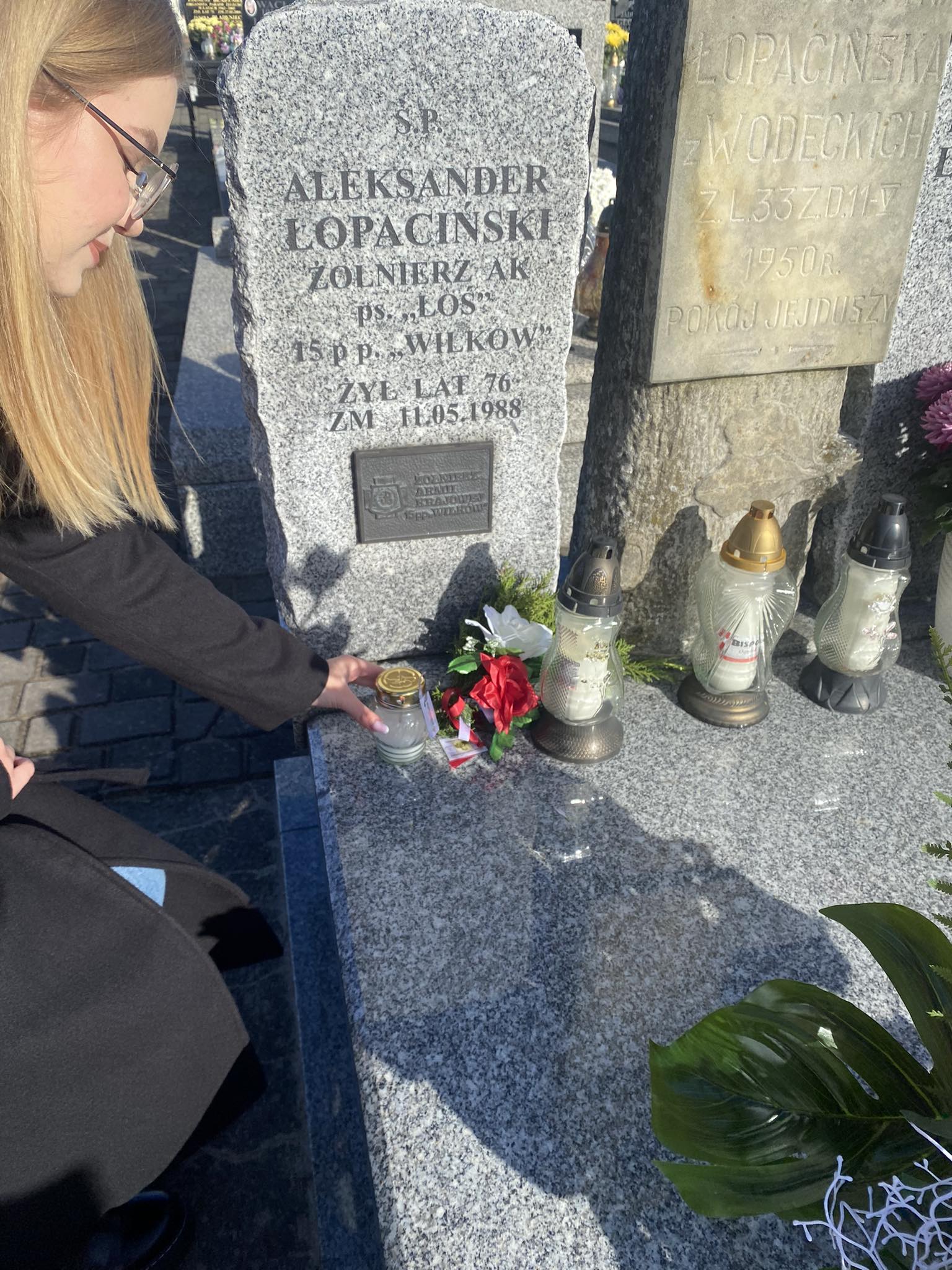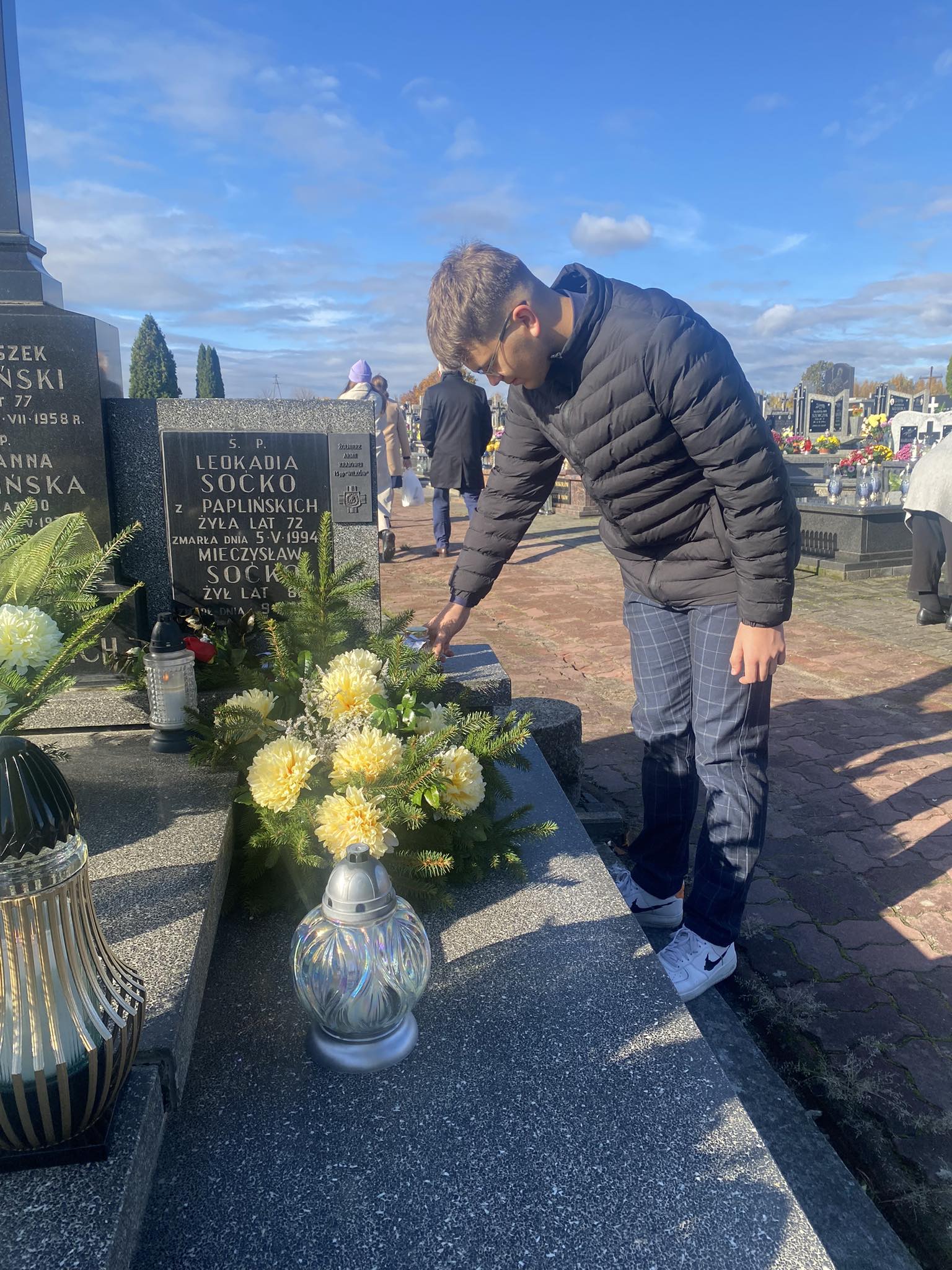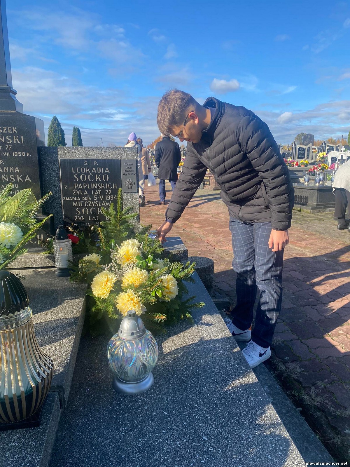 Uczniowie wraz z panią Dyrektor złożyli wiązanki na grobach dyrektorów szkoły: pana Władysław Opali oraz pani Antoniny Salwy.