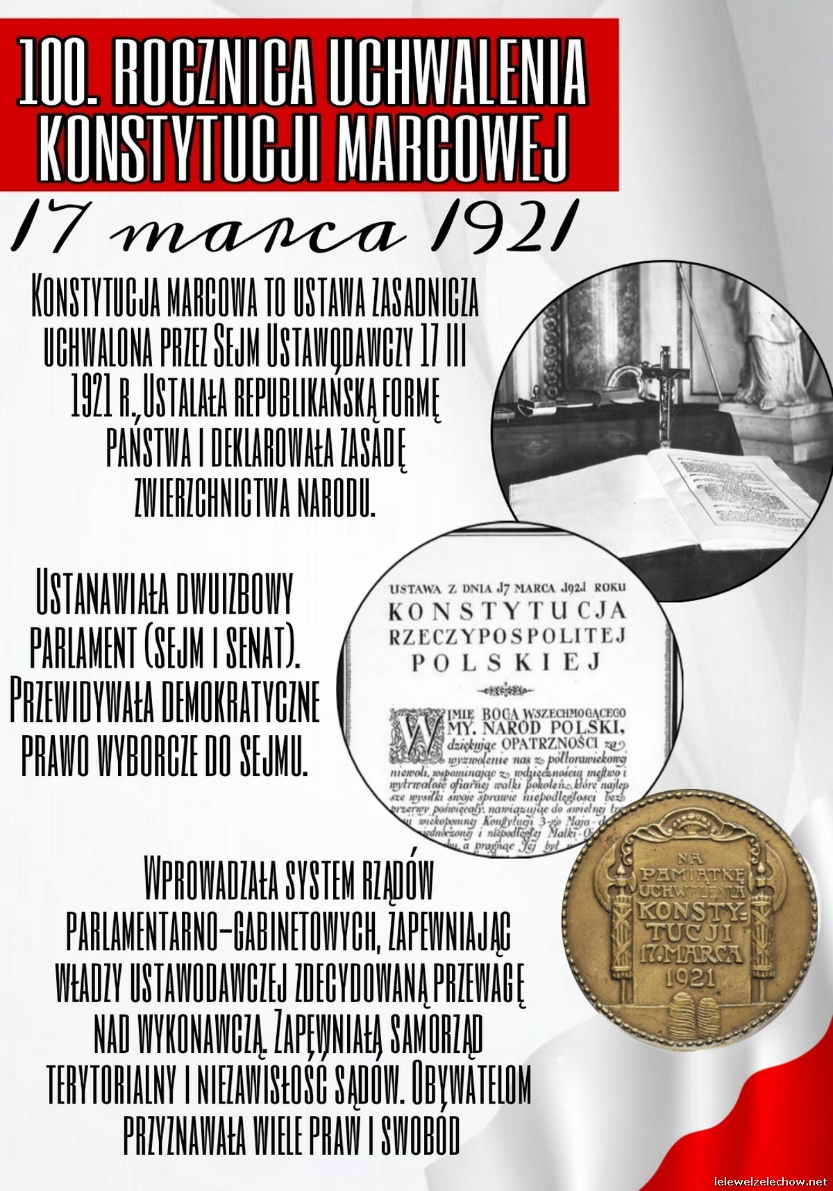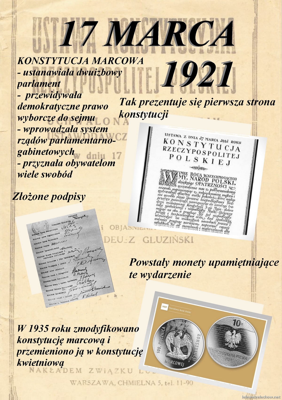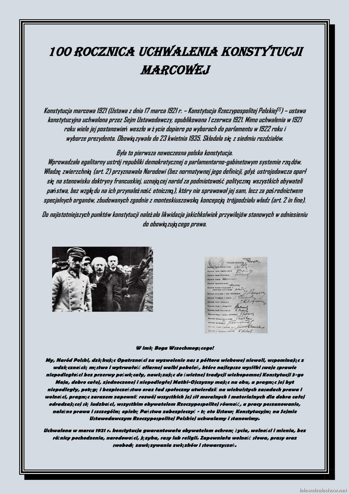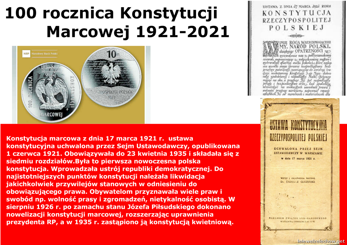 100 lat temu 17 marca 1921 roku uchwalona została pierwsza pełna konstytucja II Rzeczypospolitej -Konstytucja Marcowa. Z tej okazji uczniowie klas I wykonali w ramach lekcji historii okolicznościowe plakaty.