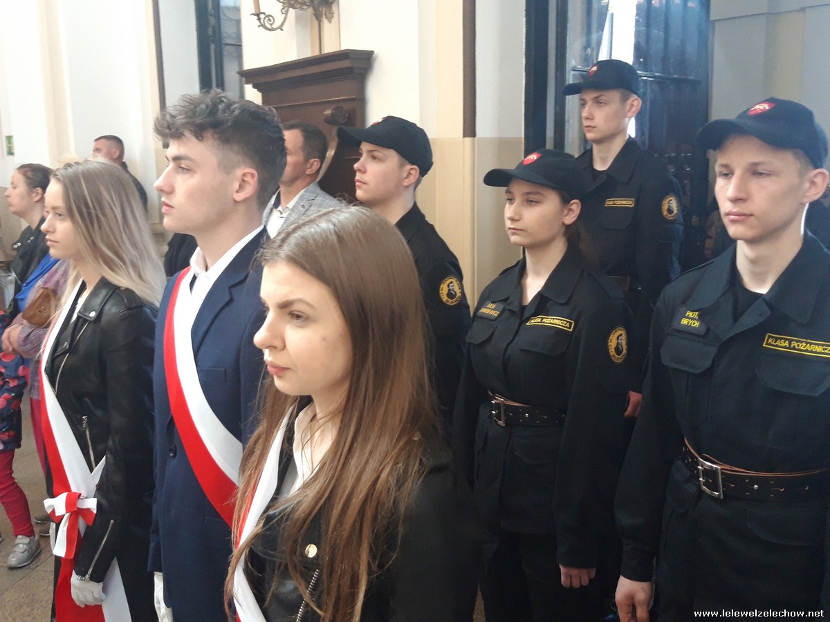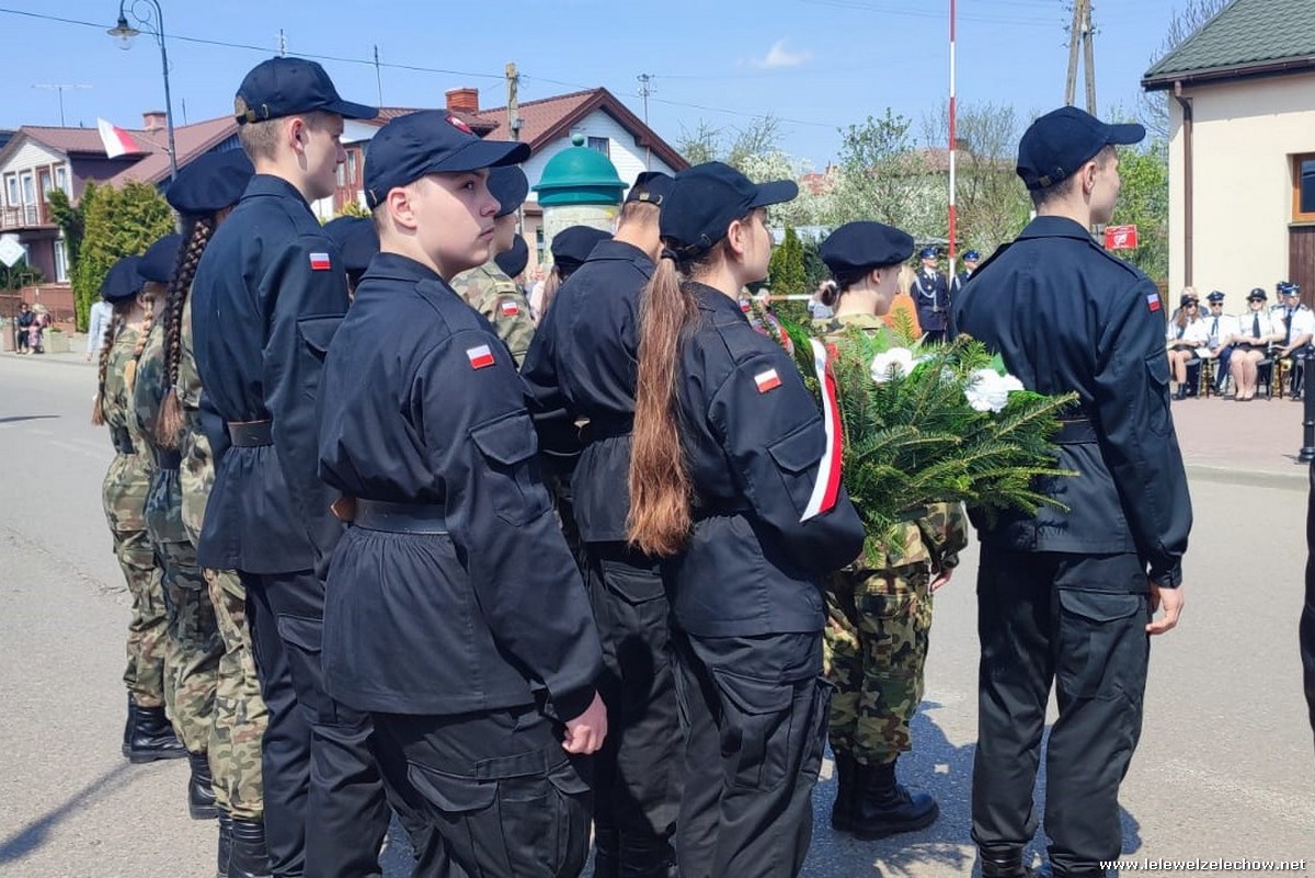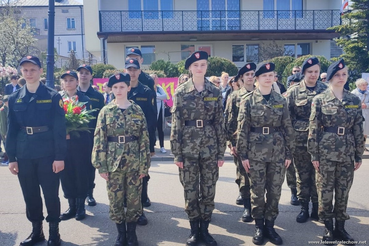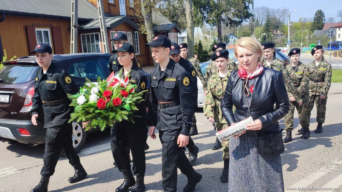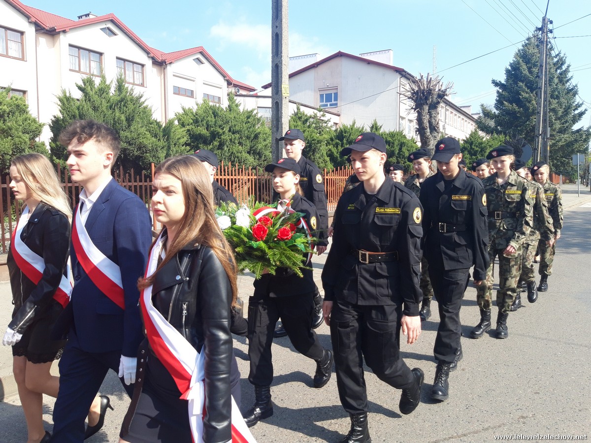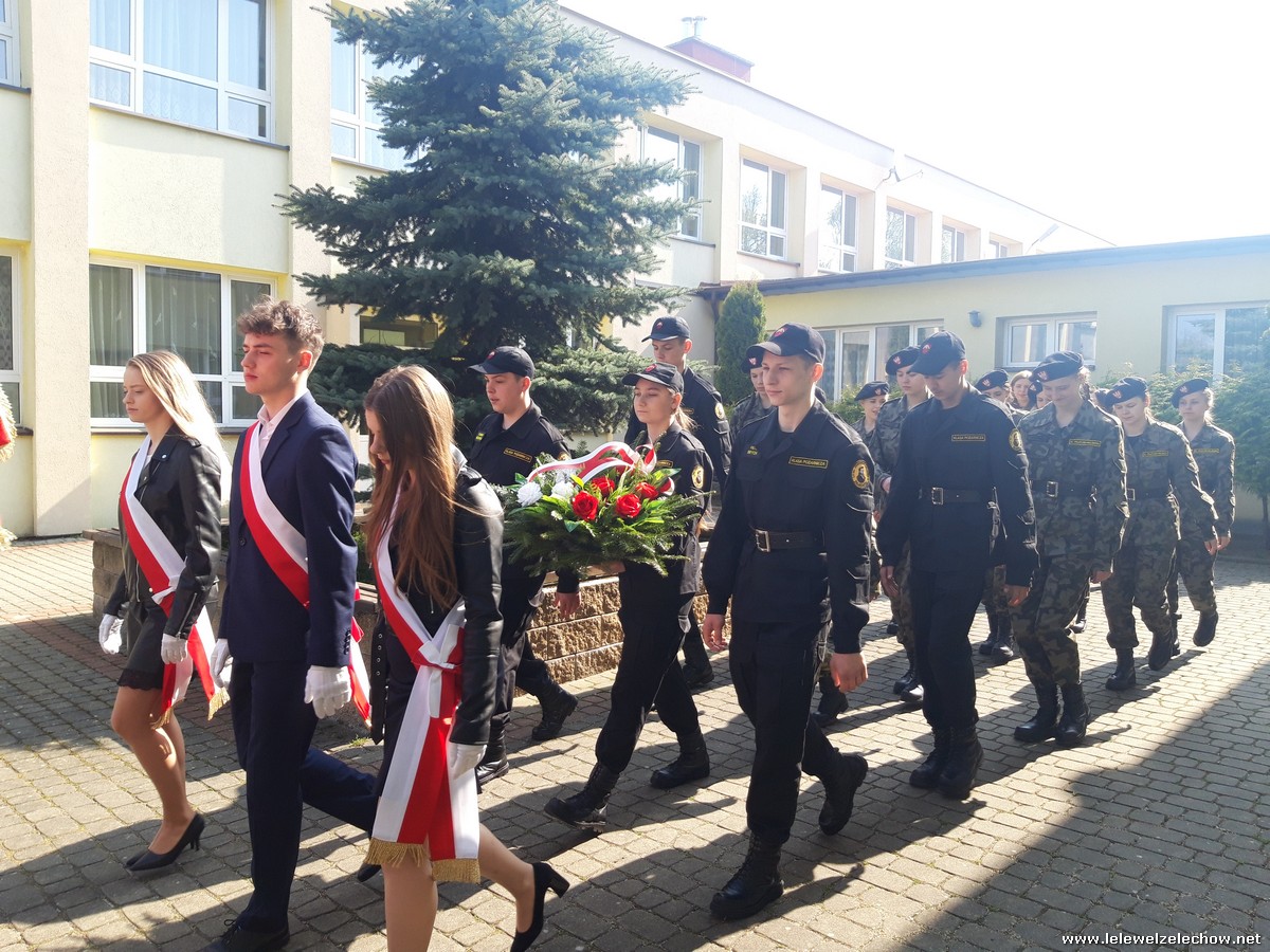Poczet sztandarowy liceum, delegacja mundurowych wraz nauczycielami, uczestniczyli we Mszy Św. oraz obchodach gminnych na placu przy pomniku Konstytucji, gdzie złożyli kwiaty.