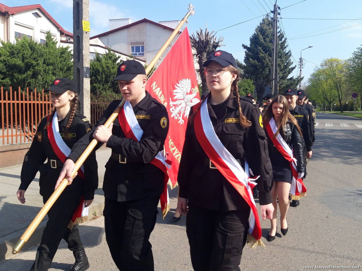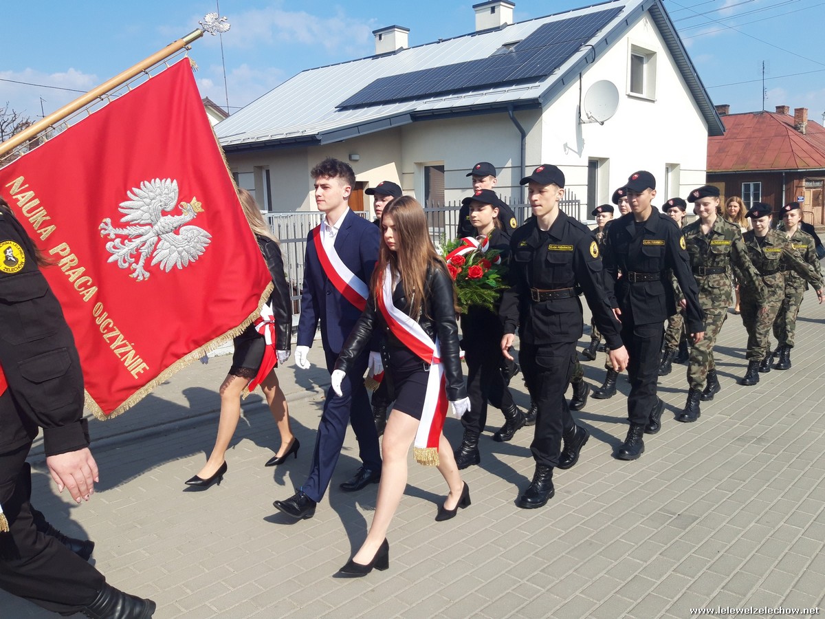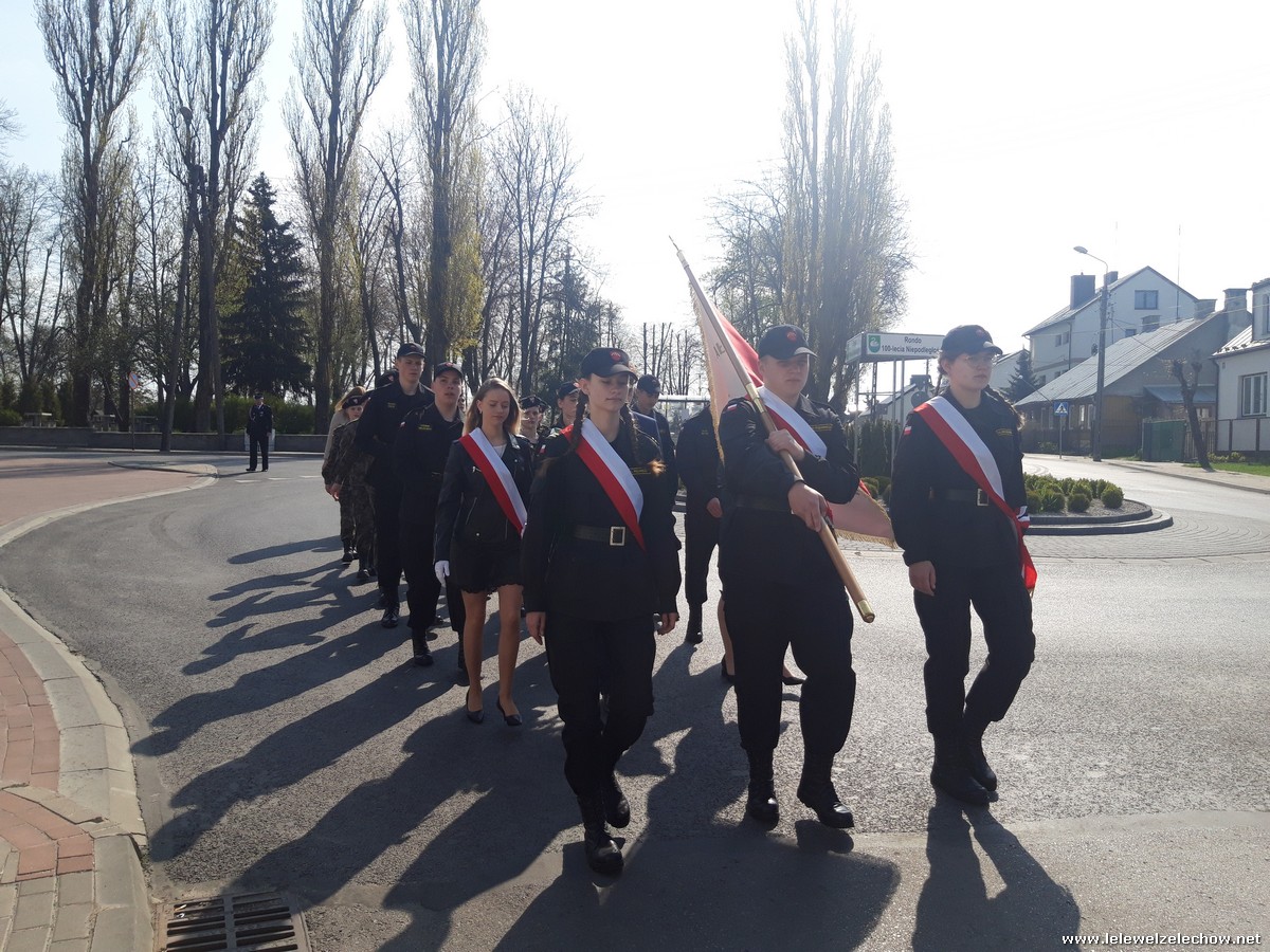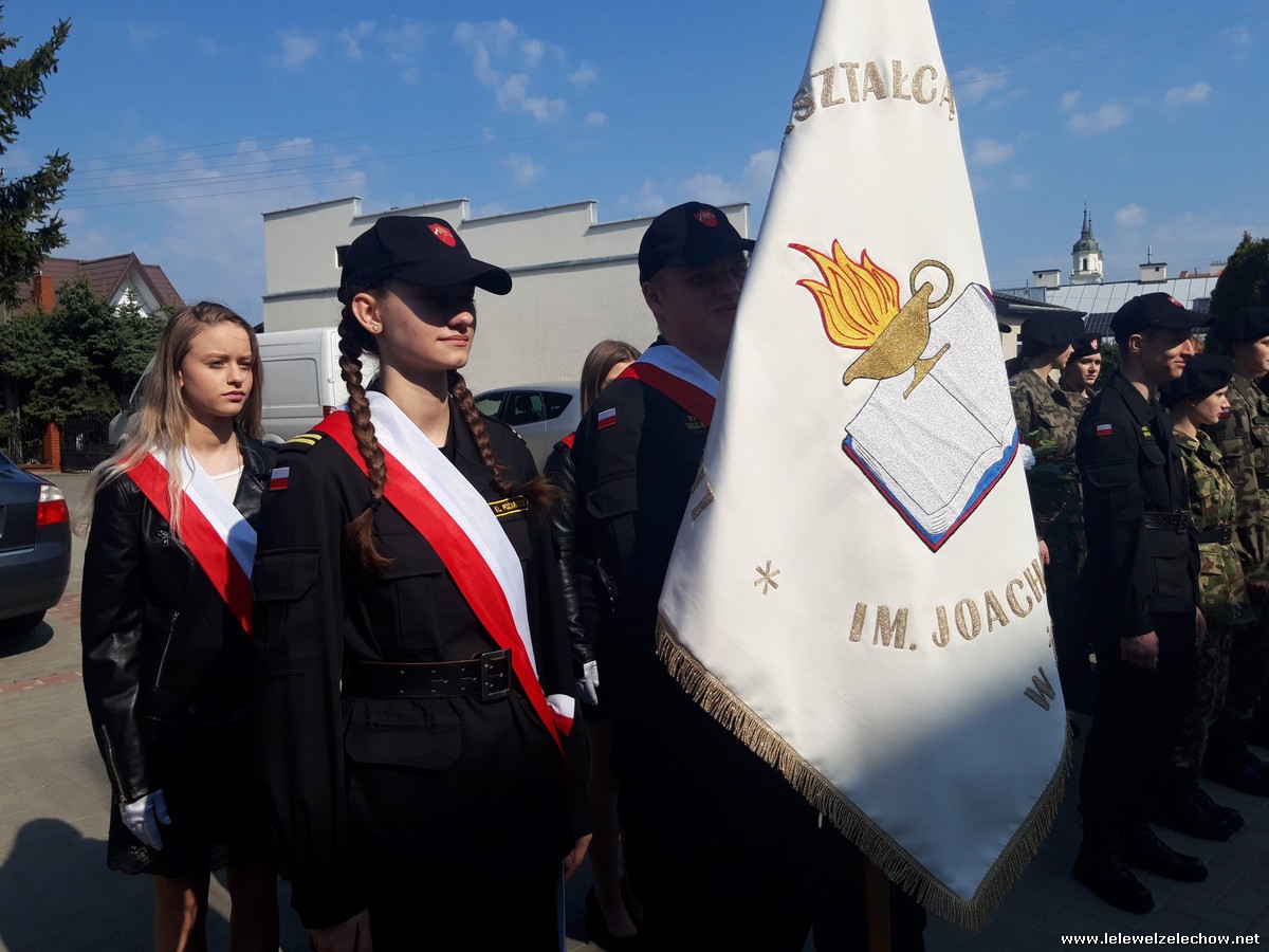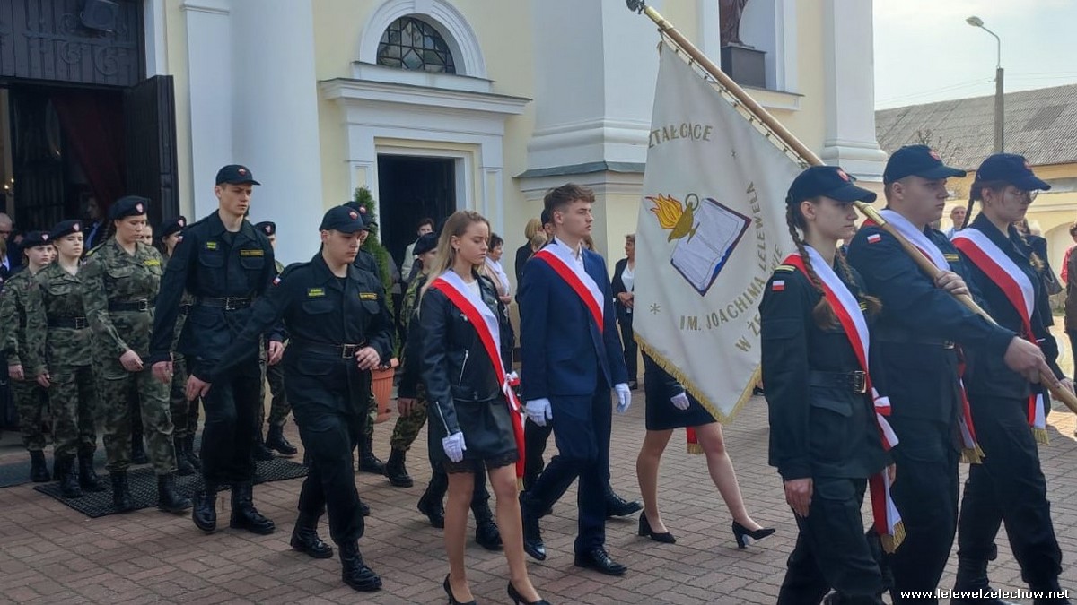 Poczet sztandarowy liceum, delegacja mundurowych wraz nauczycielami, uczestniczyli we Mszy Św. oraz obchodach gminnych na placu przy pomniku Konstytucji, gdzie złożyli kwiaty.