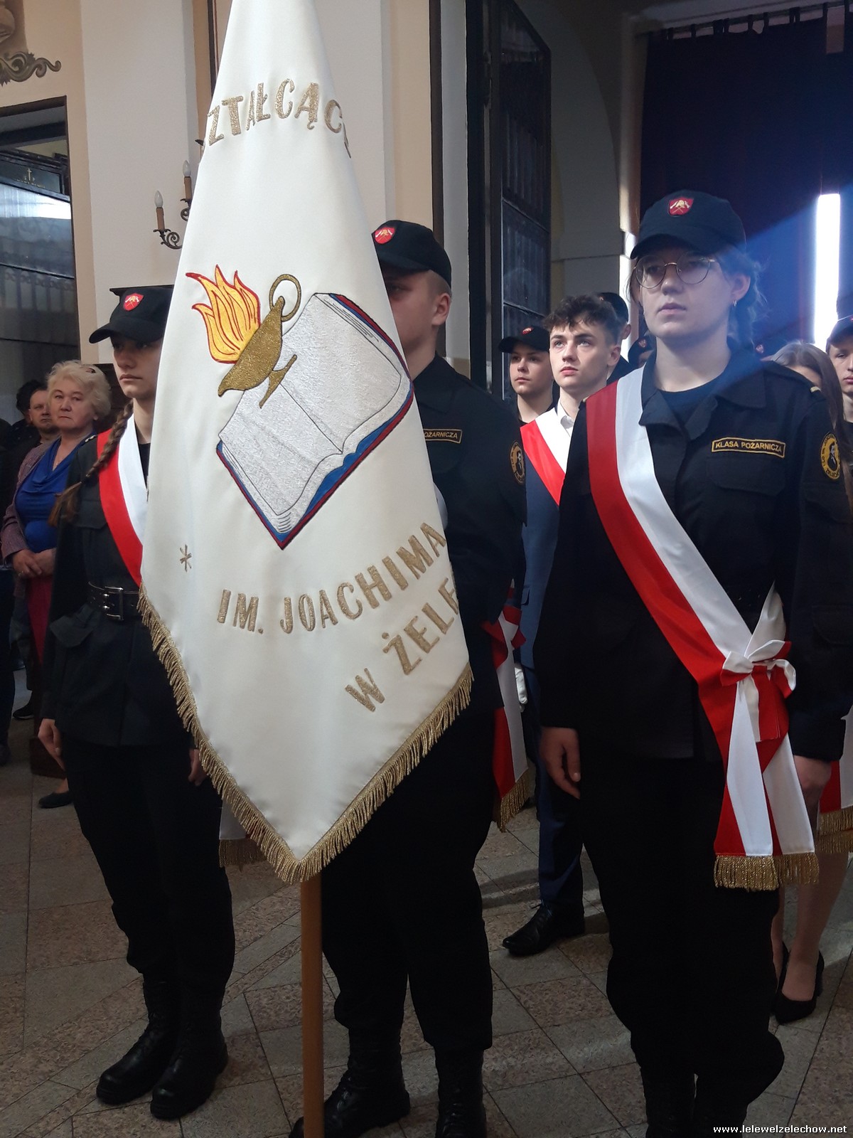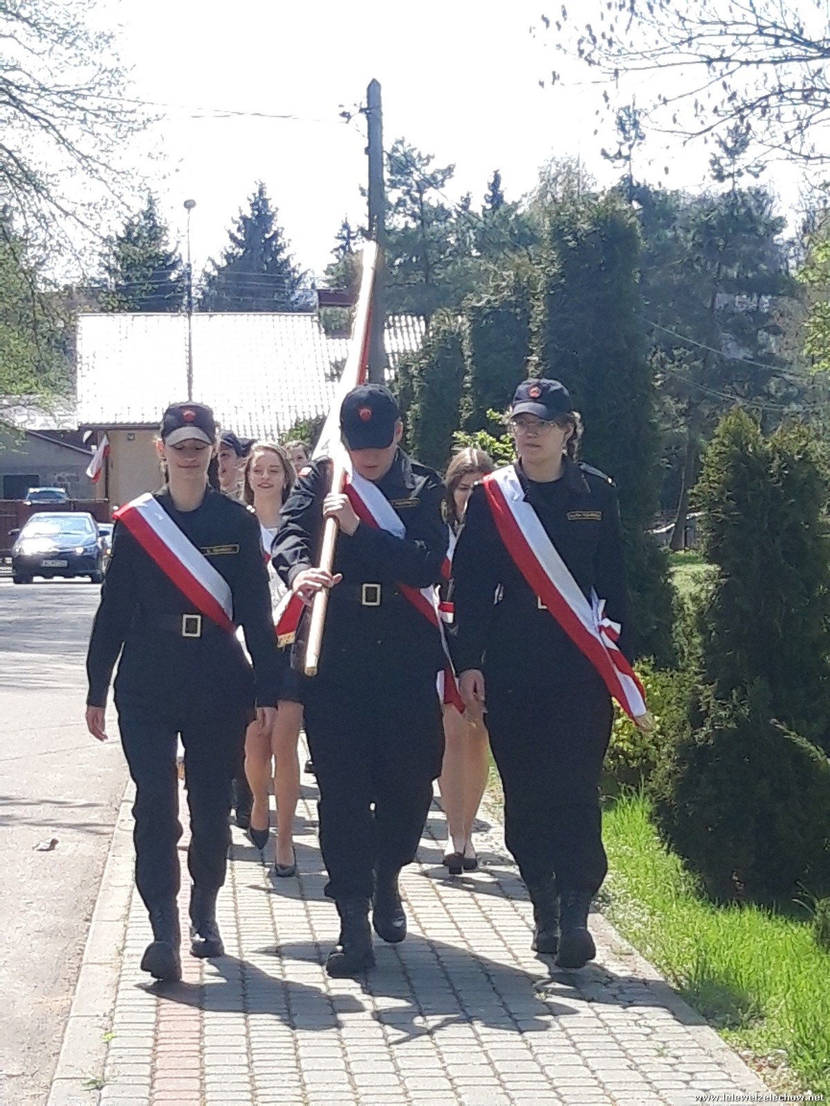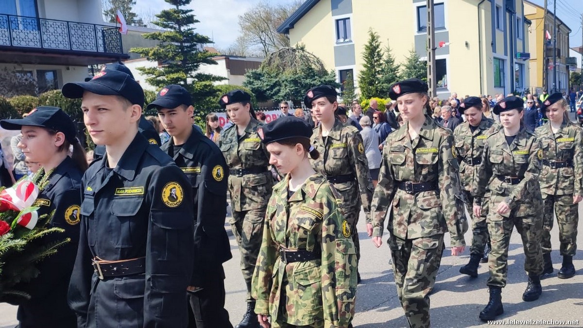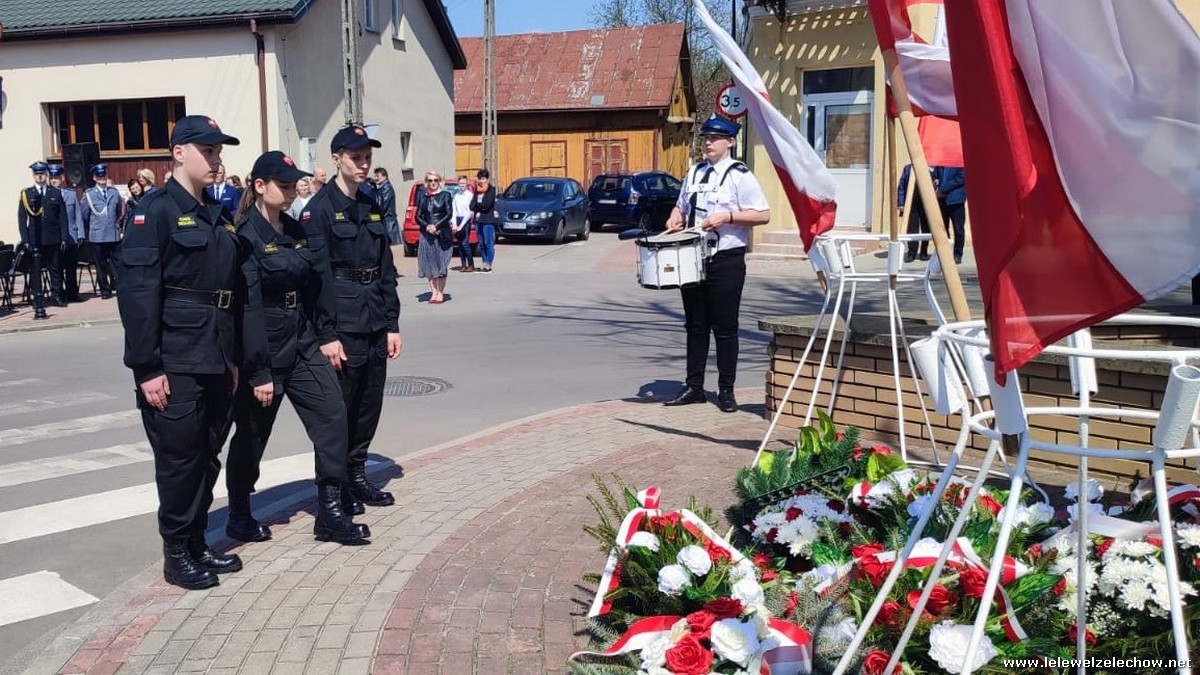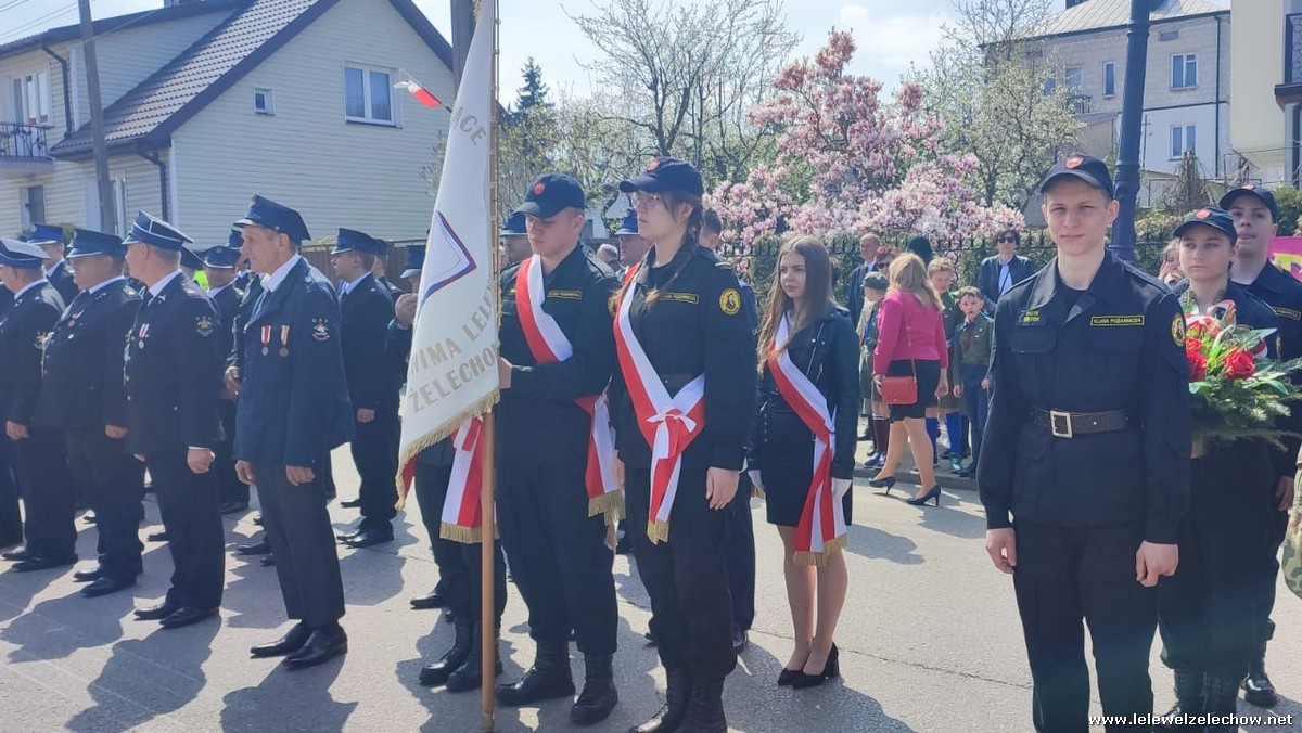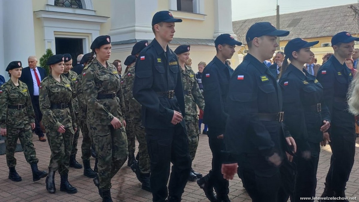 Poczet sztandarowy liceum, delegacja mundurowych wraz nauczycielami, uczestniczyli we Mszy Św. oraz obchodach gminnych na placu przy pomniku Konstytucji, gdzie złożyli kwiaty.