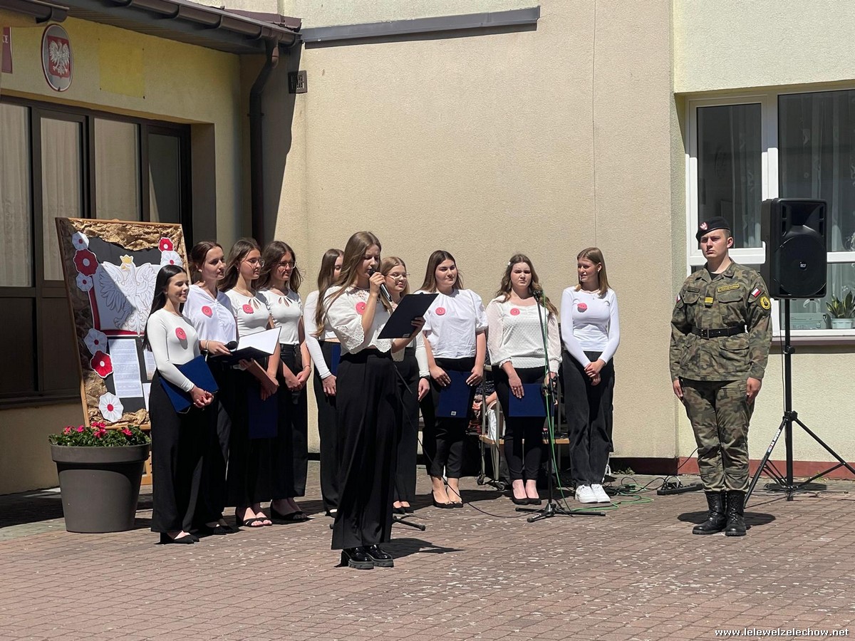 Uczennice klas trzecich przygotowały krótkie wystąpienie upamiętniające bohaterskich żołnierzy 2.Korpusu Polskiego gen.Władysława Andersa.