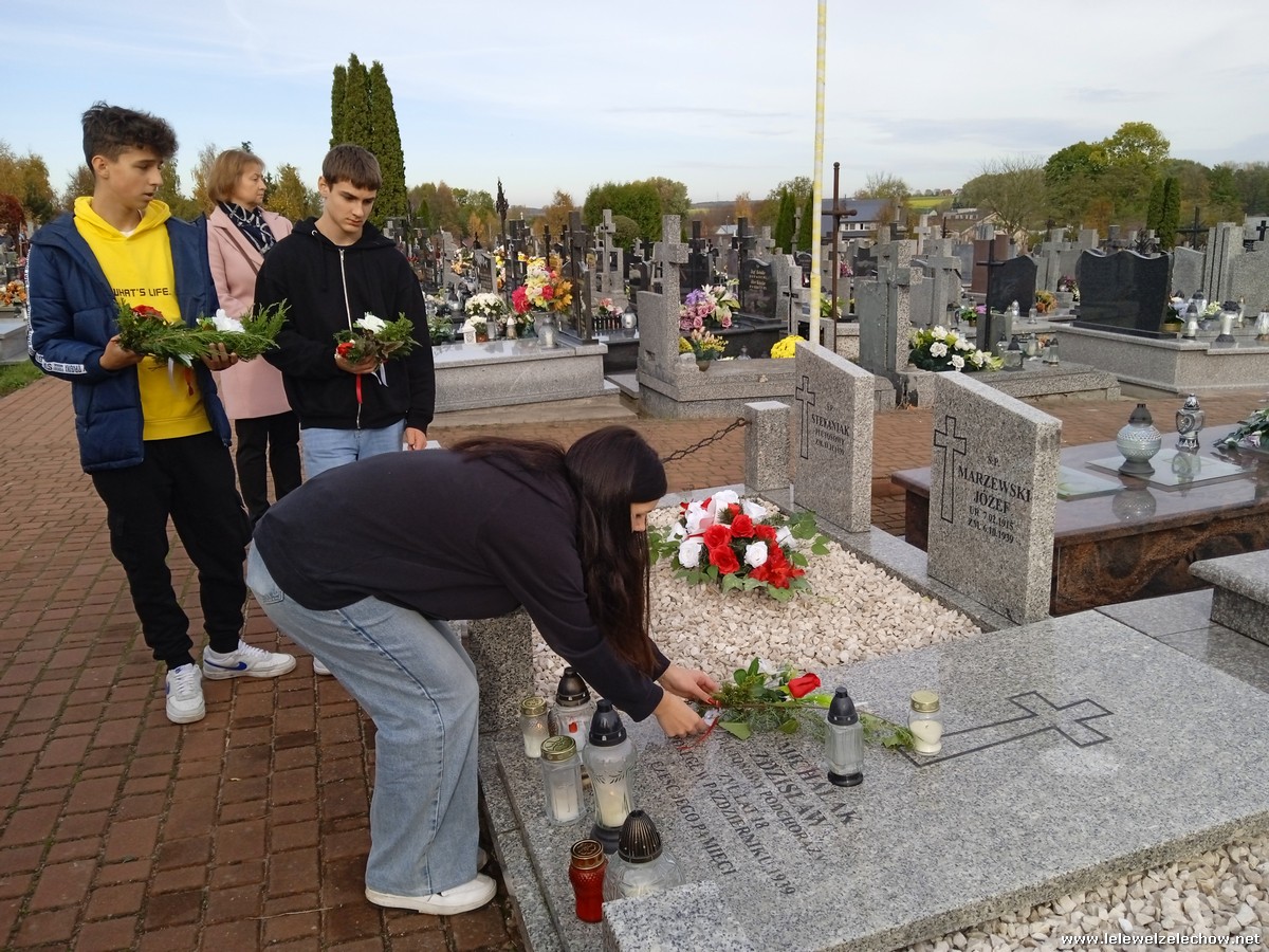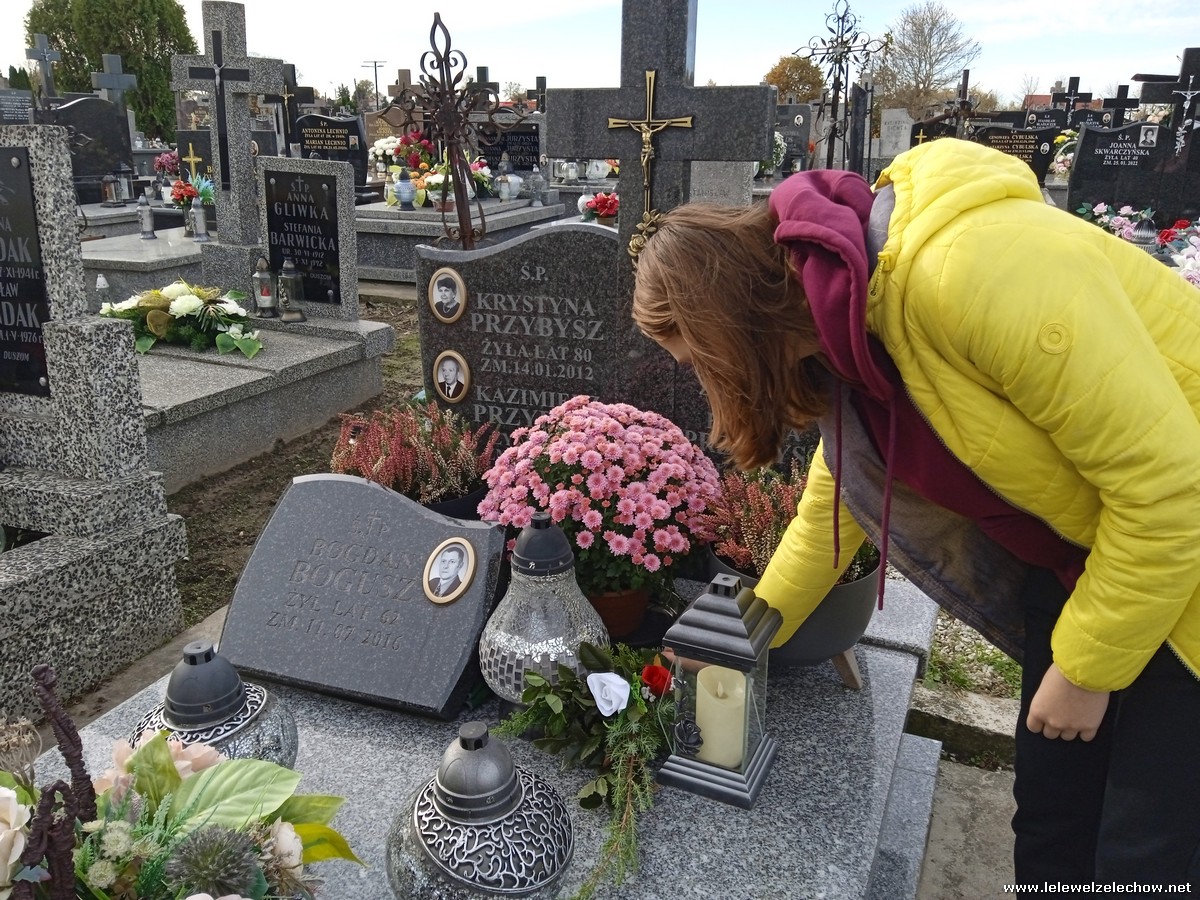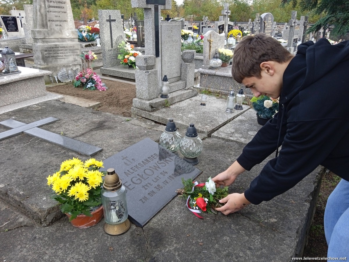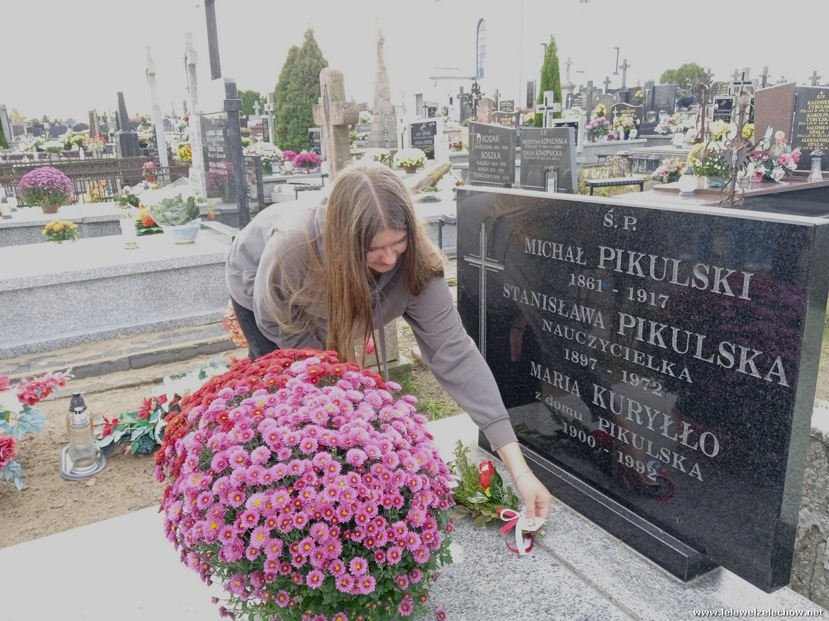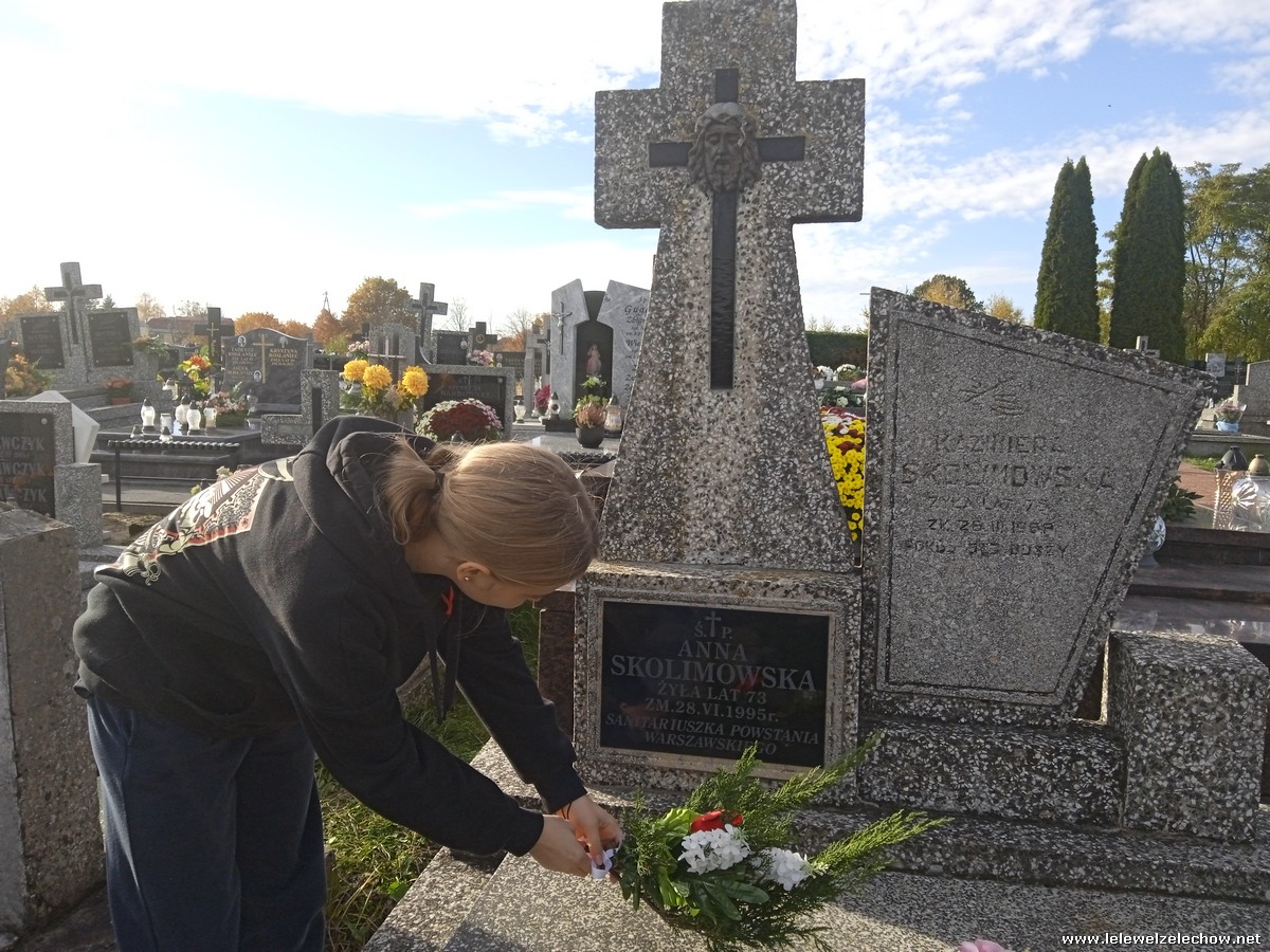 30 października, w dniu finału akcji, uczniowie z klasy 1c wraz z panią Dyrektor i panią Urszulą Kobielus, koordynatorem akcji w naszej szkole, udali się na miejscowy cmentarz. Licealiści złożyli wiązanki na grobach dawnych właścicieli ziemskich, księży, powstańców, działaczy konspiracji różnego czasu, żołnierzy września, żołnierzy AK, lekarzy, społeczników, nauczycieli… Kwiaty położyli również na zabytkowych, często zapomnianych nagrobkach. We wszystkich tych miejscach SU w dniu 1 listopada zapali znicze.
