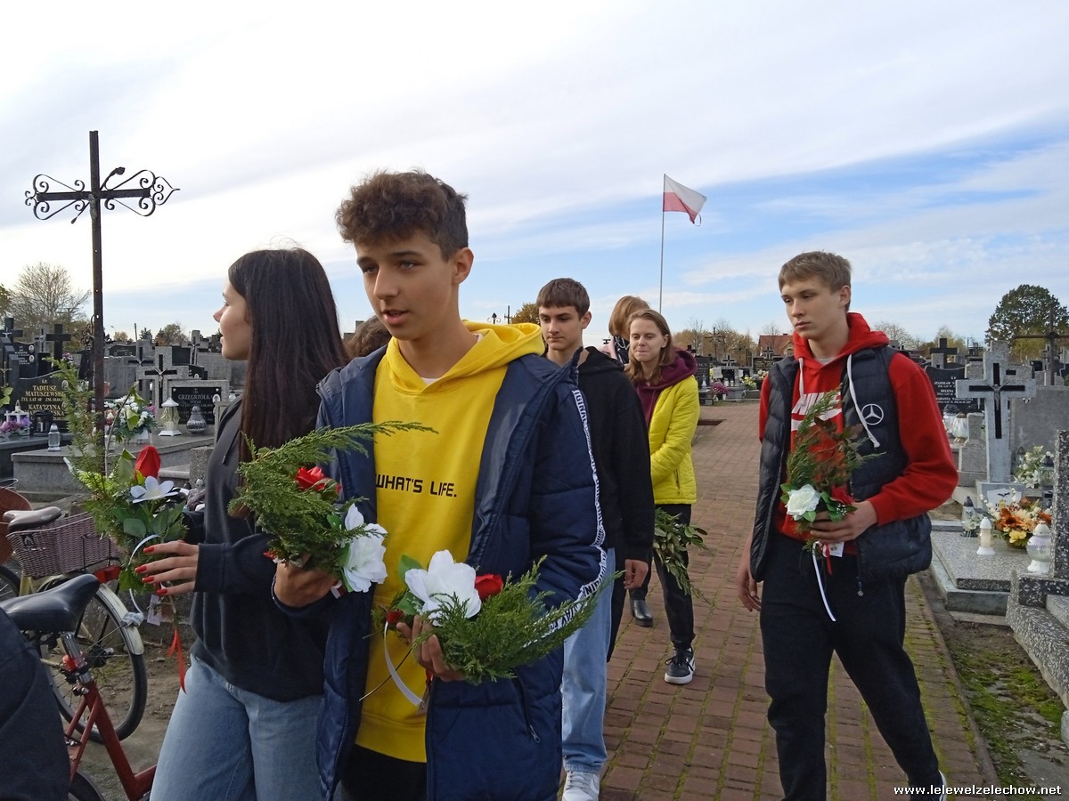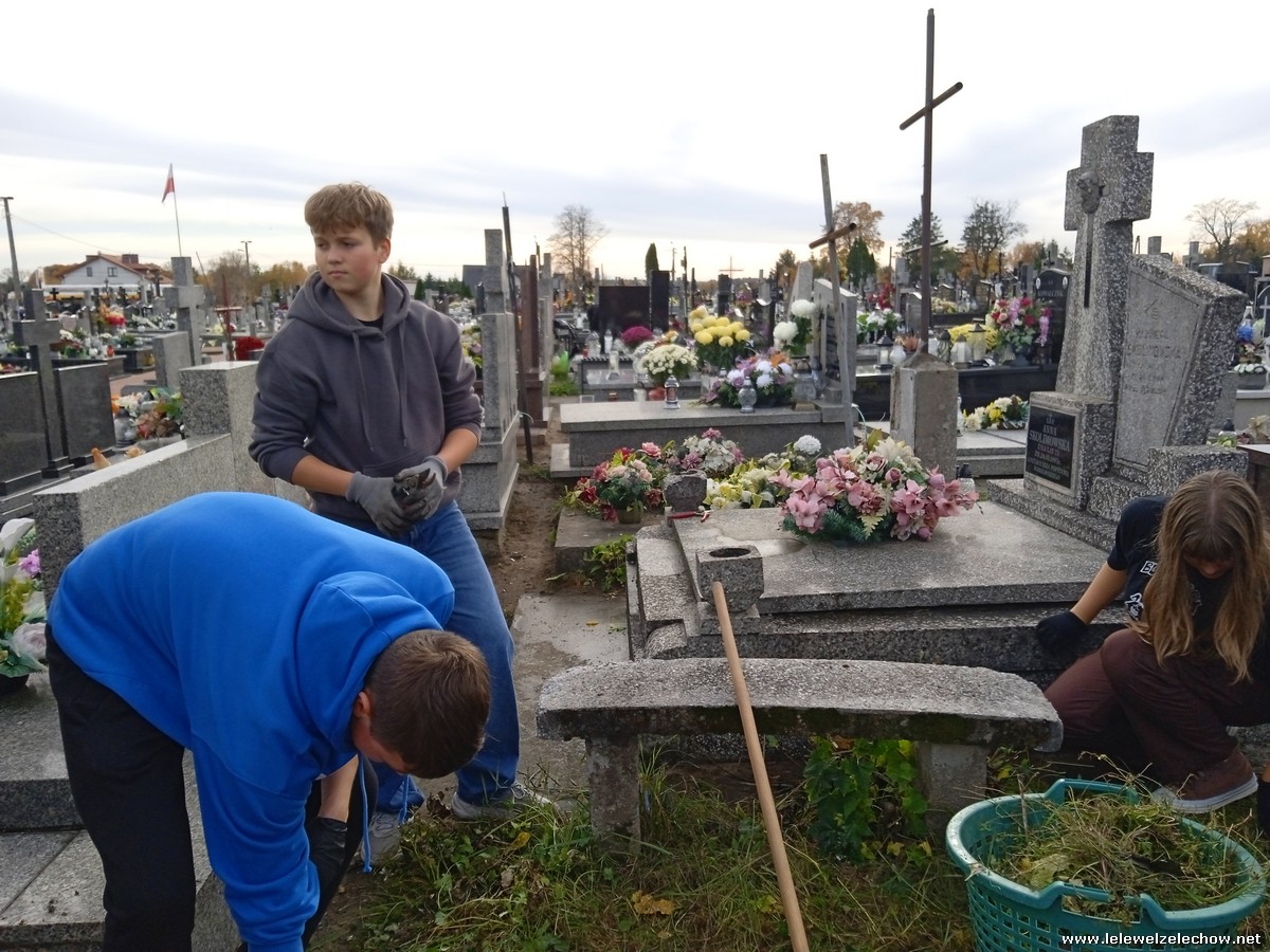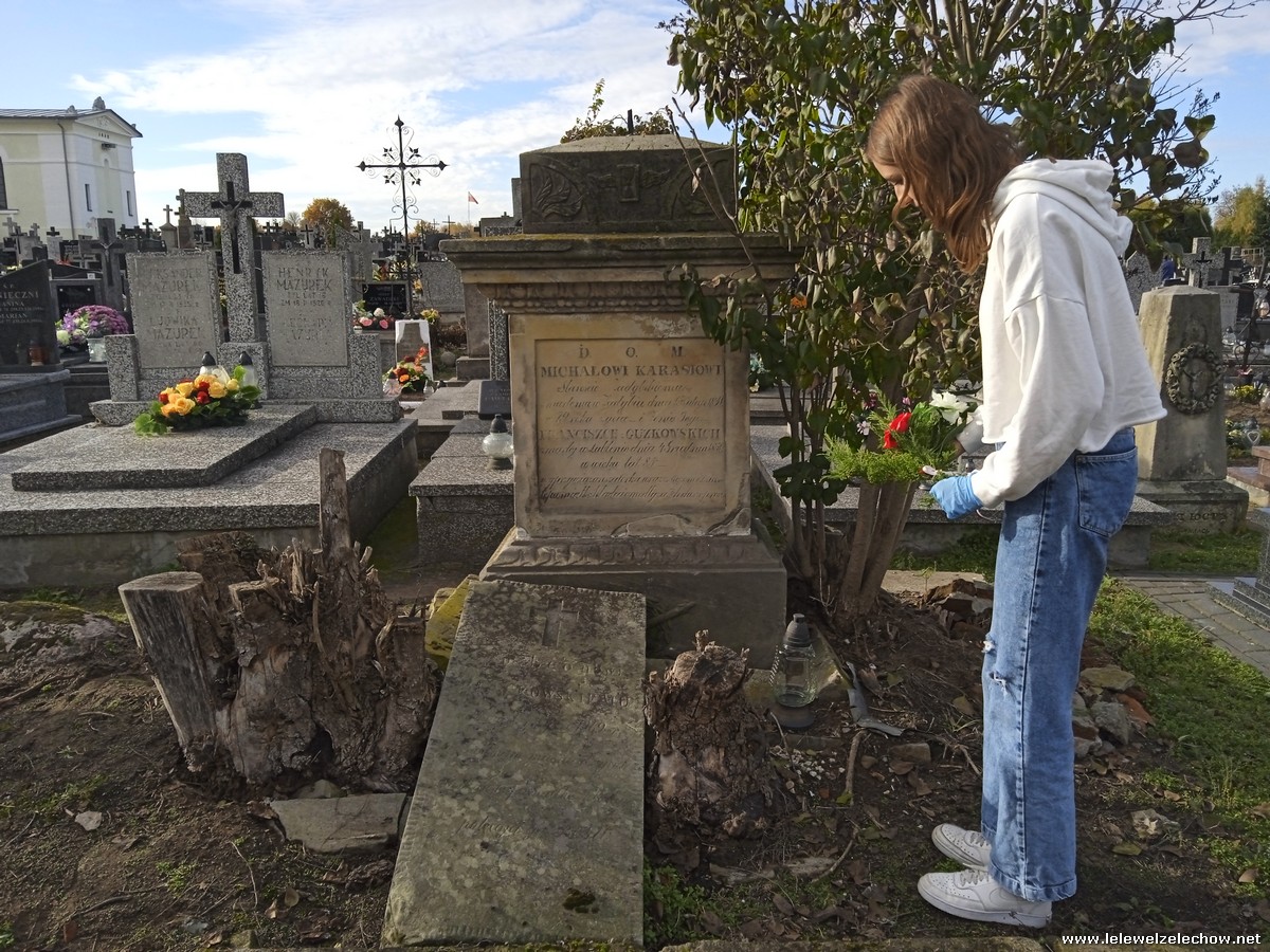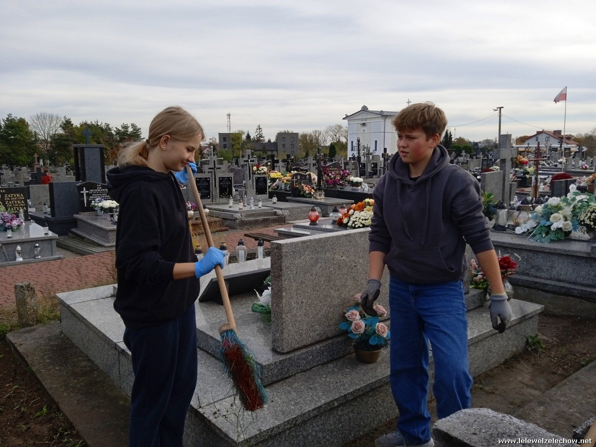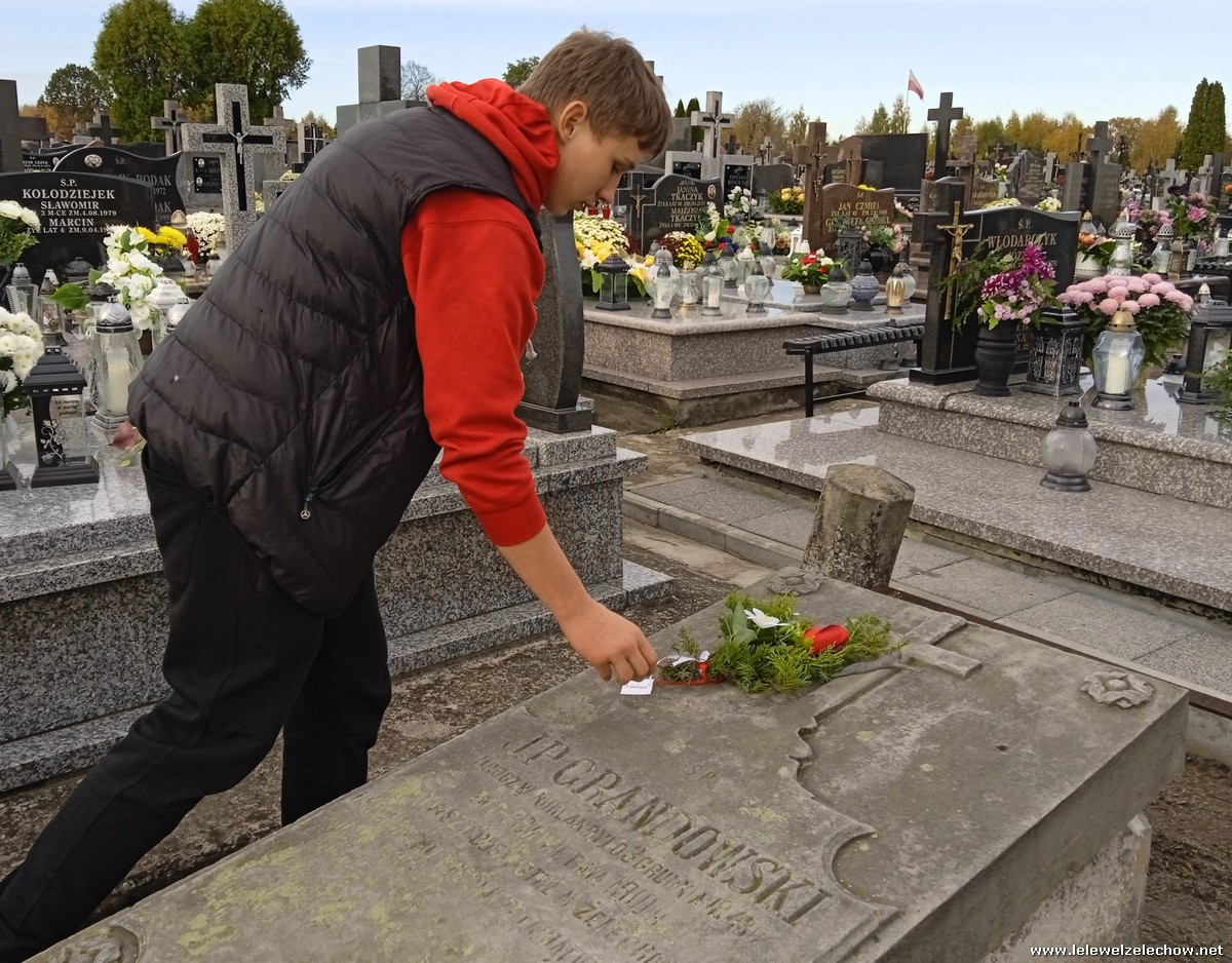30 października, w dniu finału akcji, uczniowie z klasy 1c wraz z panią Dyrektor i panią Urszulą Kobielus, koordynatorem akcji w naszej szkole, udali się na miejscowy cmentarz. Licealiści złożyli wiązanki na grobach dawnych właścicieli ziemskich, księży, powstańców, działaczy konspiracji różnego czasu, żołnierzy września, żołnierzy AK, lekarzy, społeczników, nauczycieli… Kwiaty położyli również na zabytkowych, często zapomnianych nagrobkach. We wszystkich tych miejscach SU w dniu 1 listopada zapali znicze.