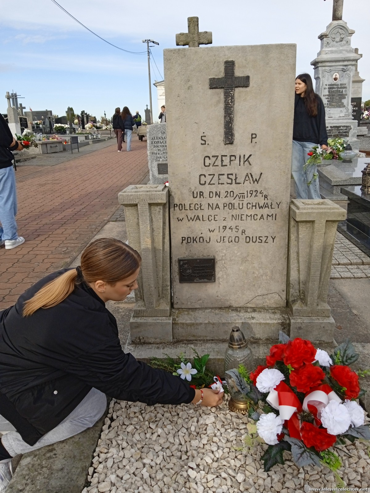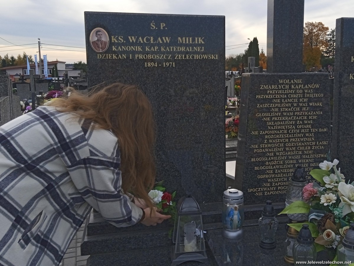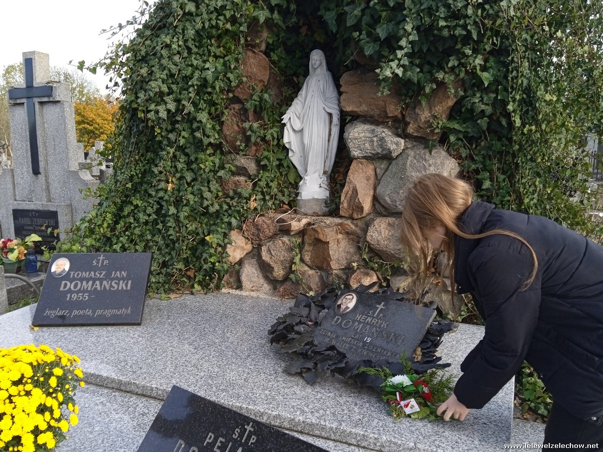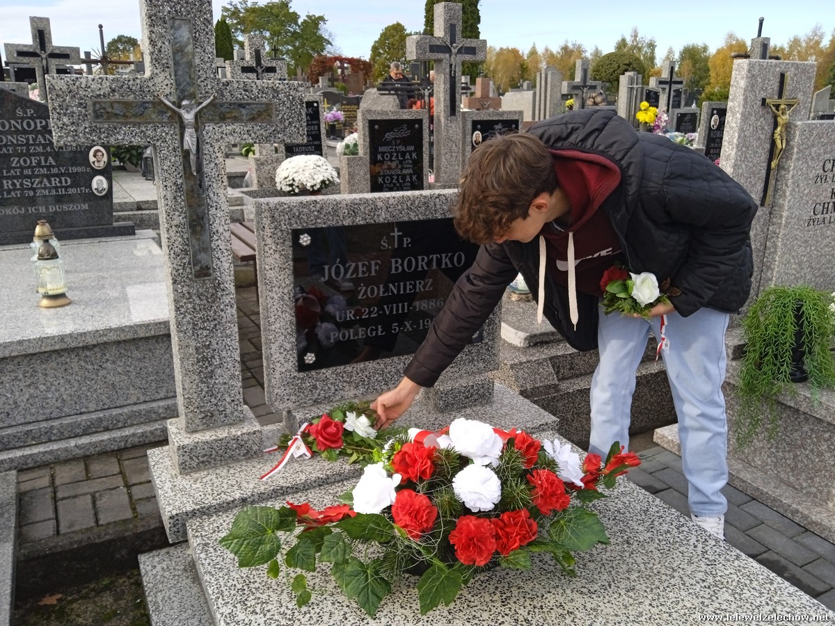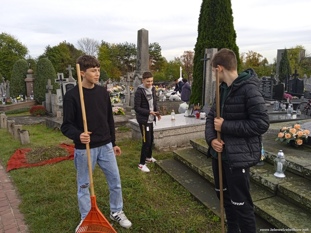 30 października, w dniu finału akcji, uczniowie z klasy 1c wraz z panią Dyrektor i panią Urszulą Kobielus, koordynatorem akcji w naszej szkole, udali się na miejscowy cmentarz. Licealiści złożyli wiązanki na grobach dawnych właścicieli ziemskich, księży, powstańców, działaczy konspiracji różnego czasu, żołnierzy września, żołnierzy AK, lekarzy, społeczników, nauczycieli… Kwiaty położyli również na zabytkowych, często zapomnianych nagrobkach. We wszystkich tych miejscach SU w dniu 1 listopada zapali znicze.