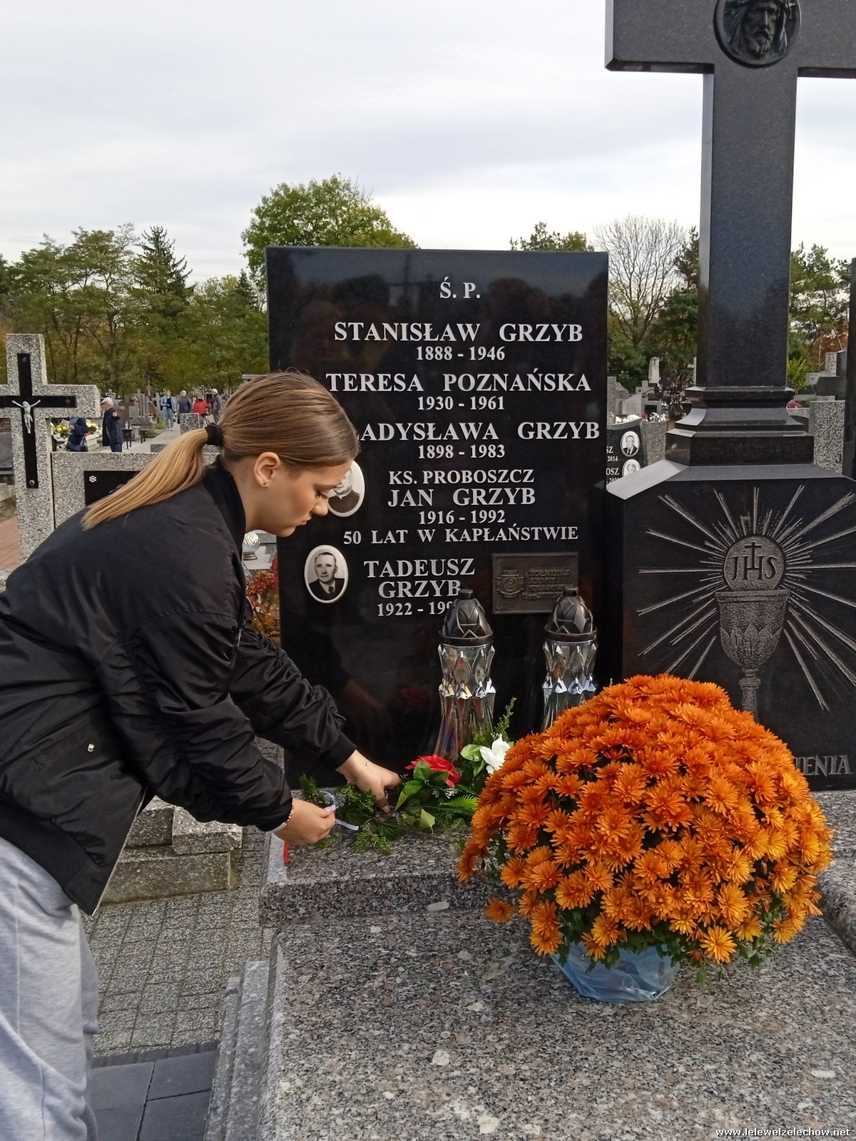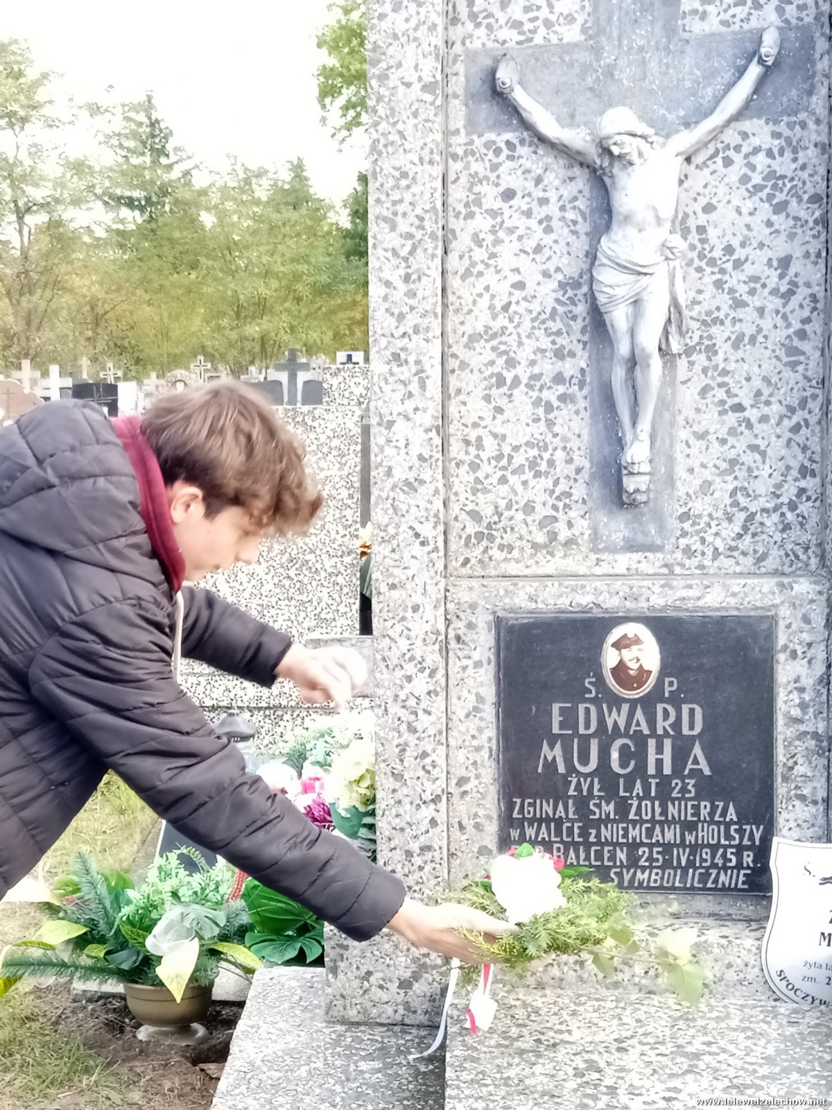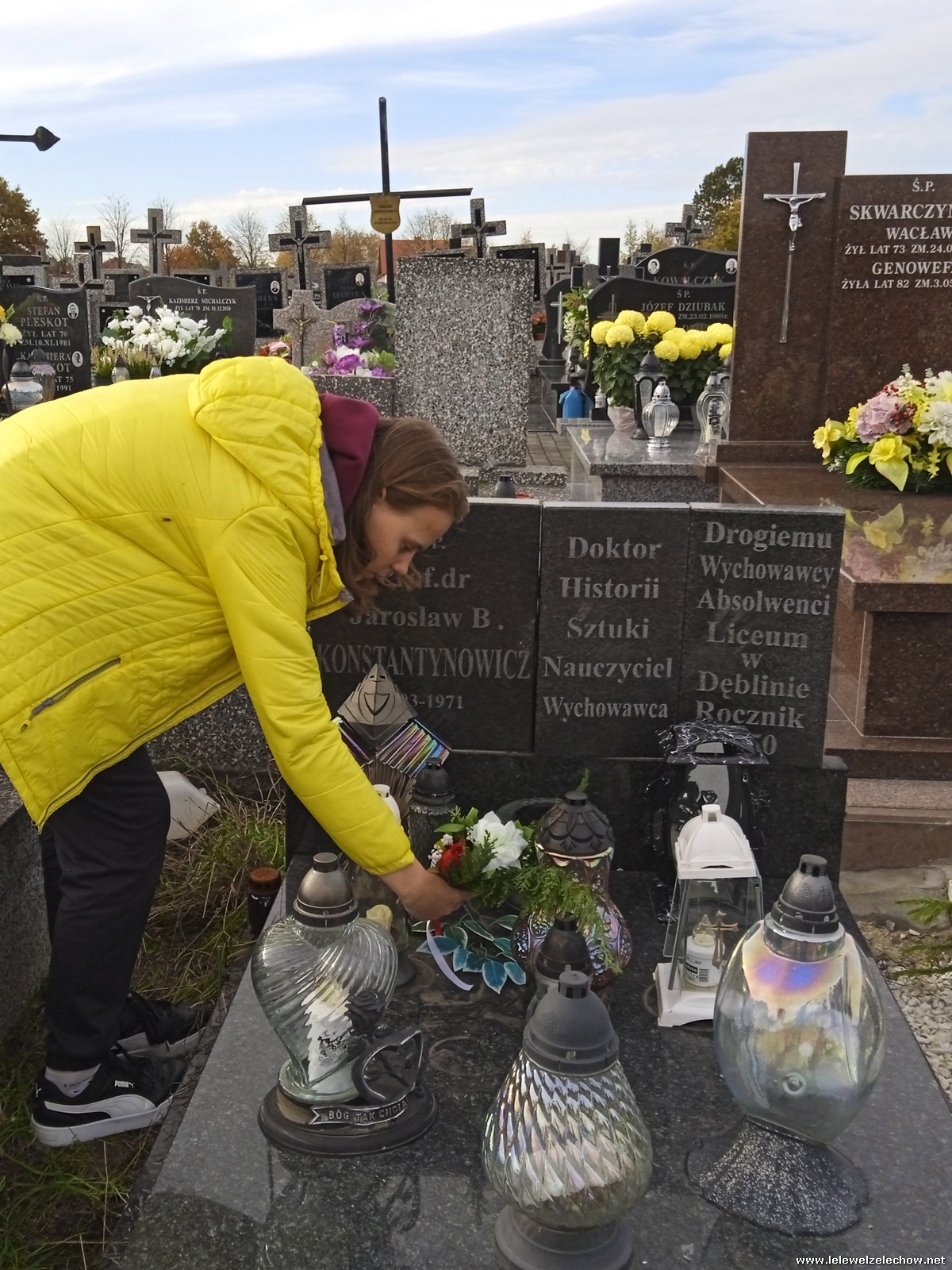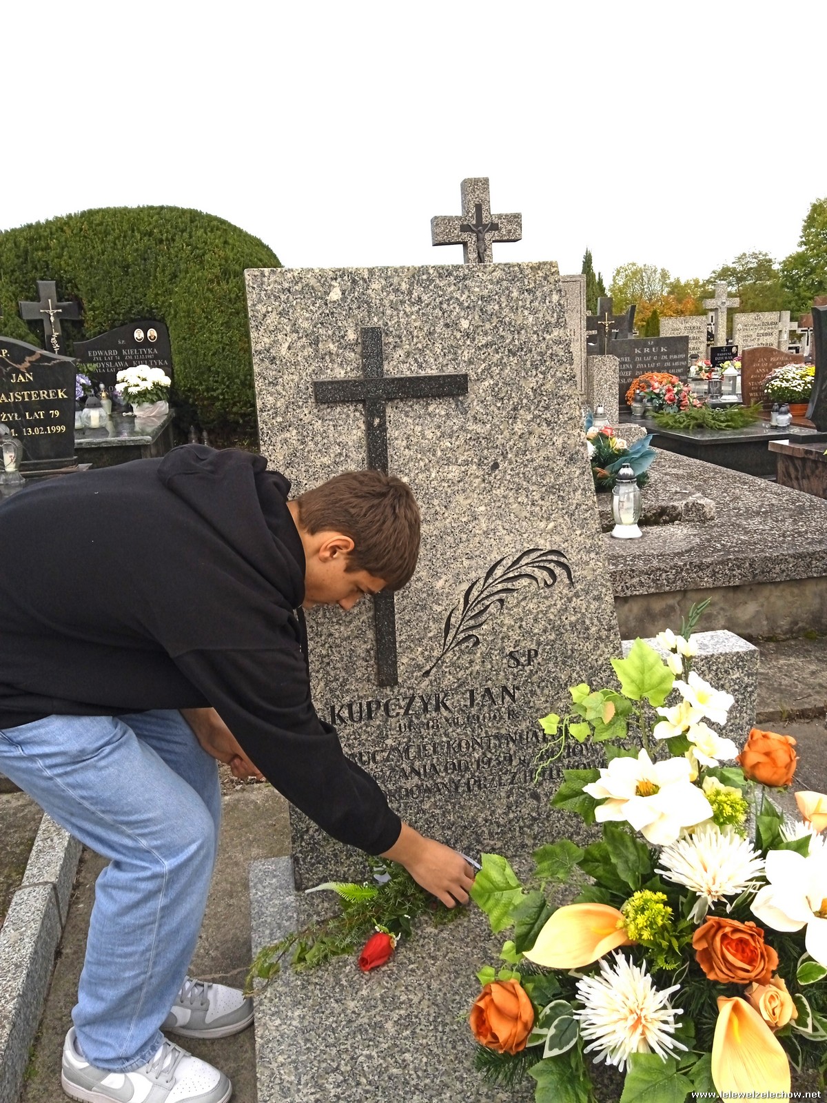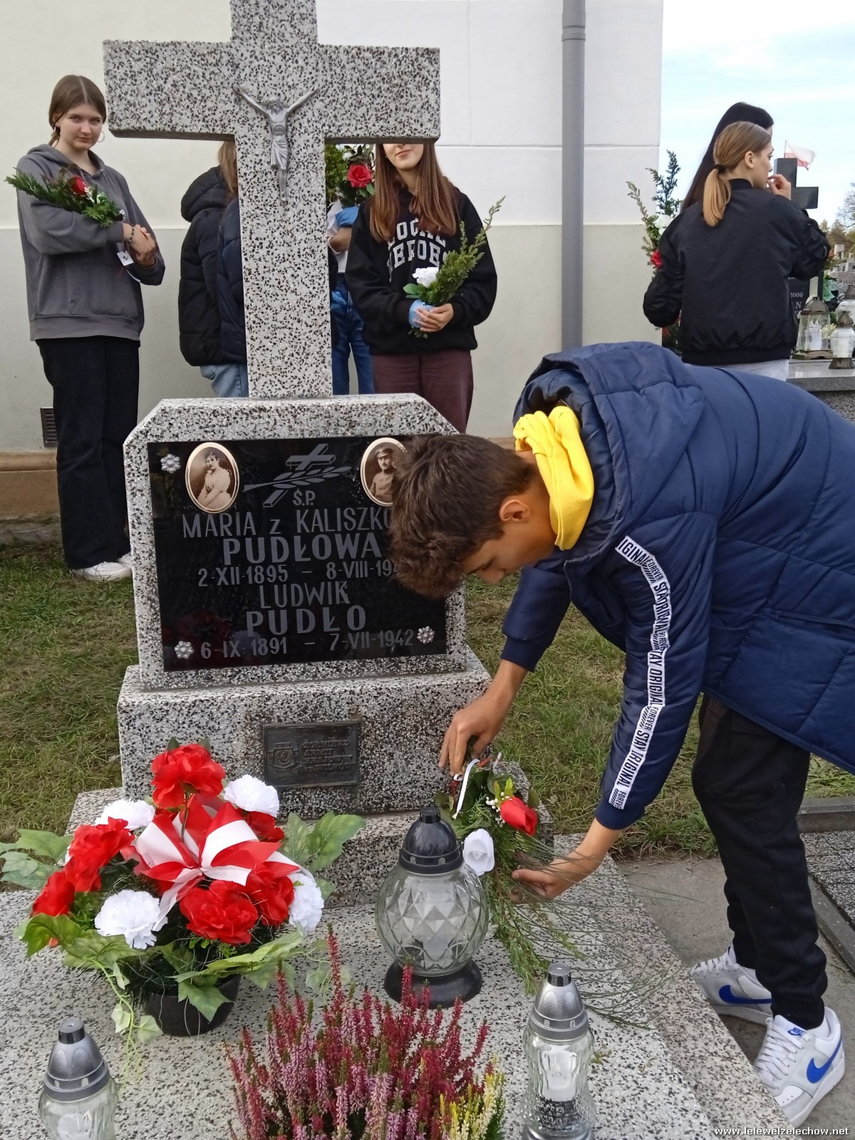 30 października, w dniu finału akcji, uczniowie z klasy 1c wraz z panią Dyrektor i panią Urszulą Kobielus, koordynatorem akcji w naszej szkole, udali się na miejscowy cmentarz. Licealiści złożyli wiązanki na grobach dawnych właścicieli ziemskich, księży, powstańców, działaczy konspiracji różnego czasu, żołnierzy września, żołnierzy AK, lekarzy, społeczników, nauczycieli… Kwiaty położyli również na zabytkowych, często zapomnianych nagrobkach. We wszystkich tych miejscach SU w dniu 1 listopada zapali znicze.