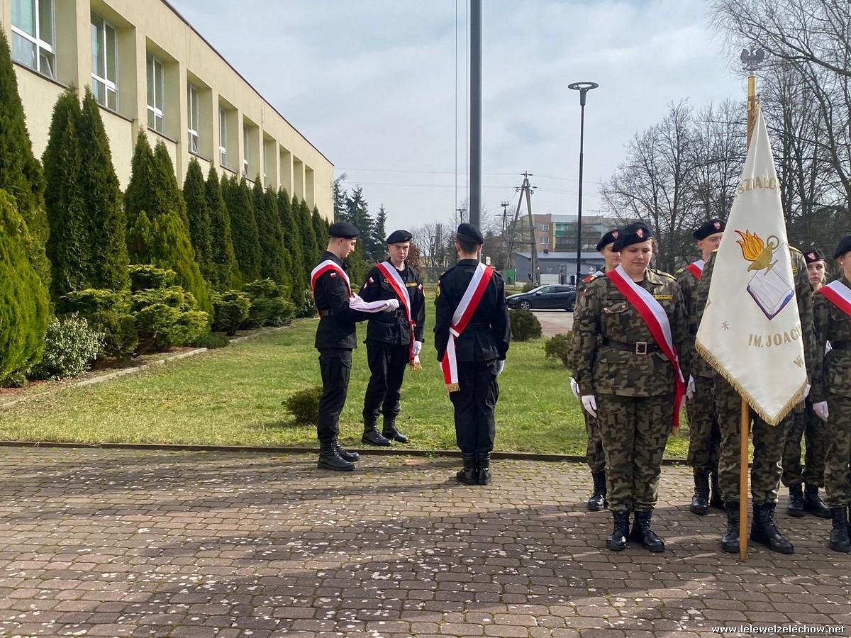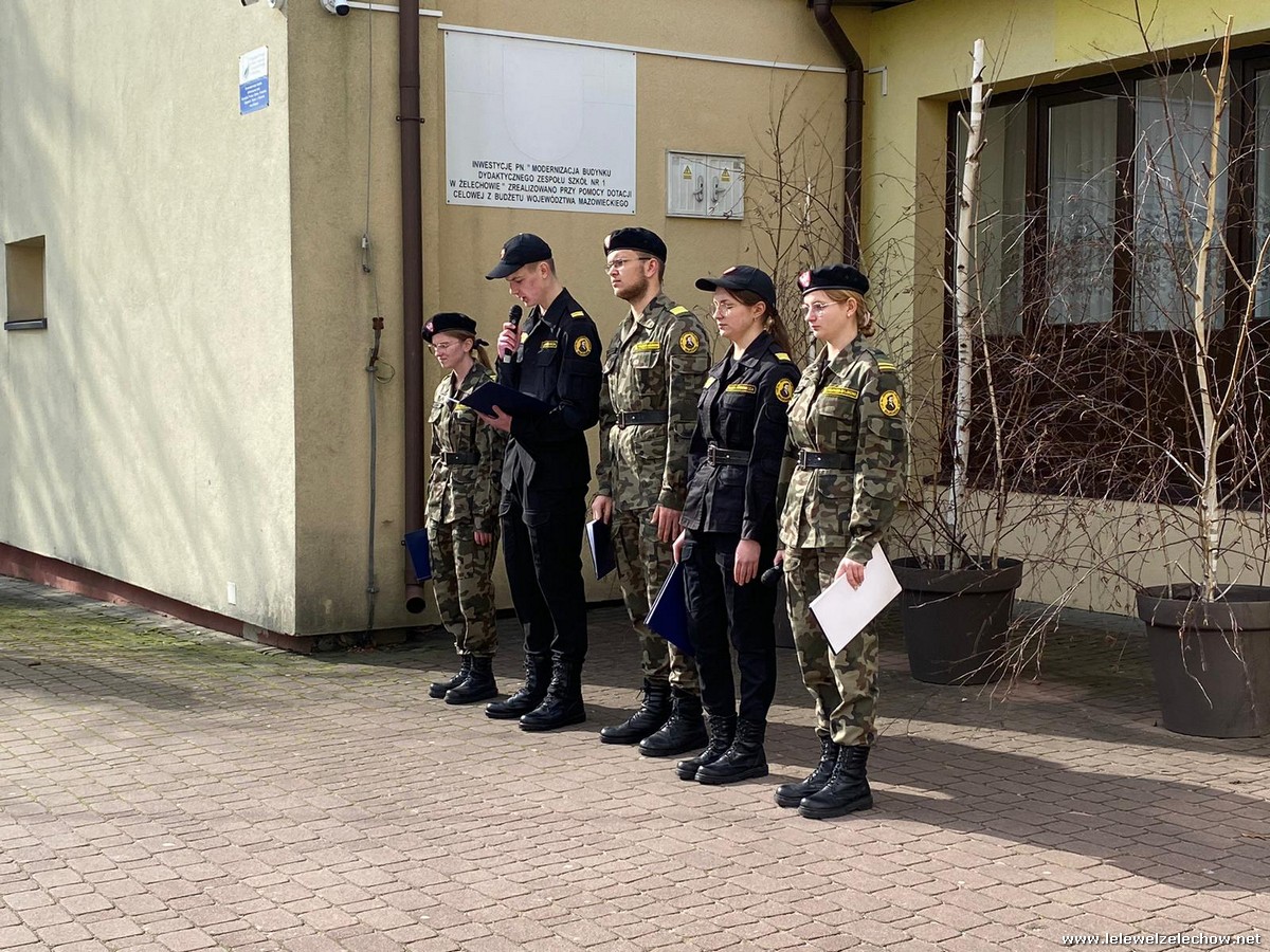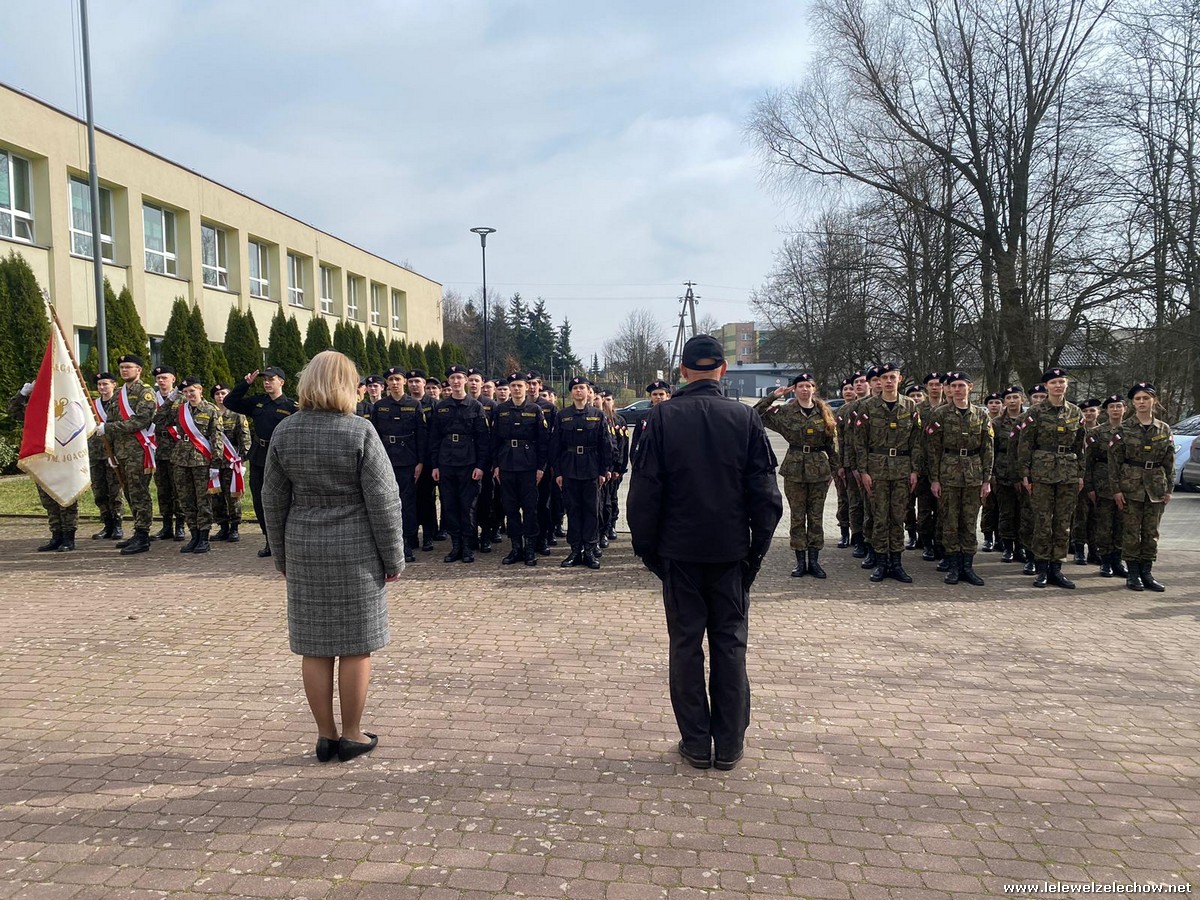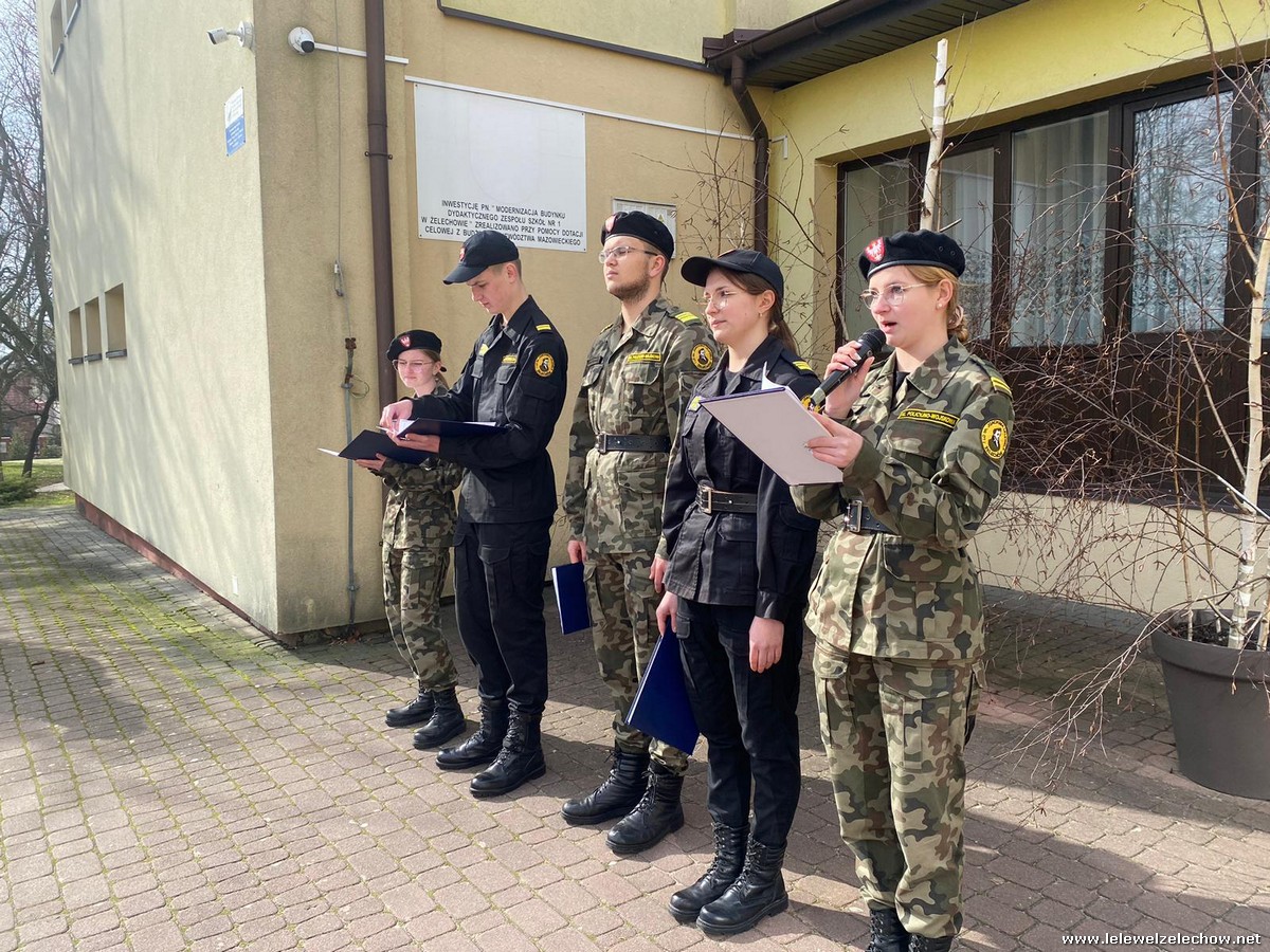 1 marca w Narodowym Dniu Pamięci Żołnierzy Wyklętych na placu szkolnym odbył się uroczysty apel kadetów pododdziałów szkolnych. W uroczystości wzięli udział kadeci innowacji pożarniczej i policyjno-wojskowej, poczet sztandarowy oraz poczet flagowy. Uroczystość rozpoczęła się od podniesienia flagi państwowej przy dźwiękach hymnu. Następnie dowódcy z poszczególnych klas złożyli meldunek dowódcy uroczystości - panu inspektorowi Stanisławowi Madejskiemu. Pani Urszula Kobielus,w zastępstwie dyrektor szkoły, odebrała meldunek o gotowości pododdziałów szkolnych do uroczystości oraz przypominała, że poprzez uroczysty apel kadeci oddają hołd żołnierzom tzw.drugiej konspiracji, antykomunistycznego i niepodległościowego podziemia.