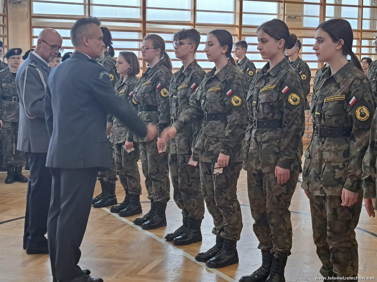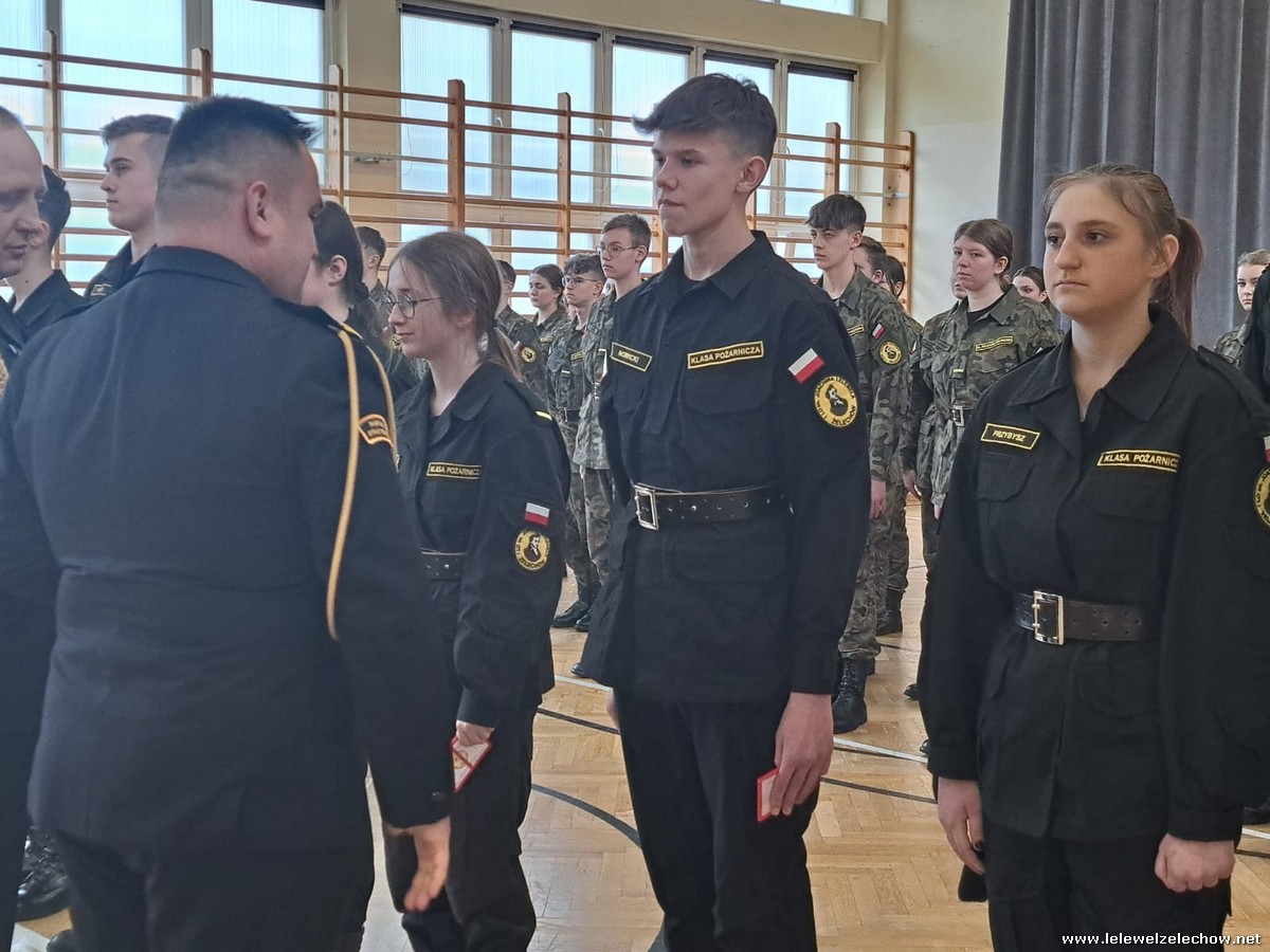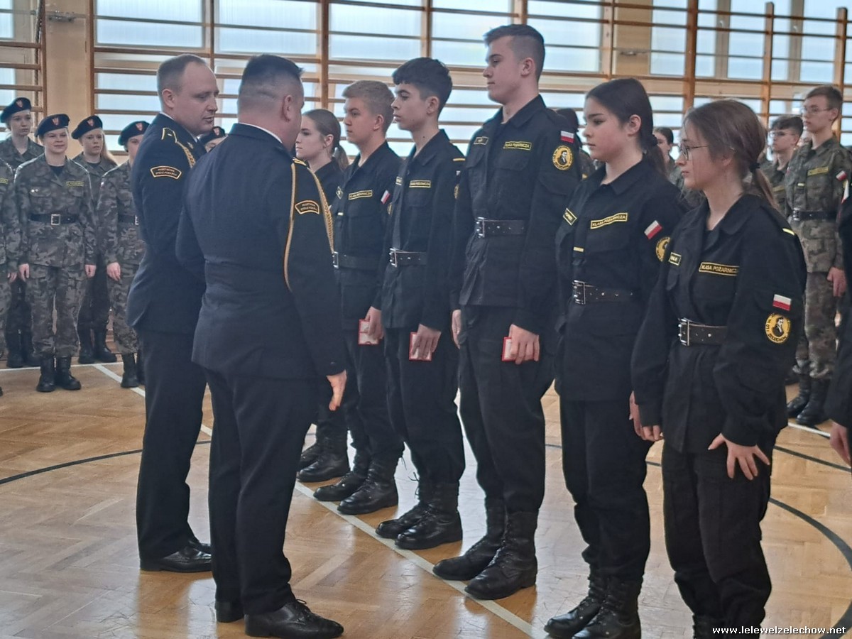 W ramach uroczystości kadeci klas pierwszych - Zadań policji i wojska oraz Wybranych zagadnień bezpieczeństwa pożarowego otrzymali legitymacje uprawniające do noszenia mundurów.
