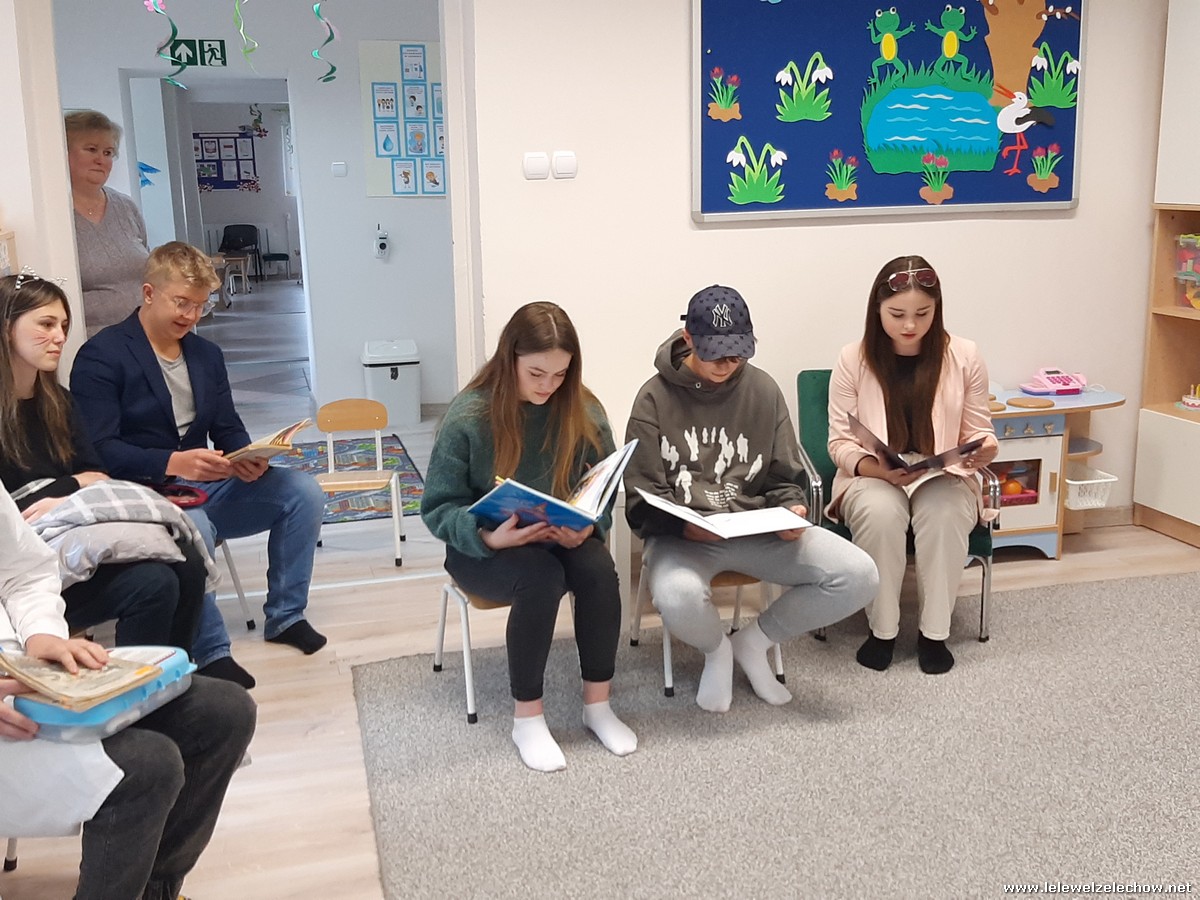 24 kwietnia uczniowie klasy 2b zostali zaproszeni przez grupę „Żabki” z żelechowskiego przedszkola, aby wziąć udział we wspólnym czytaniu w ramach kampanii społecznej „Cała Polska Czyta Dzieciom” oraz realizowanej przez przedszkole innowacji „Uczymy się miłości do książek”.
