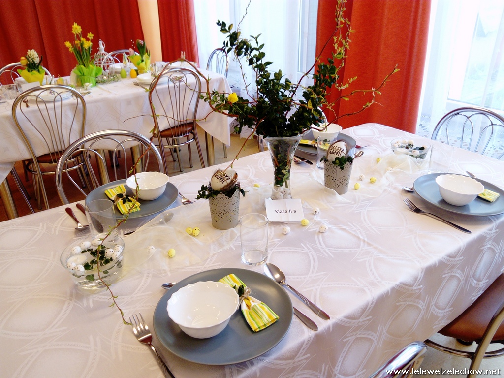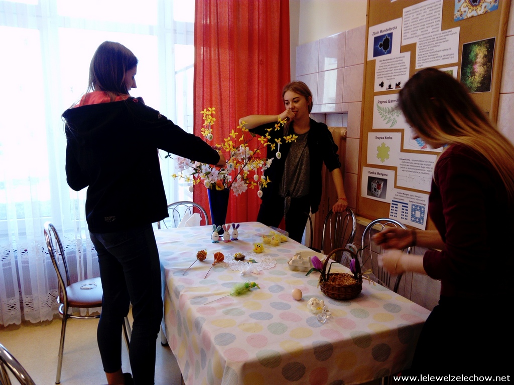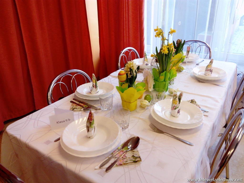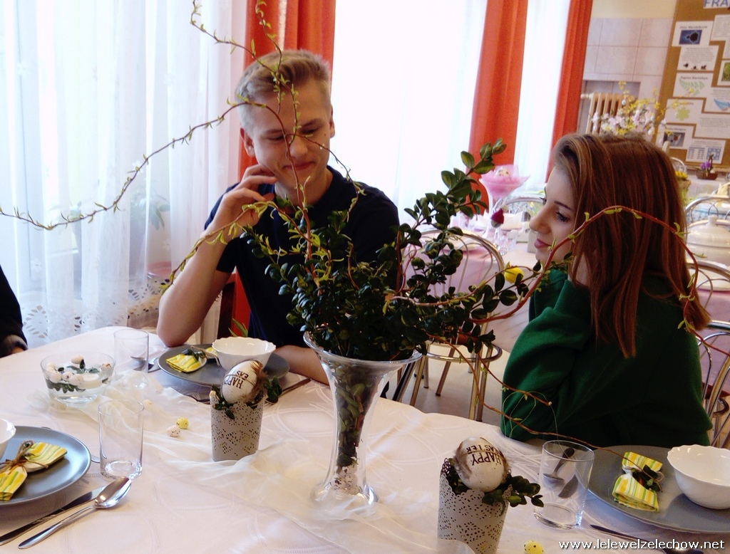 Dekoracje wielkanocnego stołu odbyły się w ramach konkursu, jednak Jury nie mogło się zdecydować na najpiękniejszy , bo... podobały się wszystkie! Stąd pomysł opiekunki SU żeby nagrodzić wszystkie klasy. Skoro jest stół wielkanocny to musi być też żurek! Pani Basia zgodziła się przygotować tą świąteczną potrawę ku radości wszystkich uczestników konkursu i zaproszonych przez nich uczniów.