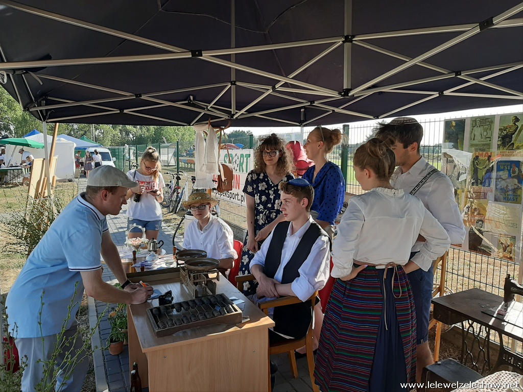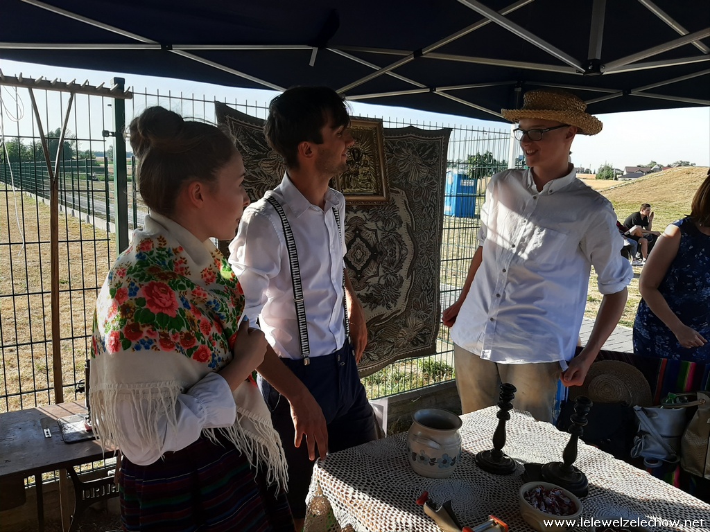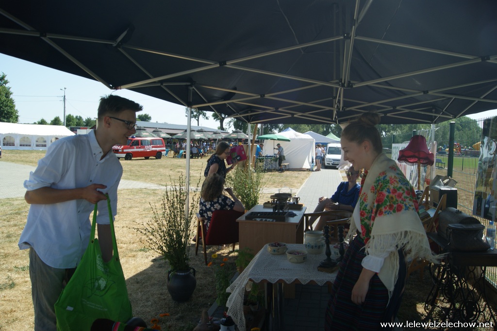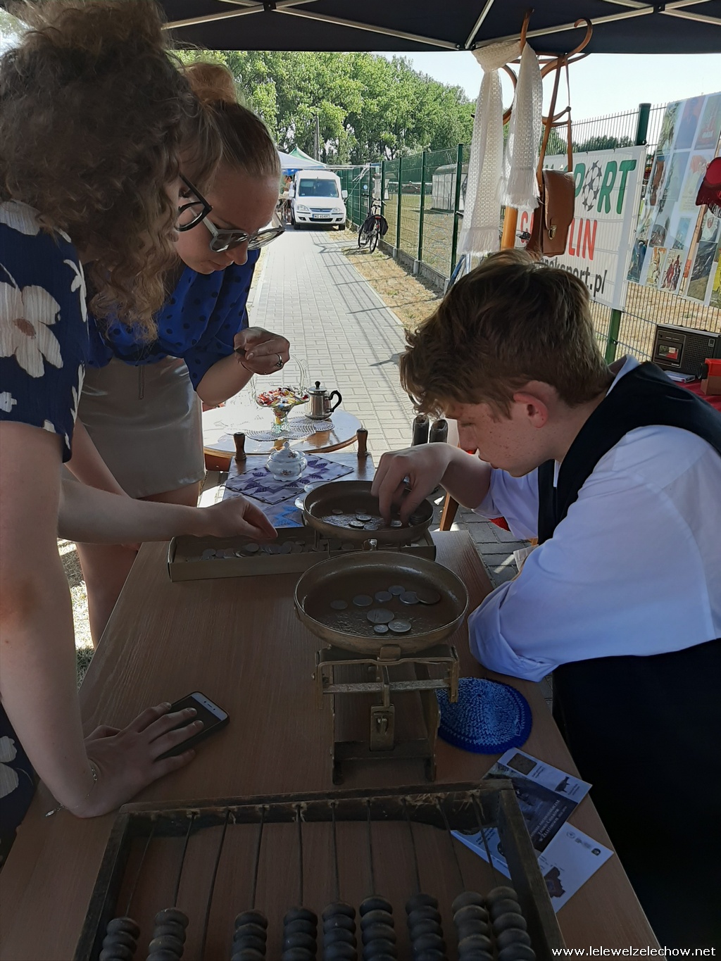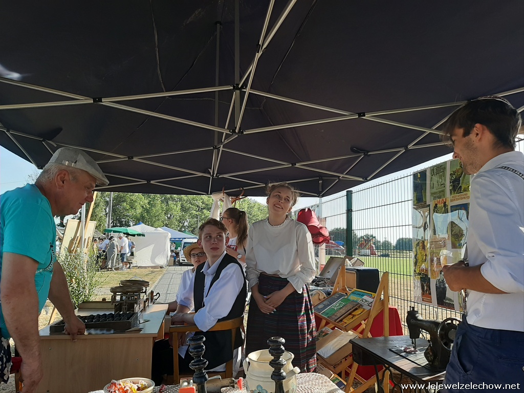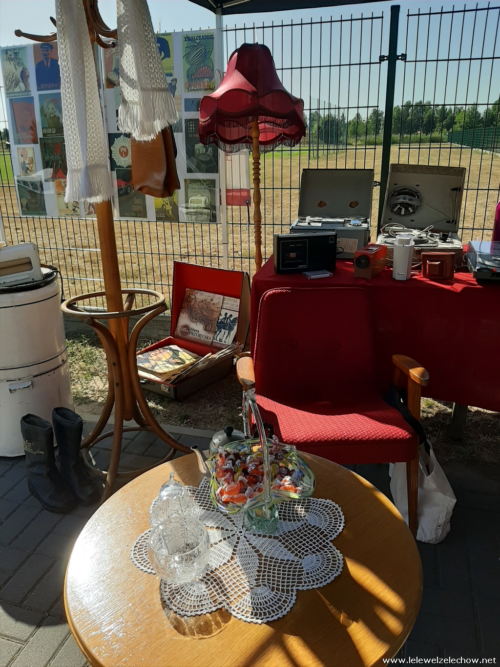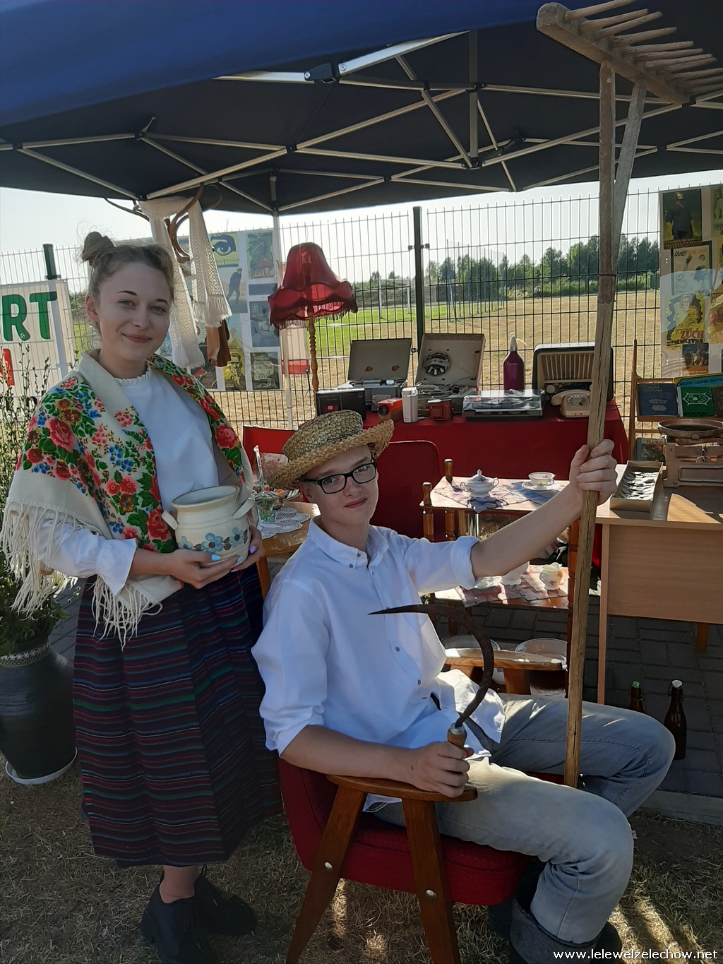 Dni Żelechowa i nasza wystawa przedmiotów codziennego użytku z XX w. Wśród nich znalazła się maszyna do szycia ,,Singer" (?), pralka ,,Frania", płyty analogowe, kasety magnetofonowe, stare monety, telefon, liczydła i wiele, wiele innych. Wystawę podzieliliśmy na część wiejską, część miejską i część handlową. Każdy z uczniów dopasował się strojem do danej strefy. Mimo upału dzielnie stali na swoich stanowiskach sami również się bawiąc. Wystawa cieszyła się zainteresowanie dorosłych i dzieci. Wśród odwiedzających znalazł się także Burmistrz Żelechowa Łukasz Bogusz oraz ...pani Halina Frąckowiak, która została obdarowana przez nas jednym z eksponatów, który sobie wypatrzyła.