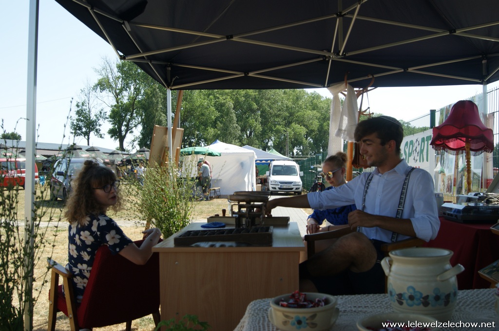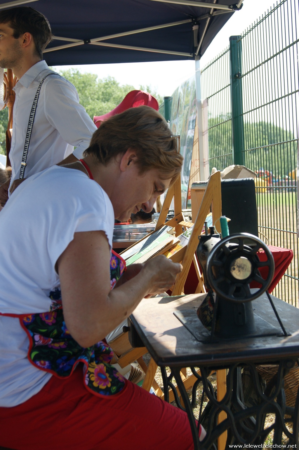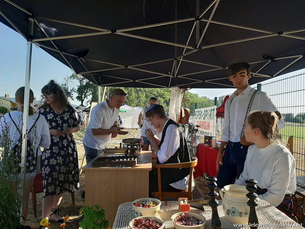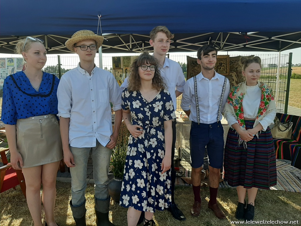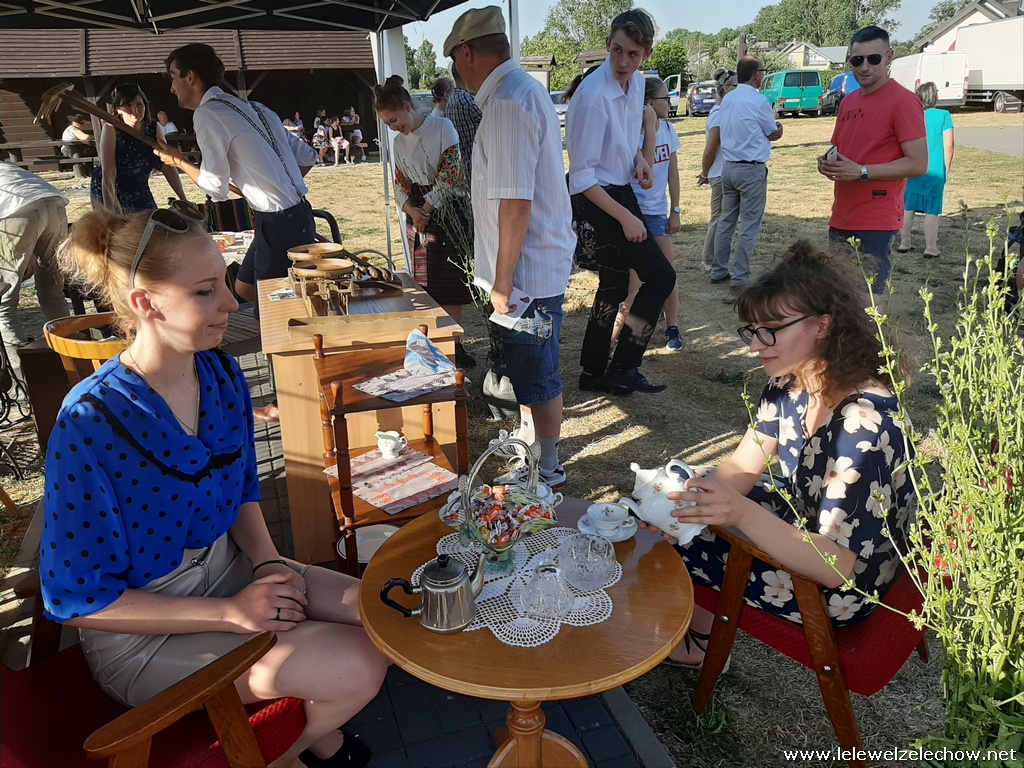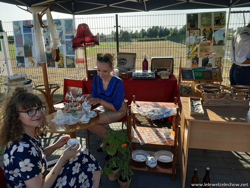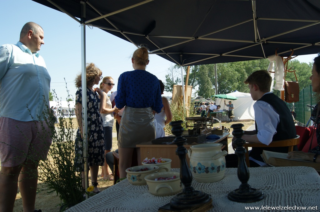 Dni Żelechowa i nasza wystawa przedmiotów codziennego użytku z XX w. Wśród nich znalazła się maszyna do szycia ,,Singer" (?), pralka ,,Frania", płyty analogowe, kasety magnetofonowe, stare monety, telefon, liczydła i wiele, wiele innych. Wystawę podzieliliśmy na część wiejską, część miejską i część handlową. Każdy z uczniów dopasował się strojem do danej strefy. Mimo upału dzielnie stali na swoich stanowiskach sami również się bawiąc. Wystawa cieszyła się zainteresowanie dorosłych i dzieci. Wśród odwiedzających znalazł się także Burmistrz Żelechowa Łukasz Bogusz oraz ...pani Halina Frąckowiak, która została obdarowana przez nas jednym z eksponatów, który sobie wypatrzyła.