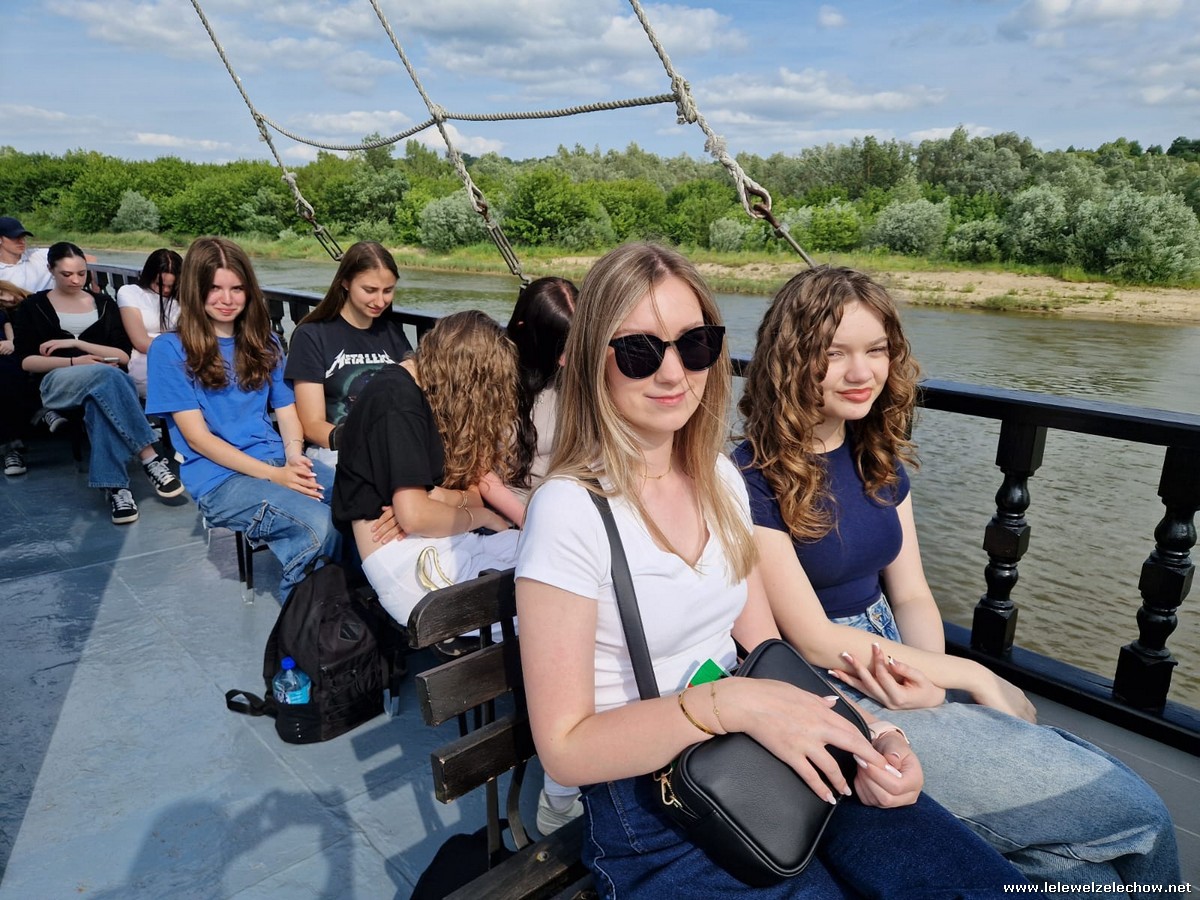 Kolejną atrakcją był rejs statkiem po Wiśle, podczas którego młodzież podziwiała urokliwe widoki i panoramę z widokiem na zamek w Janowcu. Wieczorem nie zabrakło czasu na wspólną integrację przy ognisku i pieczeniu kiełbasek.