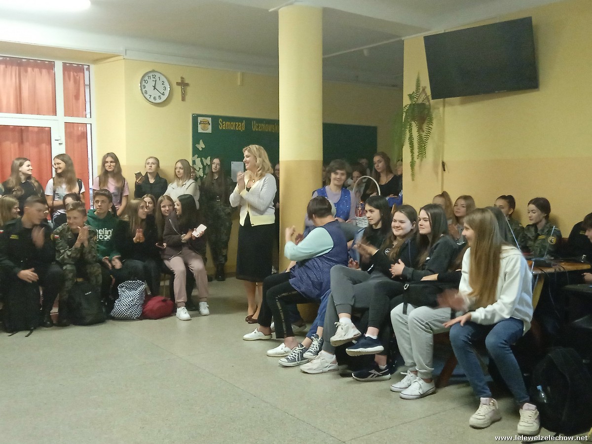30 września podczas zebrania Rady SU nowy Zarząd SU podziękował dotychczasowym opiekunowi -pani Lidii Soćko oraz Zarządowi SU za roczna pracę wręczając słodkie upominki. Pani Soćko jak również była już przewodnicząca podziękowały za dobrą współpracę i życzyły powodzenia nowemu Zarządowi. Jednocześnie tego dnia obchodzony był w szkole Dzień Chłopaka. Z tej okazji dziewczyny z poszczególnych klas przygotowaly prezenty i życzenia dla swoich kolegów. Na długiej przerwie na holu szkoły odbyły się konkurencję wśród kandydatów wyłonionych w wyborach na Mistera szkoły. W wyniku rywalizacji misterem szkoły został Kacper z 3b a wicemisterem Michał z 1a. Wszyscy chłopcy zostali obdarowani słodkimi upominkami. Imprezę z werwą poprowadziła nowa przewodniczącą SU - Patrycja z pomocą Oliwii. Dziękujemy za wspólną zabawę!