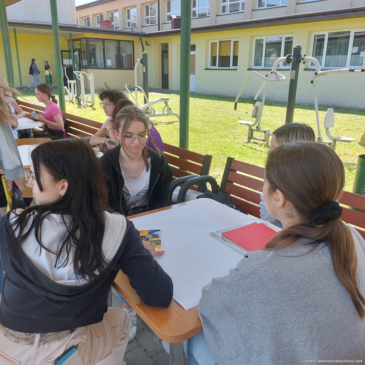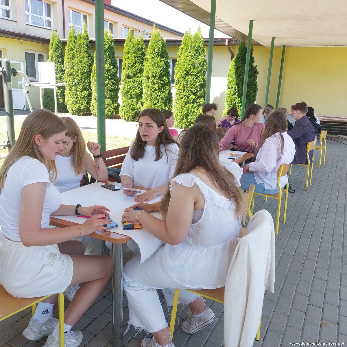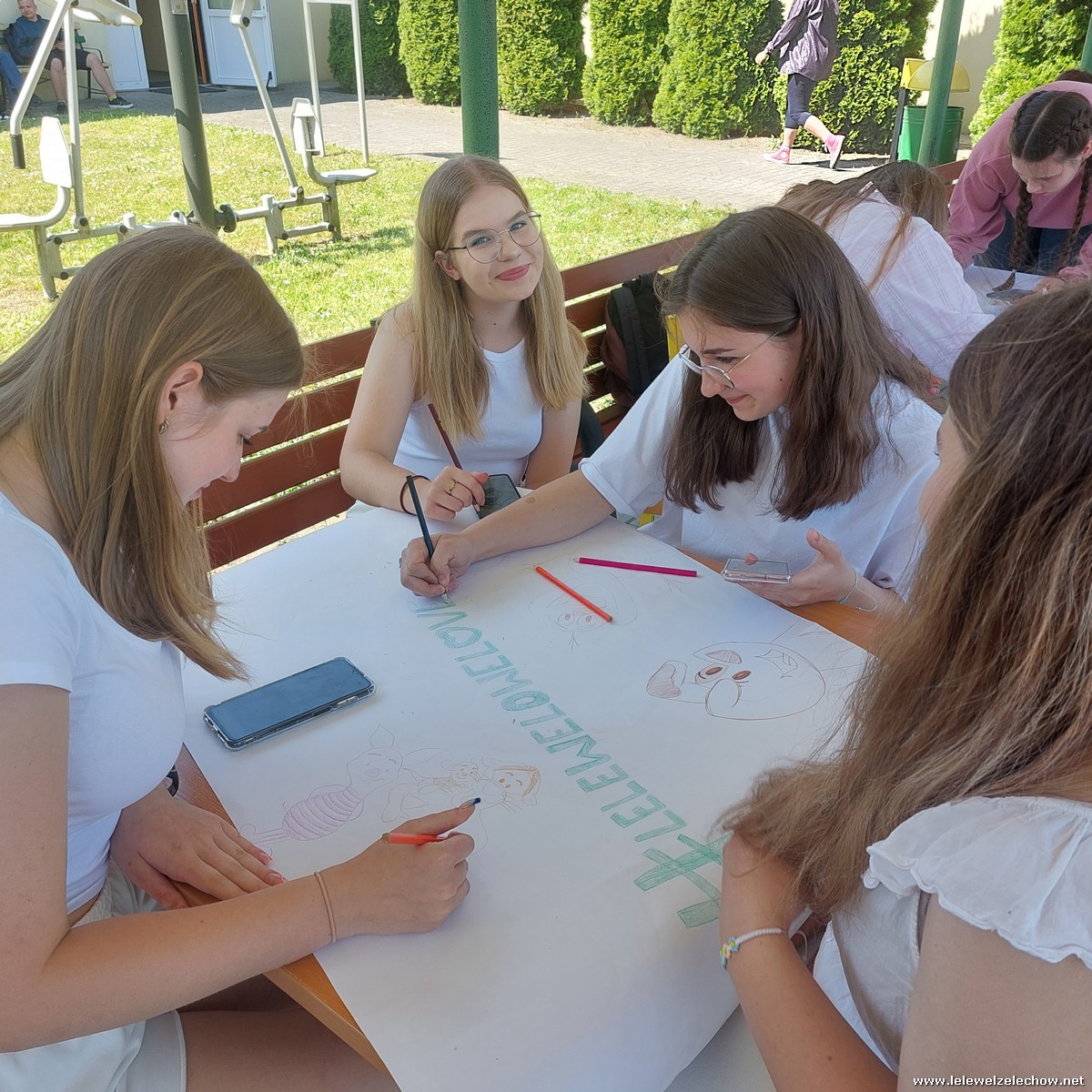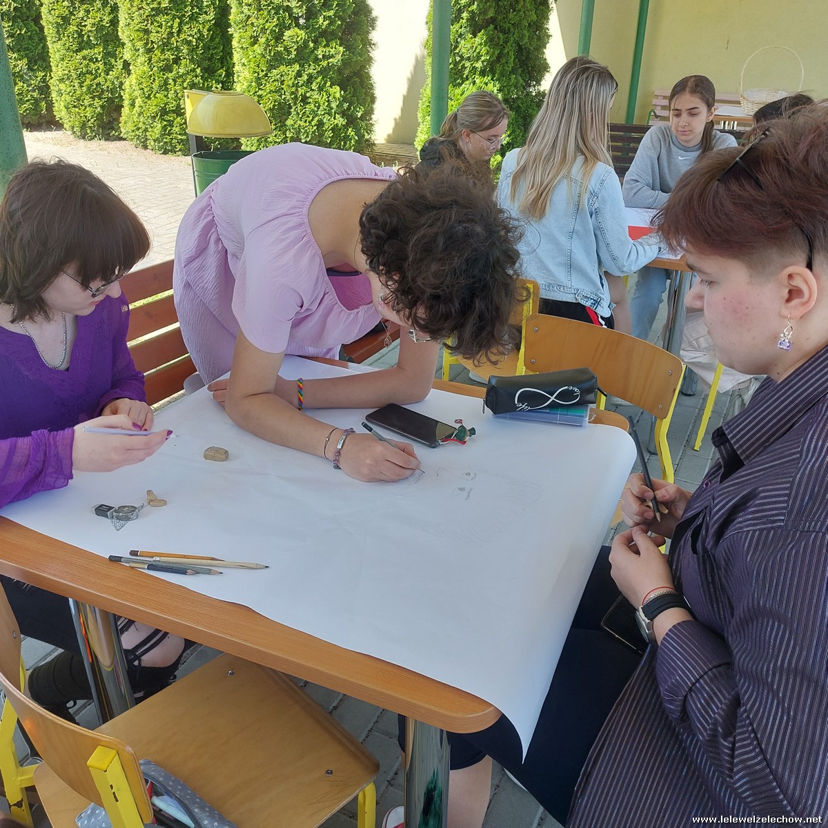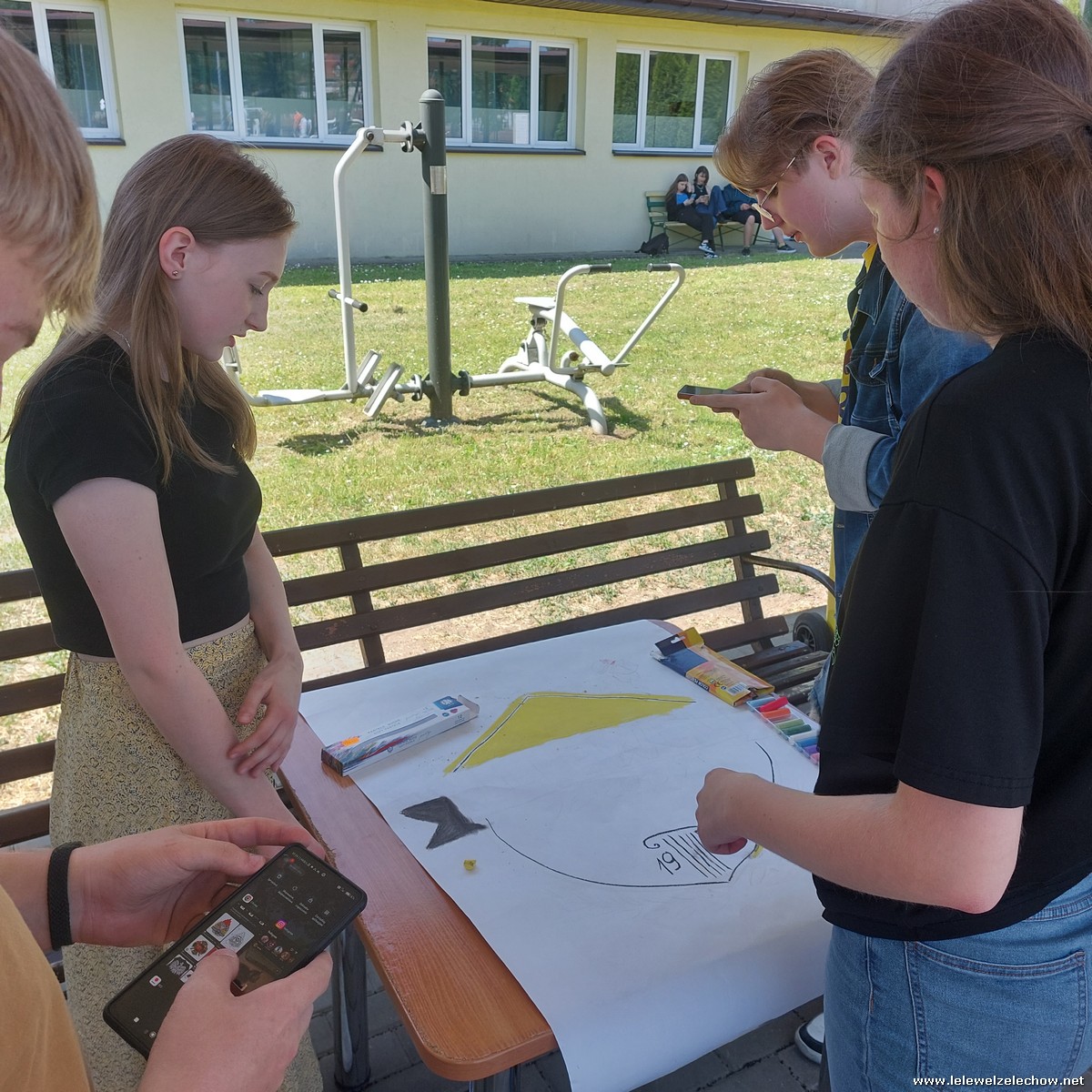 W międzyczasie zorganizowany został quiz o szkole, w którym uczniowie musieli wykazać się dużą spostrzegawczością, a kilkuosobowe grupy wykonywały plakaty - projekty muralu szkolnego.