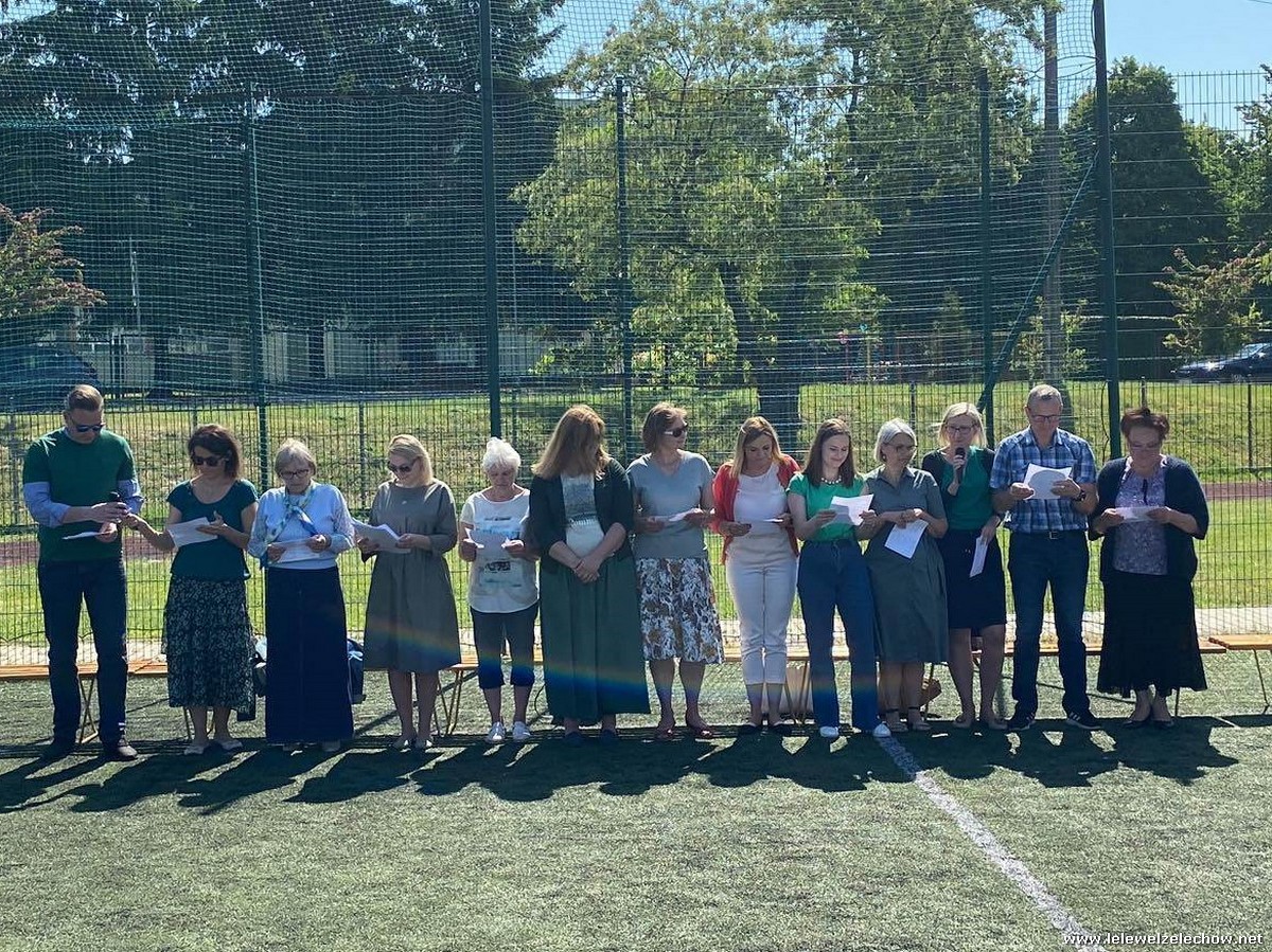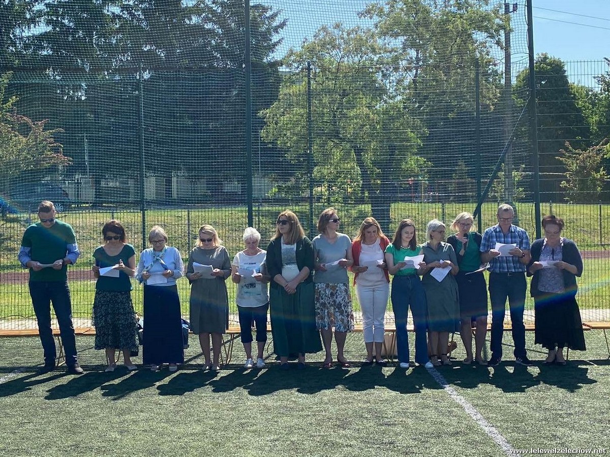 Niespodzianką okazał się występ kadry i pracowników szkoły, którzy odczytali wiersz ,,Na straganie" Jana Brzechwy. Uczniowie podziękowali kadrze zasłużonymi, gromkimi brawami.