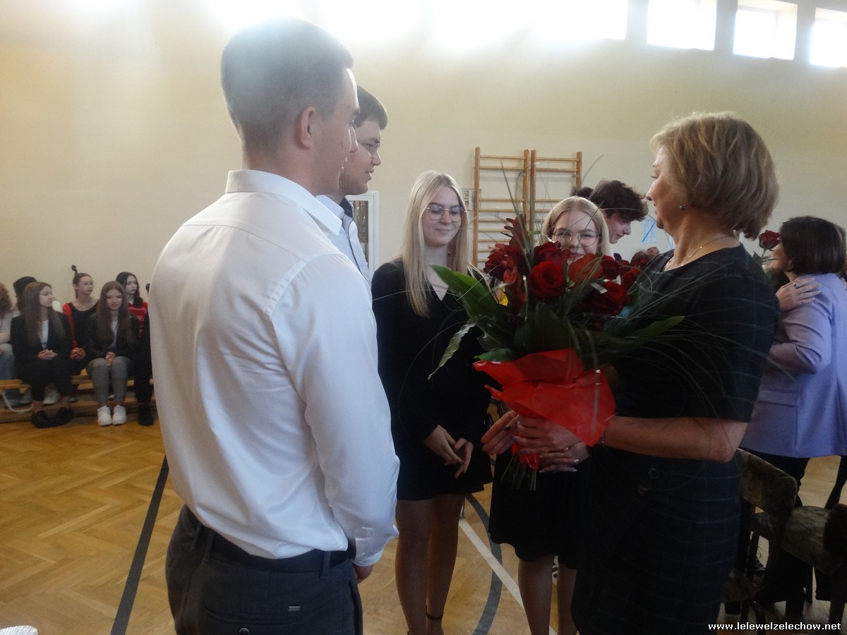Na zakończenie uroczystości przedstawiciele SU złożyli Dyrektor szkoły,Nauczycielom i wszystkim pracownikom szkoły najlepsze życzenia oraz wręczyli kwiaty. Życzenia do Nauczycieli skierowała również pani Dyrektor.