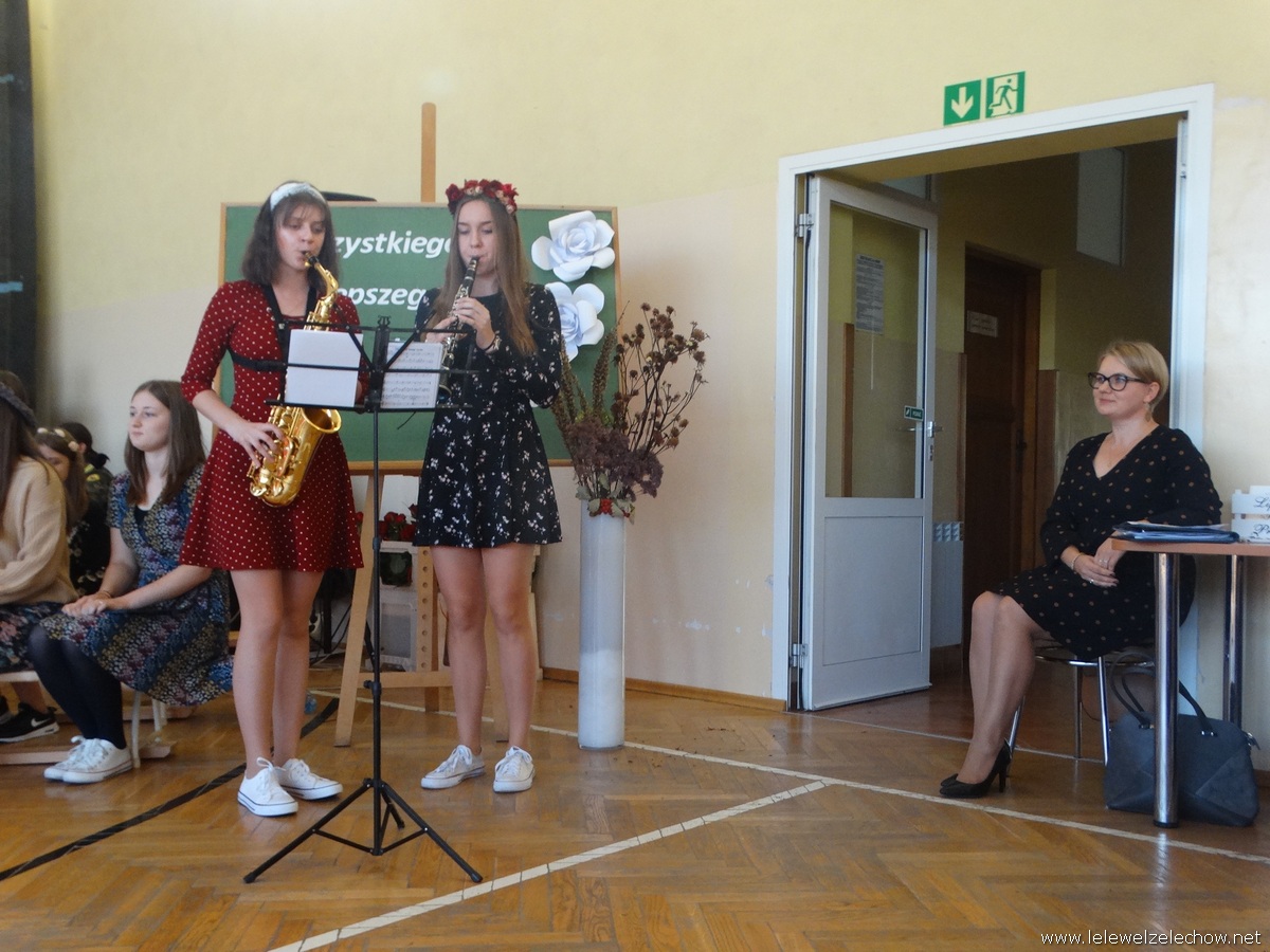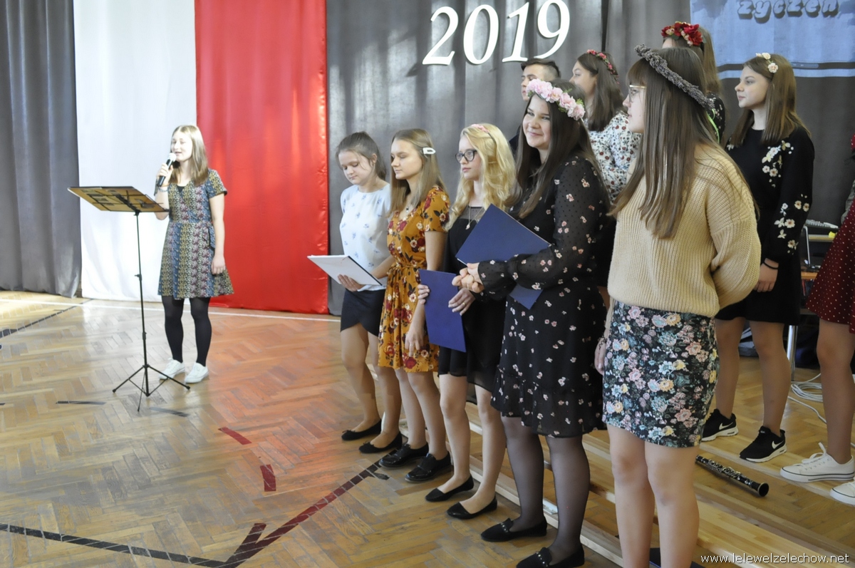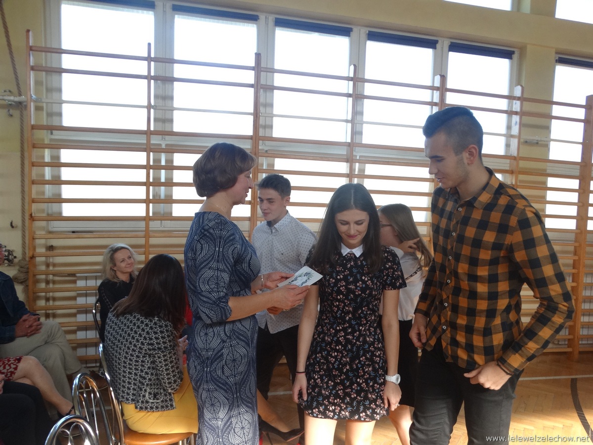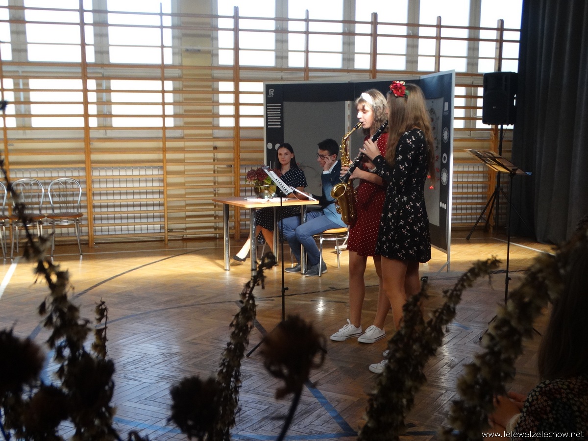 Tegoroczny Dzień Nauczyciela przygotowali uczniowie klas I i II pod kierunkiem pani Katarzyny Muchy. Sympatyczny koncert życzeń stanowiły oryginalne życzenia dla nauczycieli i pracowników szkoły przeplatane piosenkami w wykonaniu naszych nowych i dobrze już znanych talentów. Uzupełnieniem życzeń były pamiątkowe kartki przygotowane przez uczennice klas III – Agatę i Weronikę.