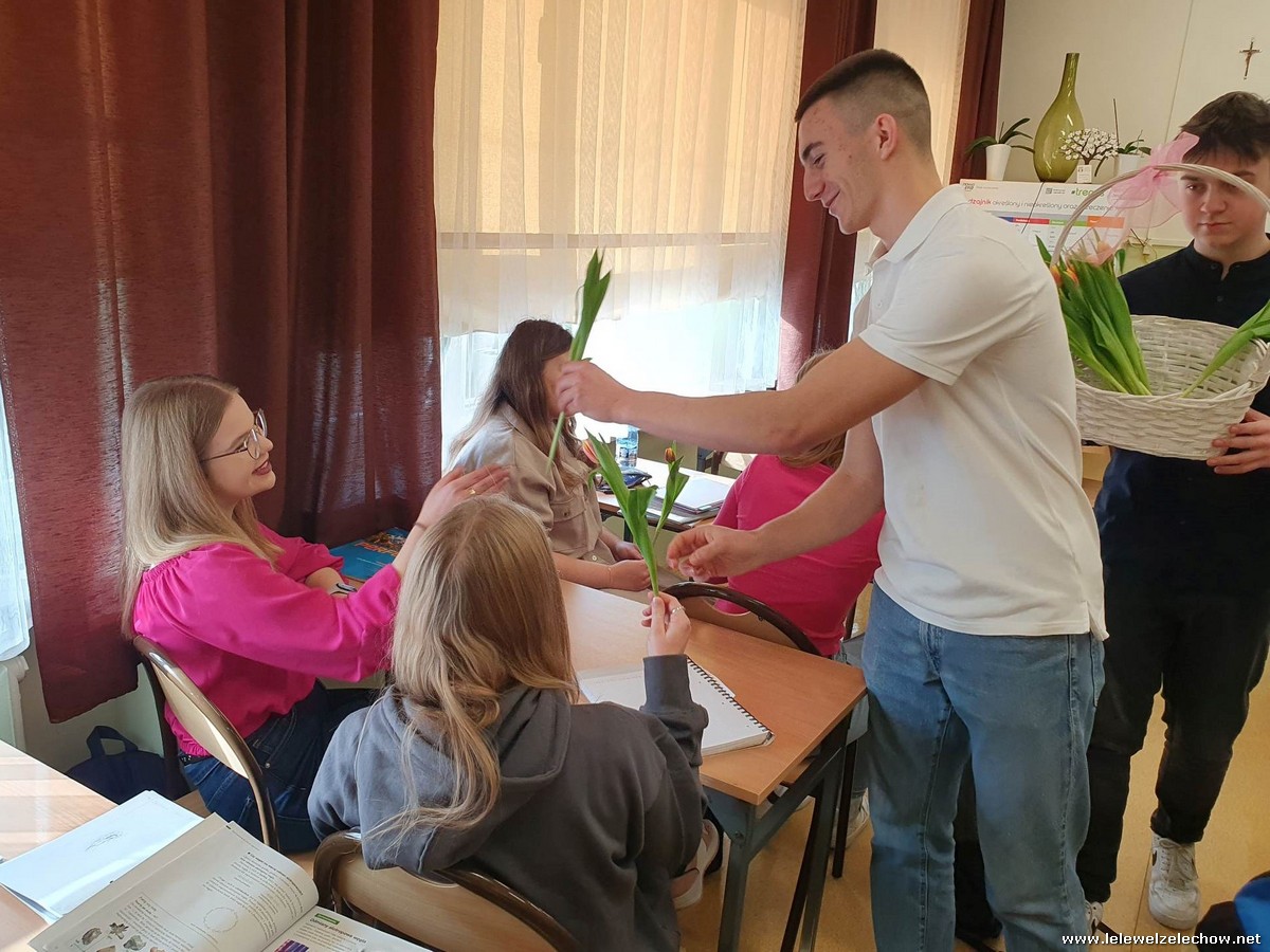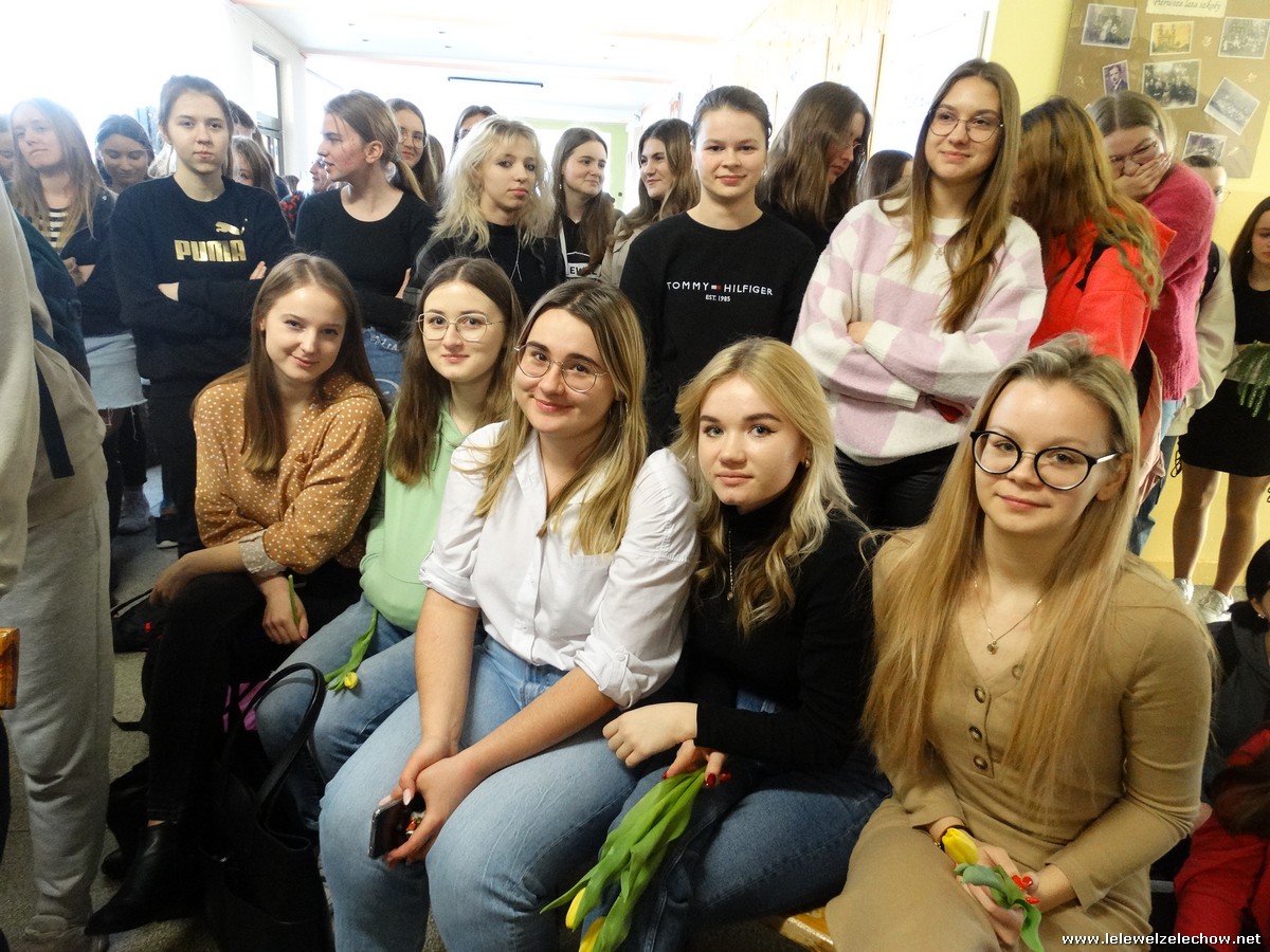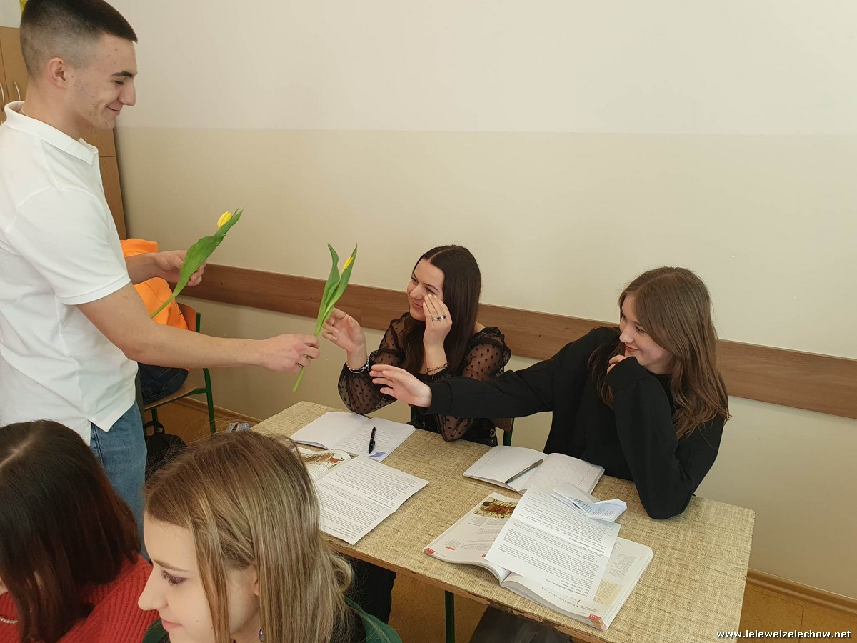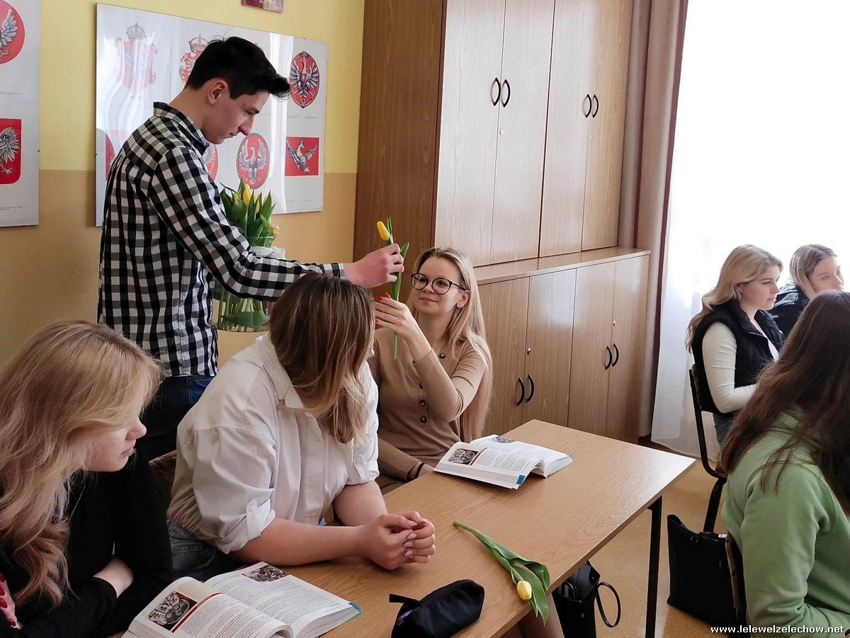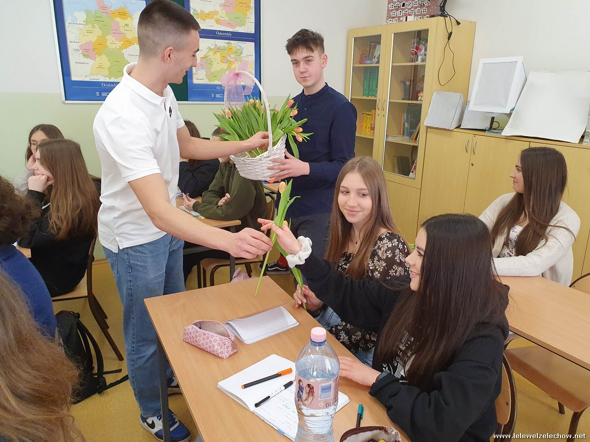 8 marca tradycyjnie obchodzimy Dzień Kobiet. Społeczność męska ,,Lelewela,,i tym razem pamiętała o Paniach i Dziewczętach naszego liceum. Chłopcy złożyli wszystkim życzenia i wręczyli wiosenne tulipany. Na długiej przerwie odbyły się uroczystości wybrania miss szkoły - licealistek i nauczycielek. Miss uczennic, po ,,zaciętej” konkurencji wśród kandydatek wyłonionych w głosowaniu, została Zuza Hardel z klasy 4d zaś Miss Nauczycielek - pani Olga Witek- Cichecka. Jednocześnie chłopcy nagrali filmik z życzeniami, który mogliście obejrzeć na fb szkoły już wcześniej.