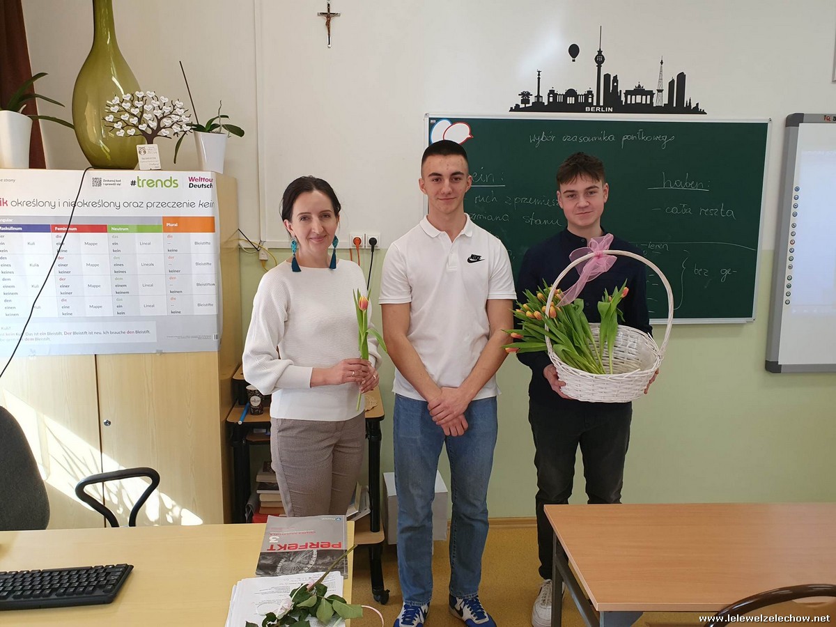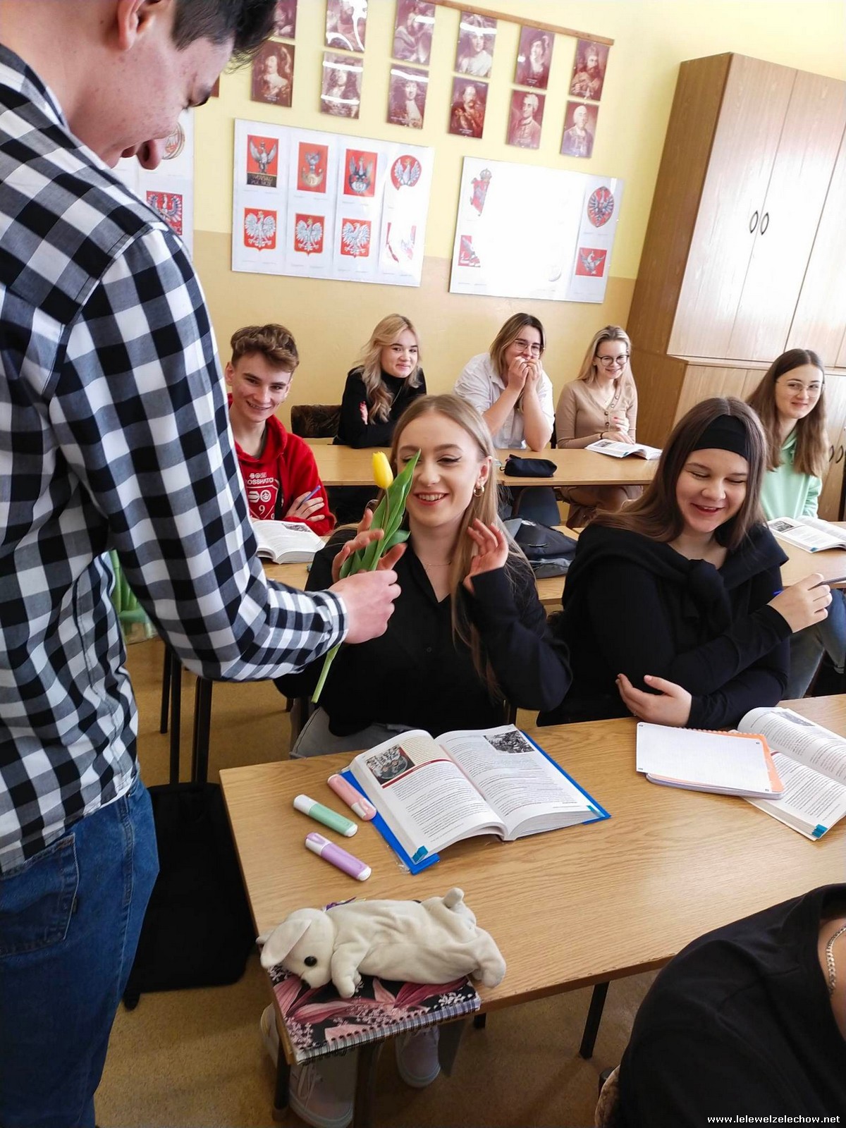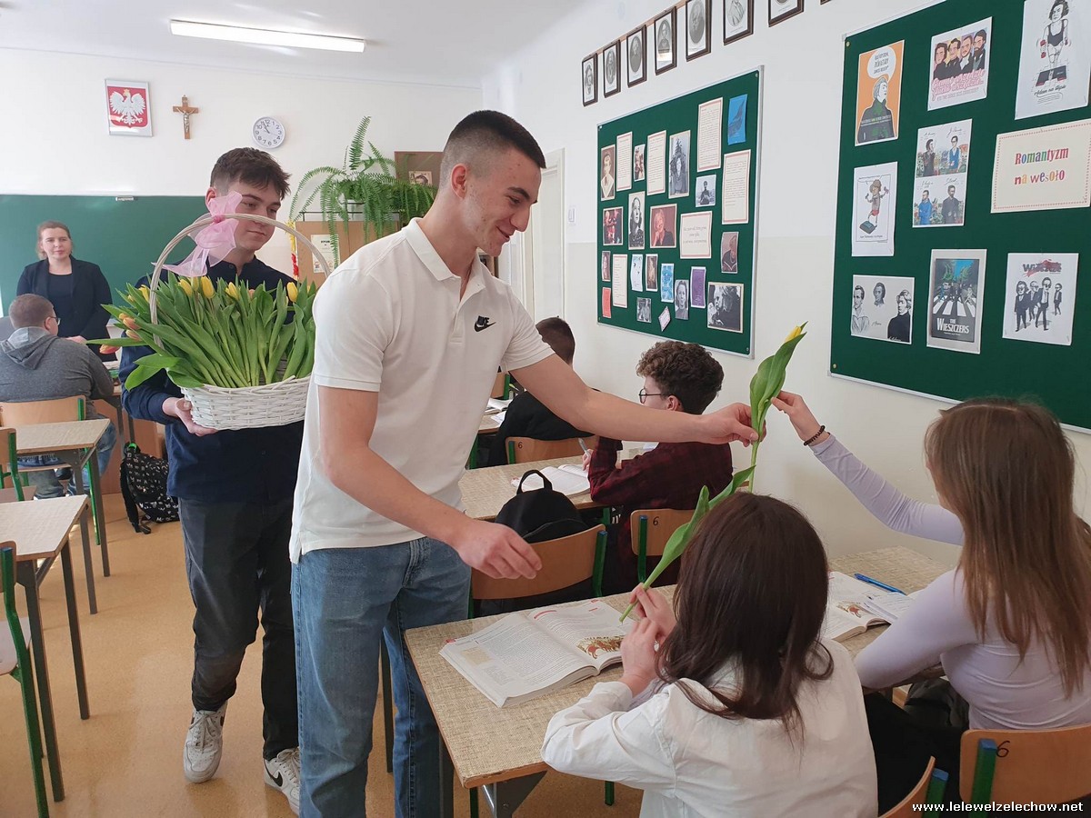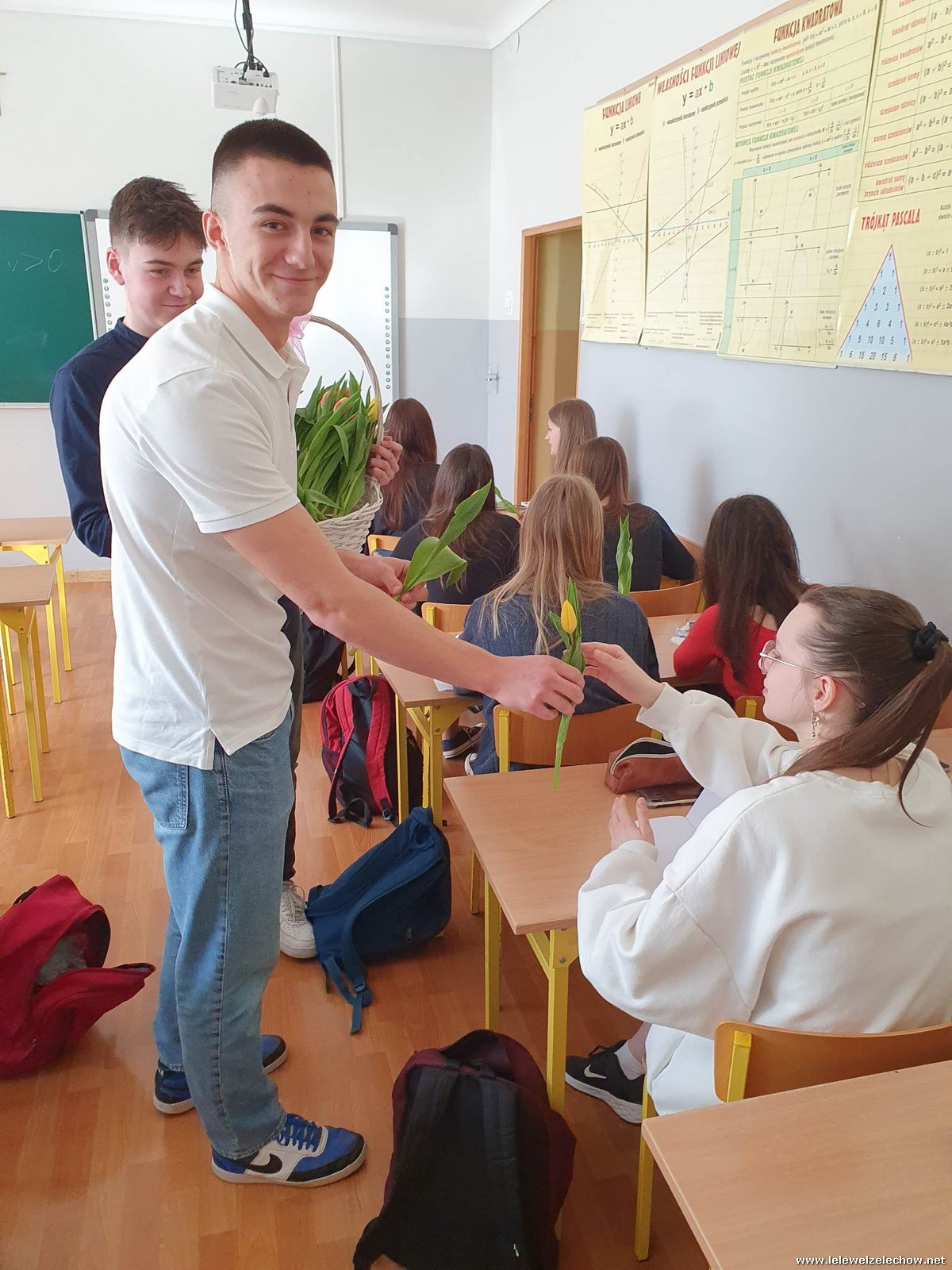8 marca tradycyjnie obchodzimy Dzień Kobiet. Społeczność męska ,,Lelewela,,i tym razem pamiętała o Paniach i Dziewczętach naszego liceum. Chłopcy złożyli wszystkim życzenia i wręczyli wiosenne tulipany. Na długiej przerwie odbyły się uroczystości wybrania miss szkoły - licealistek i nauczycielek. Miss uczennic, po ,,zaciętej” konkurencji wśród kandydatek wyłonionych w głosowaniu, została Zuza Hardel z klasy 4d zaś Miss Nauczycielek - pani Olga Witek- Cichecka. Jednocześnie chłopcy nagrali filmik z życzeniami, który mogliście obejrzeć na fb szkoły już wcześniej.