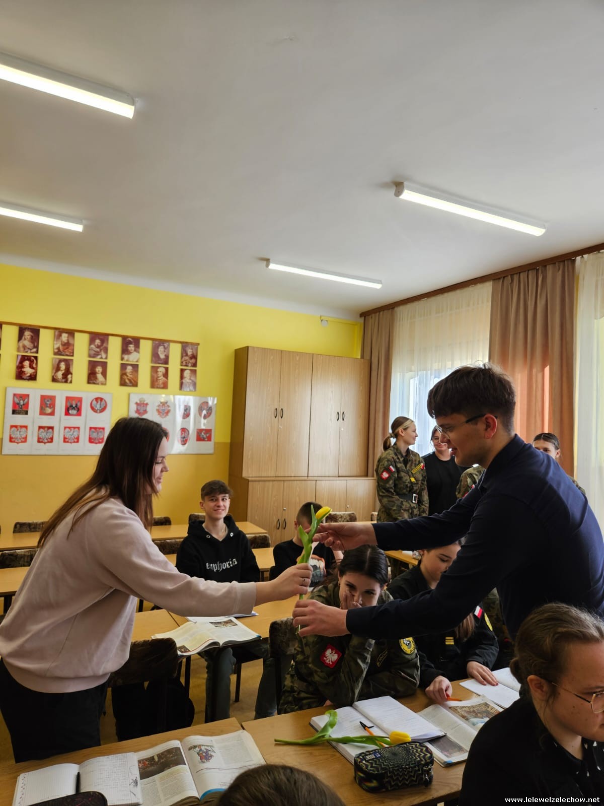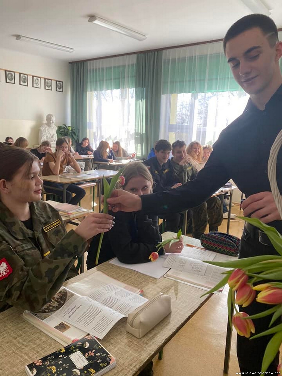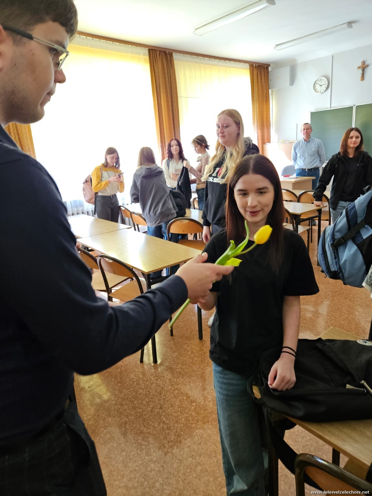 Każda kobieta zasługuje, aby docenić ją codziennie, nie tylko od święta, ale miłe słowa i gesty przyjmuje zawsze z wielką radością. Tak właśnie było dziś w ,,Lelewelu,, Chłopcy z SU zadbali aby wszystkie panie i dziewczęta otrzymały kwiaty i życzenia. Wybrano również Miss Lelewela uczennic i nauczycielek! To był bardzo sympatyczny dzień dla wszystkich! Dziękujemy Panowie!