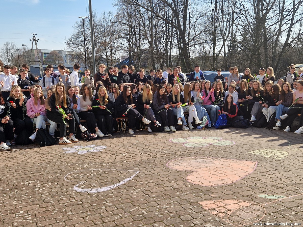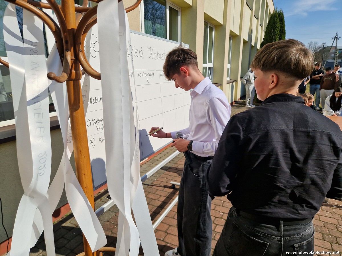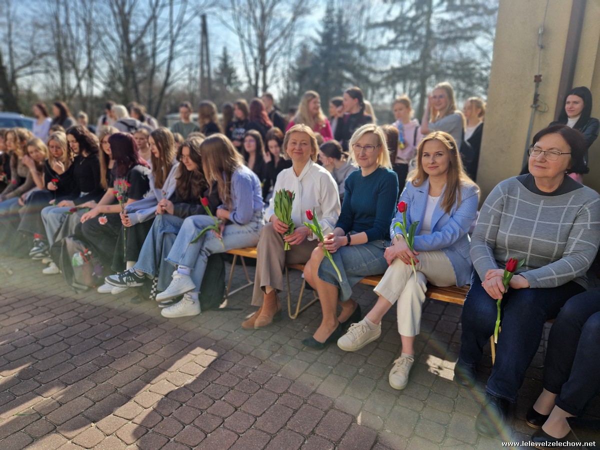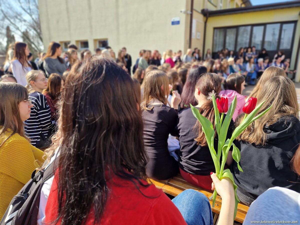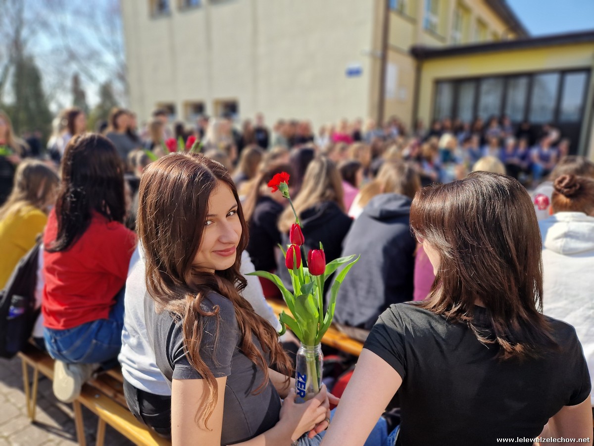 10 marca w naszym liceum obchodziliśmy święto wszystkich Pań, tradycyjny Dzień Kobiet. Wszyscy zgromadzeni na placu szkolnym chłopcy przywitali wchodzące dziewczęta gromkim 100 lat! a następnie rozdali kwiatyi złożyli życzenia.
