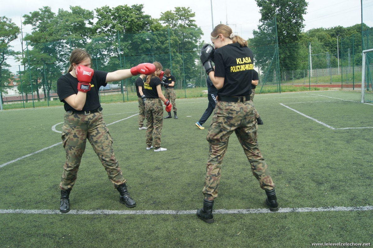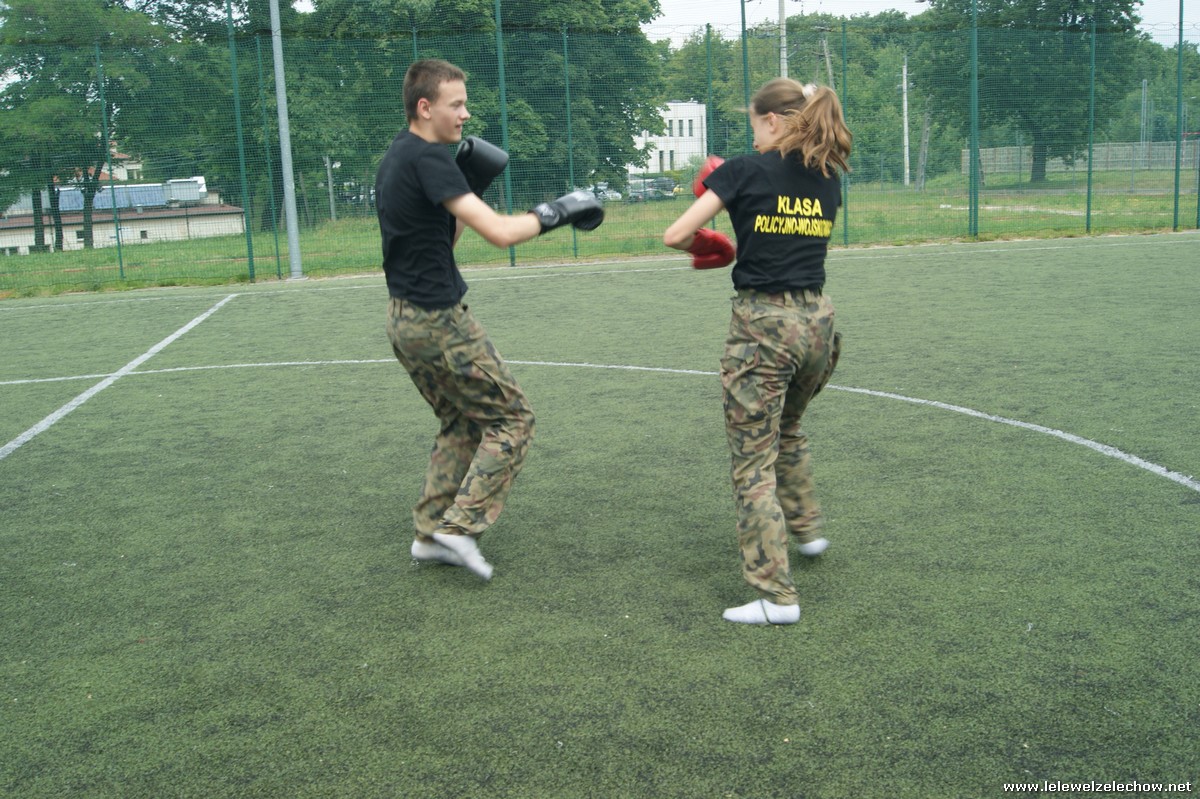 16 czerwca, na ostatnich zajęciach mundurowych w tym roku szkolnym, dokonano podsumowania zajęć policyjno – wojskowych w zakresie prezentacji technik samoobrony i boksu.