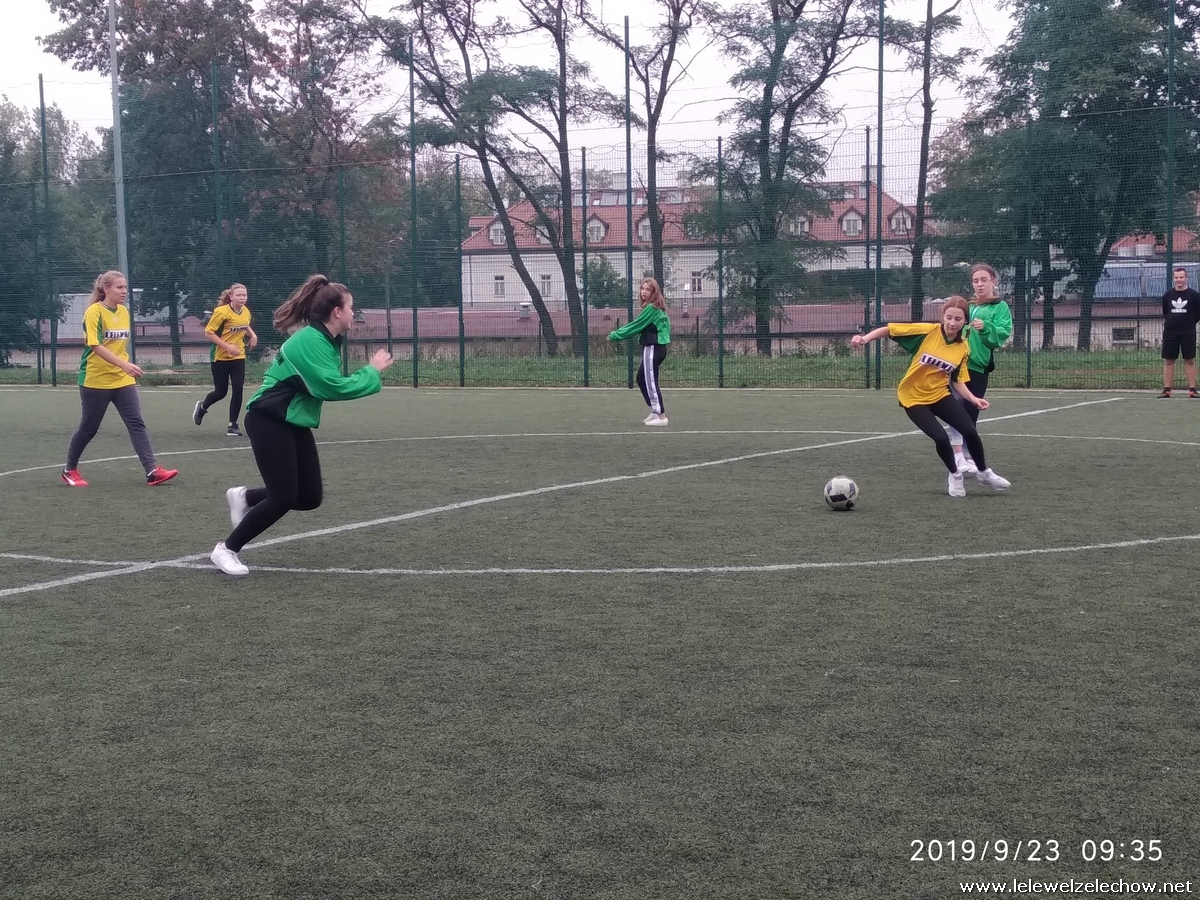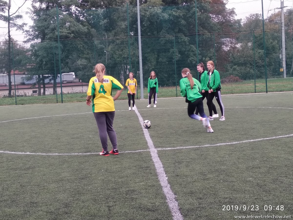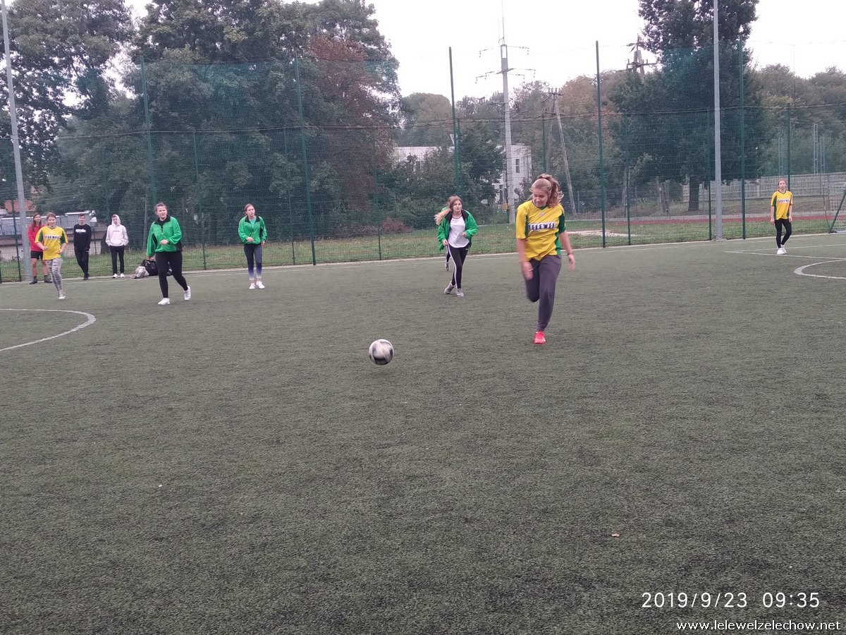 Mecz piłki nożnej dziewcząt. Gra zespół złożony z zawodniczek z klas pierwszych kontra klasy drugie i trzecie. Wyraźne, wysokie zwycięstwo odnosi drużyna starsza, a najwięcej bramek zdobywa Natalia Szostak i Amelia Bauman. Dziewczęta młodsze chcąc się odegrać proponują kolejny pojedynek, tym razem w piłkę ręczną.