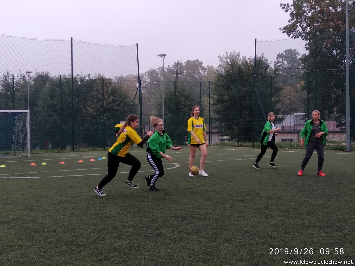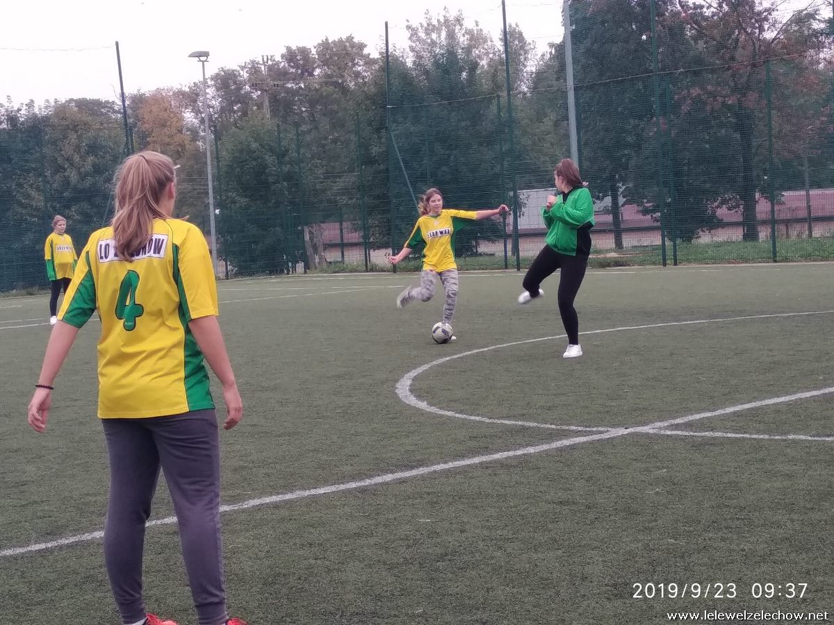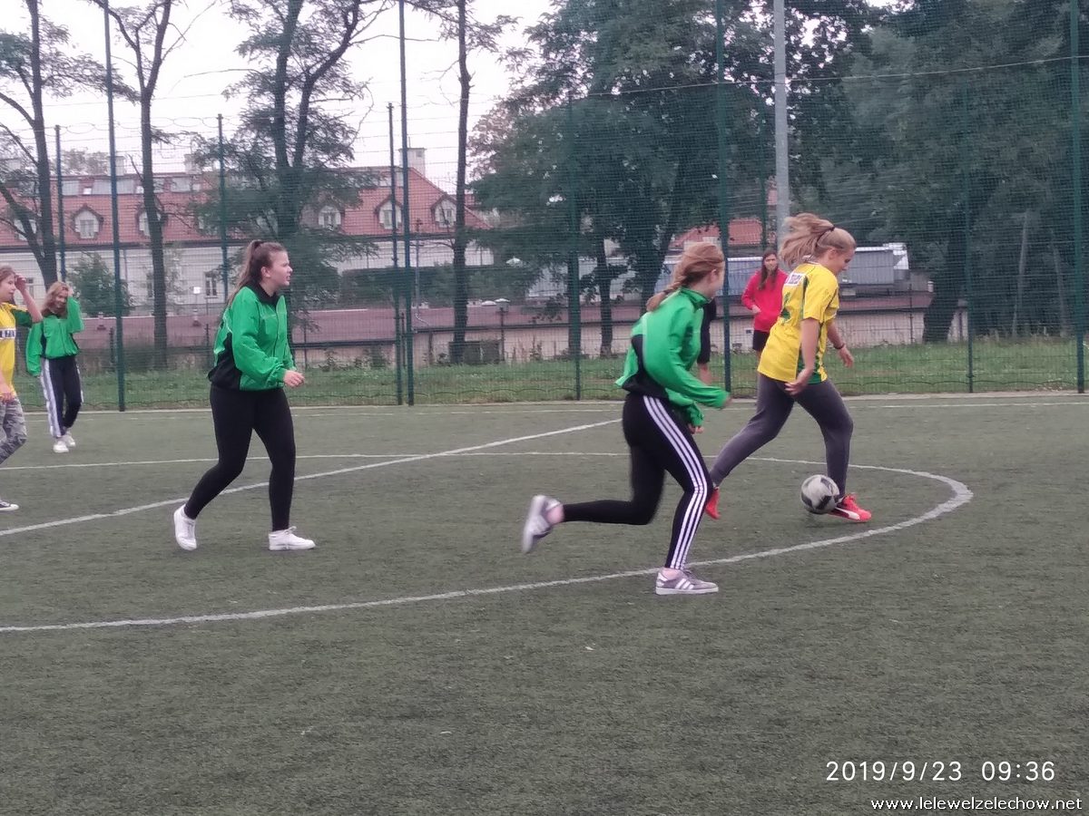 Mecz piłki nożnej dziewcząt. Gra zespół złożony z zawodniczek z klas pierwszych kontra klasy drugie i trzecie. Wyraźne, wysokie zwycięstwo odnosi drużyna starsza, a najwięcej bramek zdobywa Natalia Szostak i Amelia Bauman. Dziewczęta młodsze chcąc się odegrać proponują kolejny pojedynek, tym razem w piłkę ręczną.