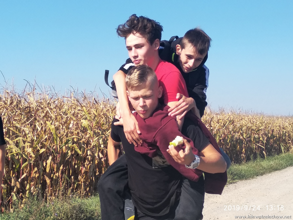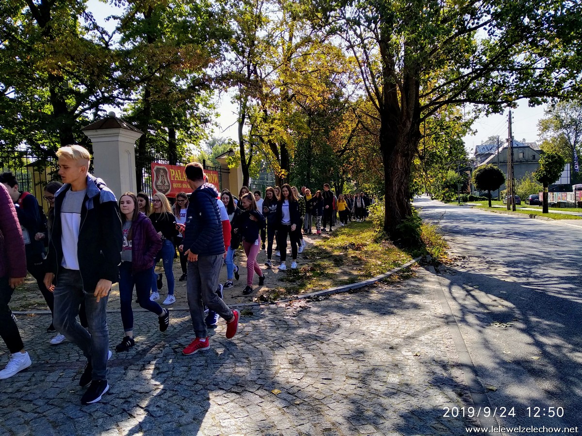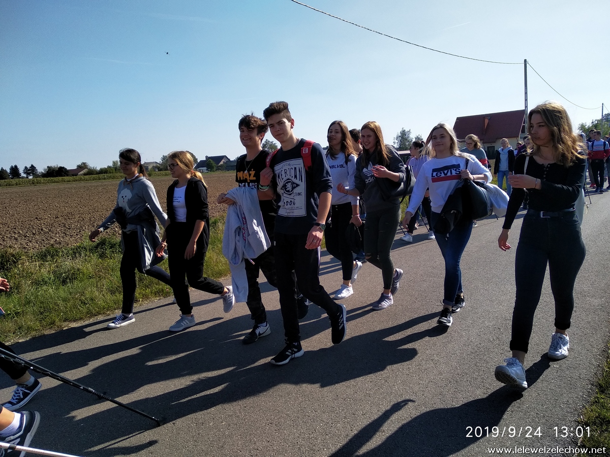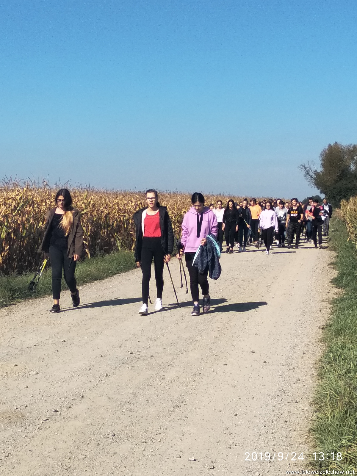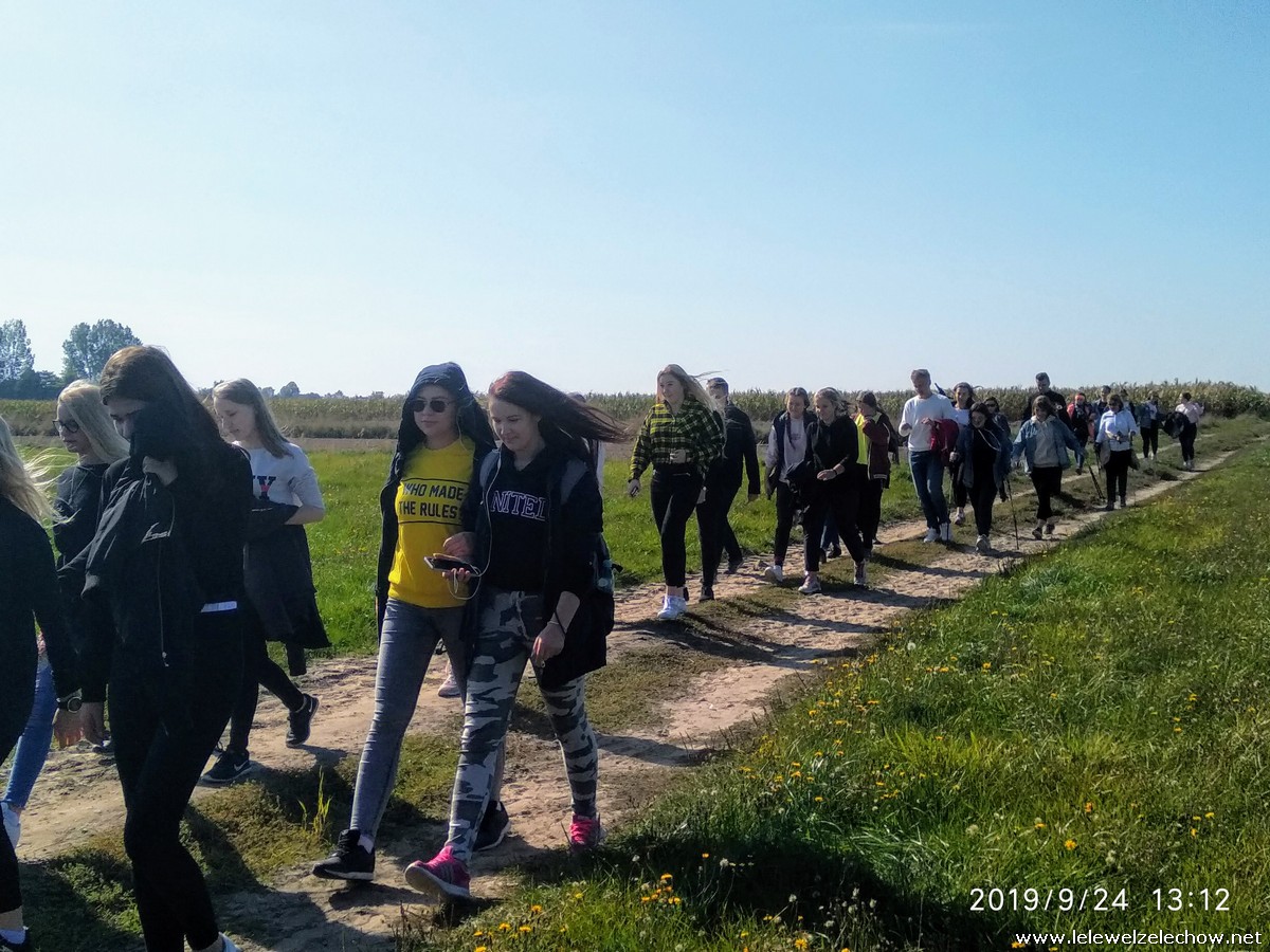 Marsz nordic walking, w trasę którego wyrusza ponad połowa szkoły. Ok. 100 uczniów pod opieką nauczycieli: Joanny Włodarczyk, Anetty Dziak, Joanny Baranieckiej, Andrzeja Głodka i ks. Leszka Mućki przemierza dystans 5 km. Kto nie miał kijów do nordic walkingu oczywiście mógł iść bez nich.