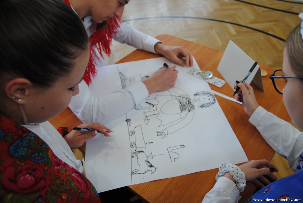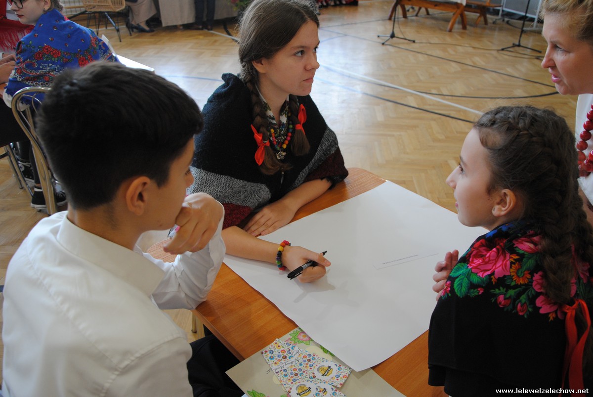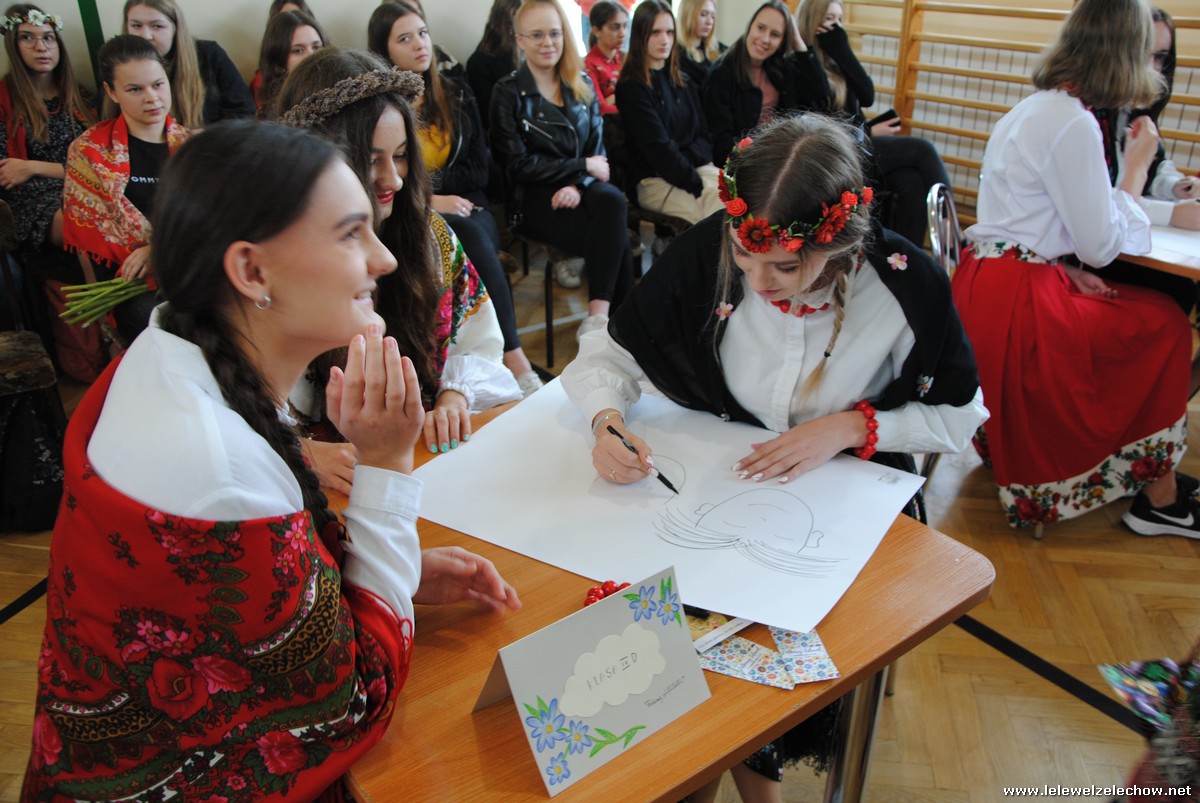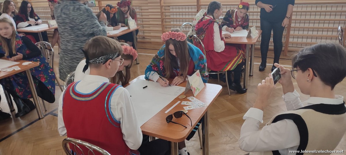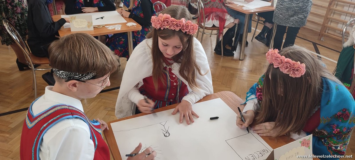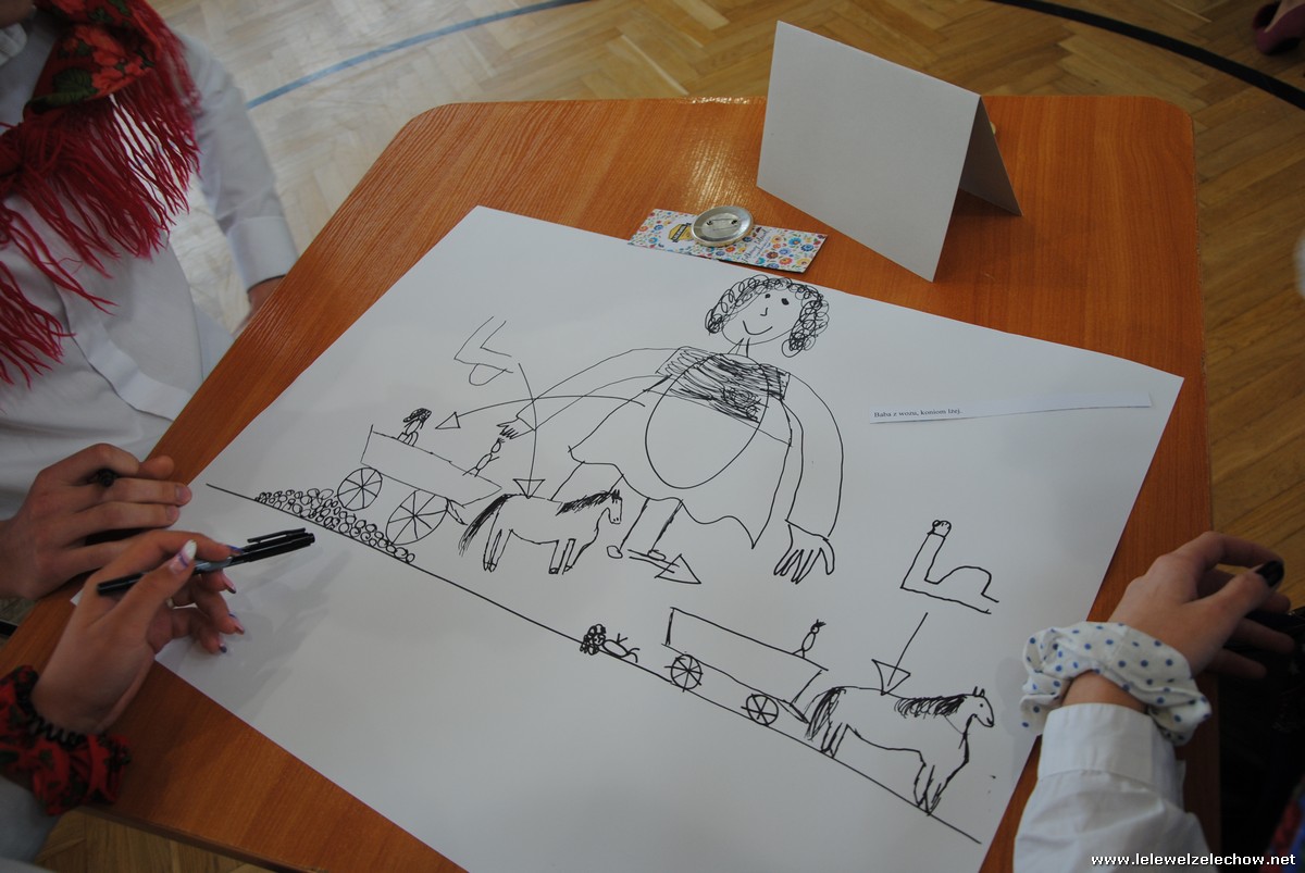 Nasza impreza była pełna atrakcji - zespół wokalny bawił publiczność znanymi i lubianymi piosenkami folkowo - ludowymi, uczniowie jak również nasi Goście rysowali przysłowia (efekty tych prac następnie przedstawiono ogółowi zebranych na sali). Wiele pozytywnych emocji przyniosło także odczytanie fragmentu powieści ”Chłopi” Władysława Reymonta przez naszych Gości :)