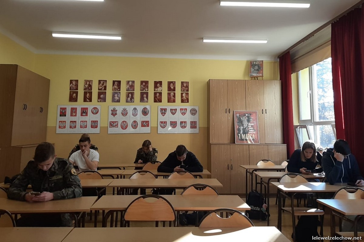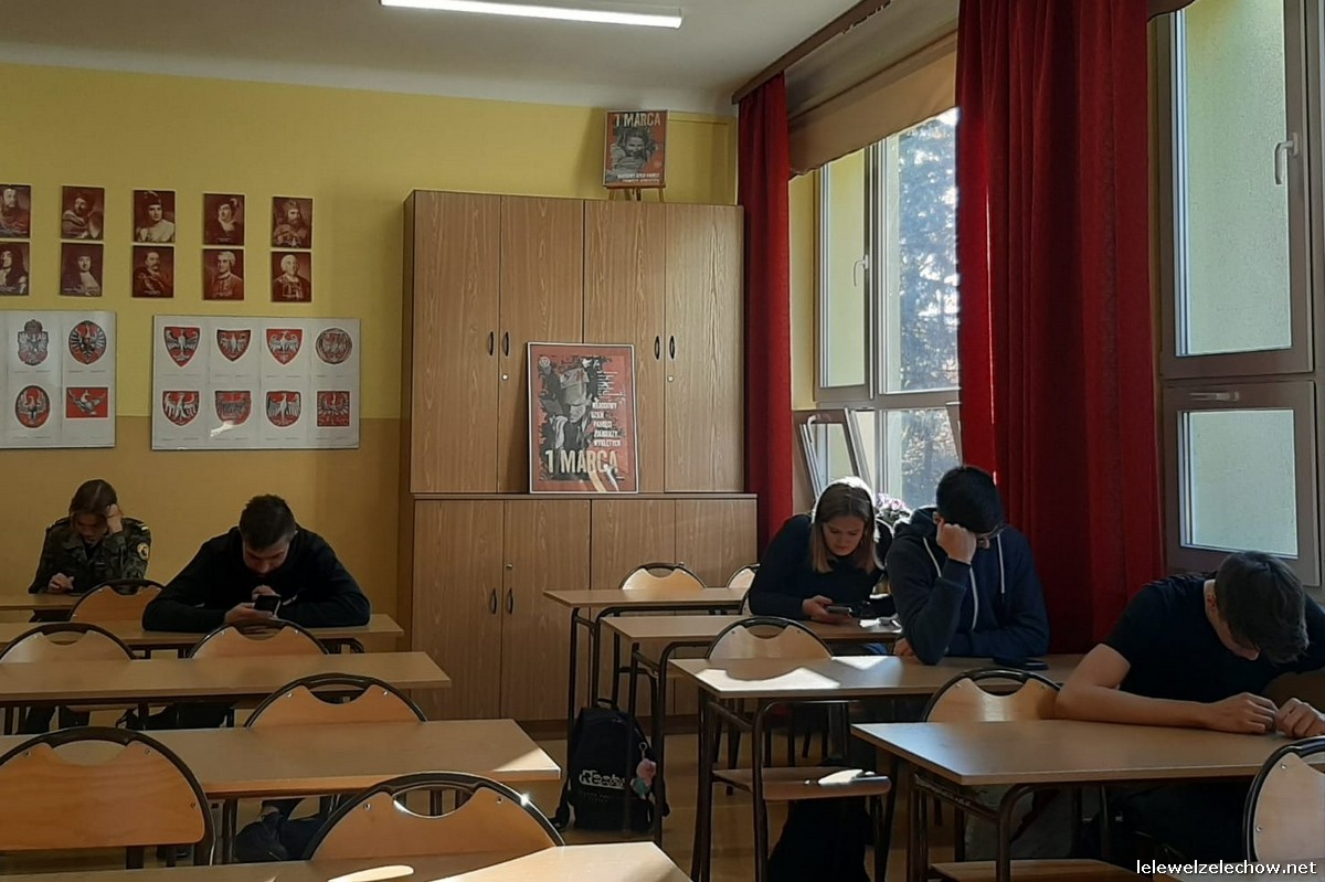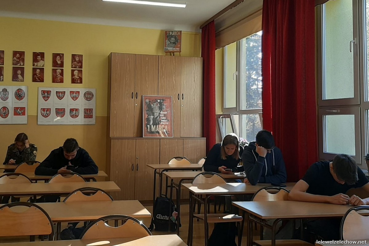 I etap (eliminacyjny) został przeprowadzony w dniu 29 października i polegał na rozwiązaniu testu online na platformie Moodle Szkoły Wyższej Wymiaru Sprawiedliwości w Warszawie przez wszystkich uczestników jednocześnie. Na rozwiązanie testu uczestnicy mieli 40 minut. Do testu przystąpili uczniowie z klas 3ab realizujący wiedzę o społeczeństwie na poziomie rozszerzonym. Dzień wcześniej wykonali obowiązkowy dla uczestników test próbny (zdj. ze świetlicy).