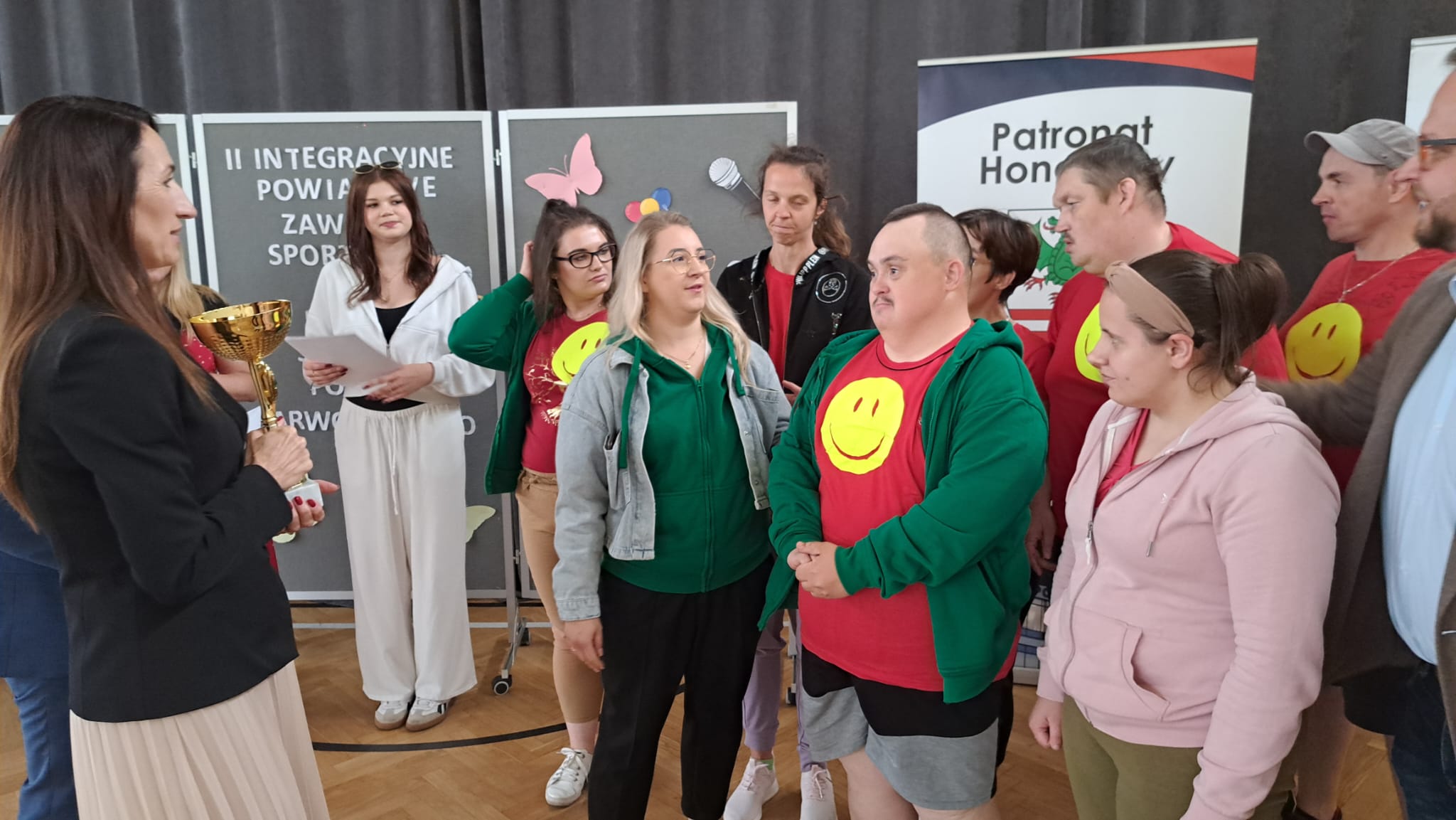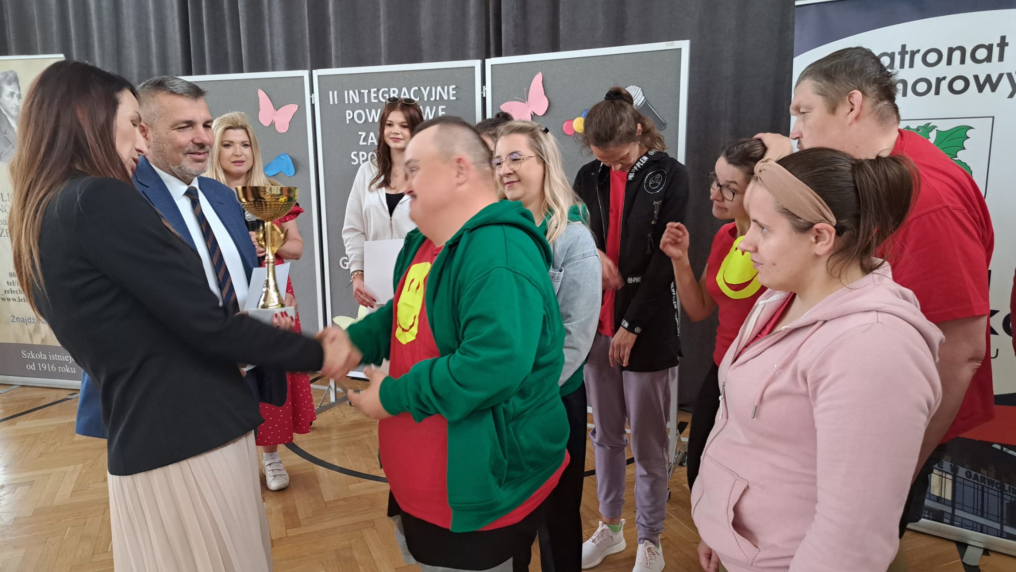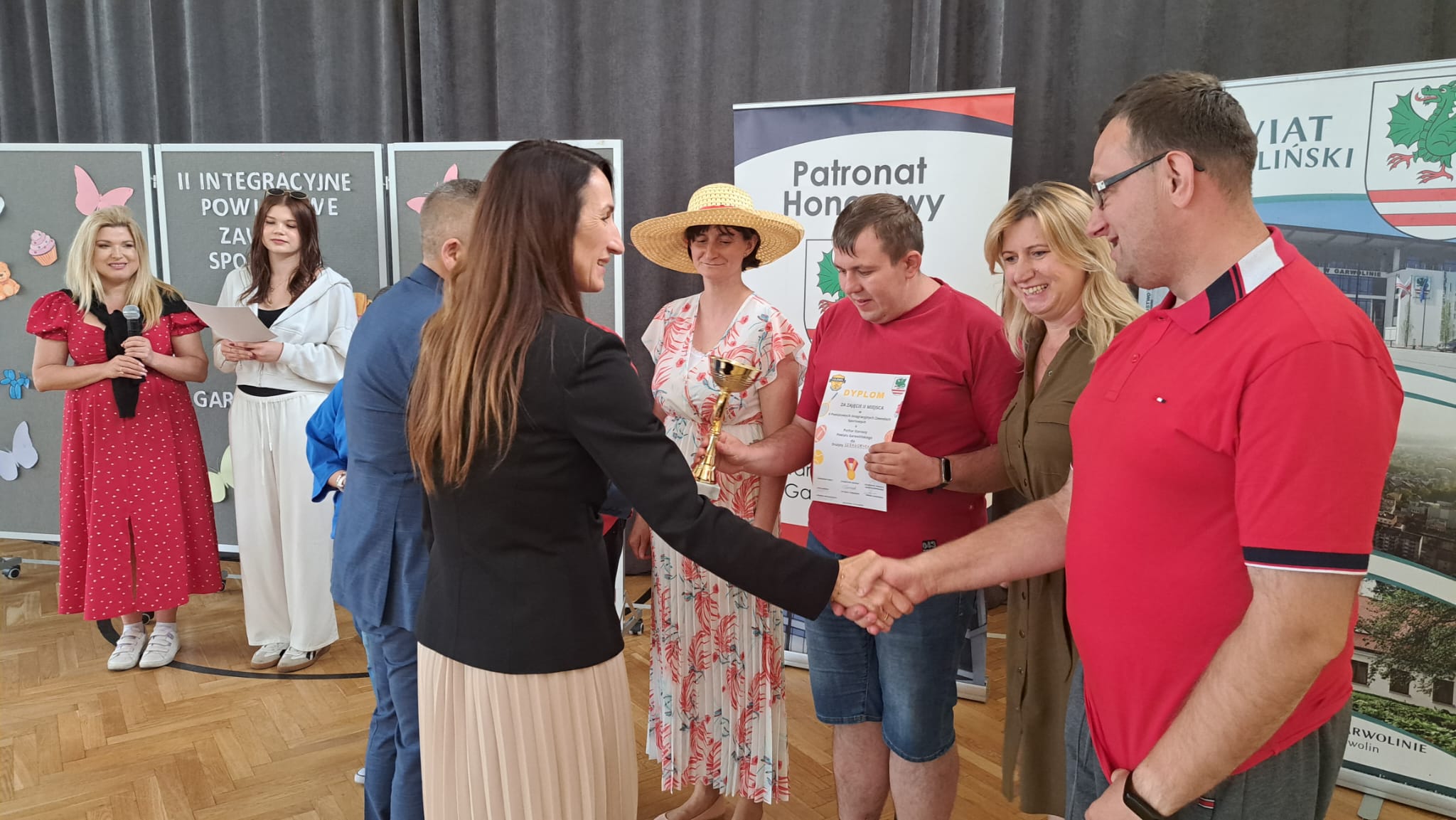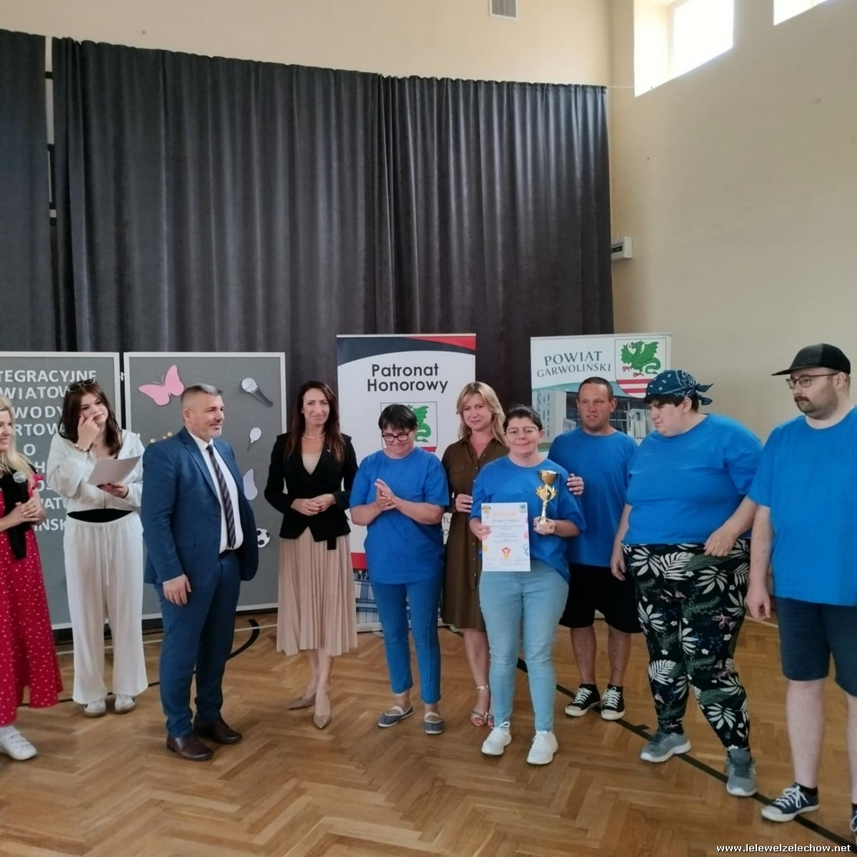 Po zawodach Pani Iwona Kurowska Starosta Powiatu Garwolińskiego i Pan Mirosław Walicki Wicestarosta Powiatu Garwolińskiego wręczyli dyplomy i nagrody rzeczowe. Pani Starosta pogratulowała udziału w zawodach sportowych i złożyła najgłębsze wyrazy uznania za postawę, determinację i ducha walki wszystkim zaangażowanym. Podkreśliła, że udział uczestników WTZ w zawodach to coś więcej niż rywalizacja — to piękne świadectwo siły charakteru, odwagi i nieustępliwości, pokazanie, jak można między sobą rywalizować, wspierać się oraz dopingować zawodników przeciwnych drużyn.
