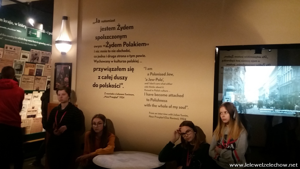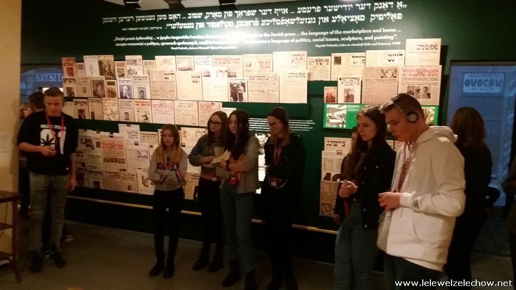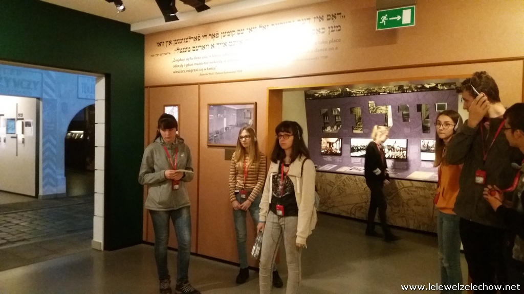 5 grudnia 2018 roku o godzinie 7.45 uczniowie klasy III gimnazjum z opiekunami p. Magdaleną Woźniak i p. Arkadiuszem Jurzystą zebrali się pod szkołą, aby wyruszyć na wycieczkę. Naszym celem była Warszawa. Przed godziną 11 rozpoczęliśmy zwiedzanie Muzeum Historii Żydów Polskich POLIN. Pani przewodnik oprowadziła nas po wystawie stałej, prezentując 1000 lat historii Żydów polskich – od średniowiecza po czasy współczesne. Opowiedziała o różnorodności społecznej i religijnej na przestrzeni lat, rozwoju kultury, niespokojnych latach przed II wojną światową i okrutnych czasach okupacji. Ogromne wrażenie zrobiła na nas galeria „Na żydowskiej ulicy (1918 – 1939)”. Uświadomiliśmy sobie, że mimo pojawiających się problemów, kwitło wówczas życie kulturalne i polityczne. Z ulicy mogliśmy wejść w bramy kamienic i poczuć atmosferę, jaka towarzyszyła ówczesnemu życiu społecznemu w Polsce. Zaciekawiło nas to, że ulica ta znajduje się w miejscu, w którym przed II wojną światową była ulica Zamenhofa, zamieszkiwana głównie przez ludność żydowską. Dowiedzieliśmy się bardzo dużo o zwyczajach, obrzędach, zasadach społecznego i religijnego funkcjonowania, organizacji domów żydowskich, dniach codziennych i świętach. Kończąc zwiedzanie wystawy, obejrzeliśmy medal „ Sprawiedliwi wśród Narodów Świata”, który muzeum przekazała Irena Sendlerowa.