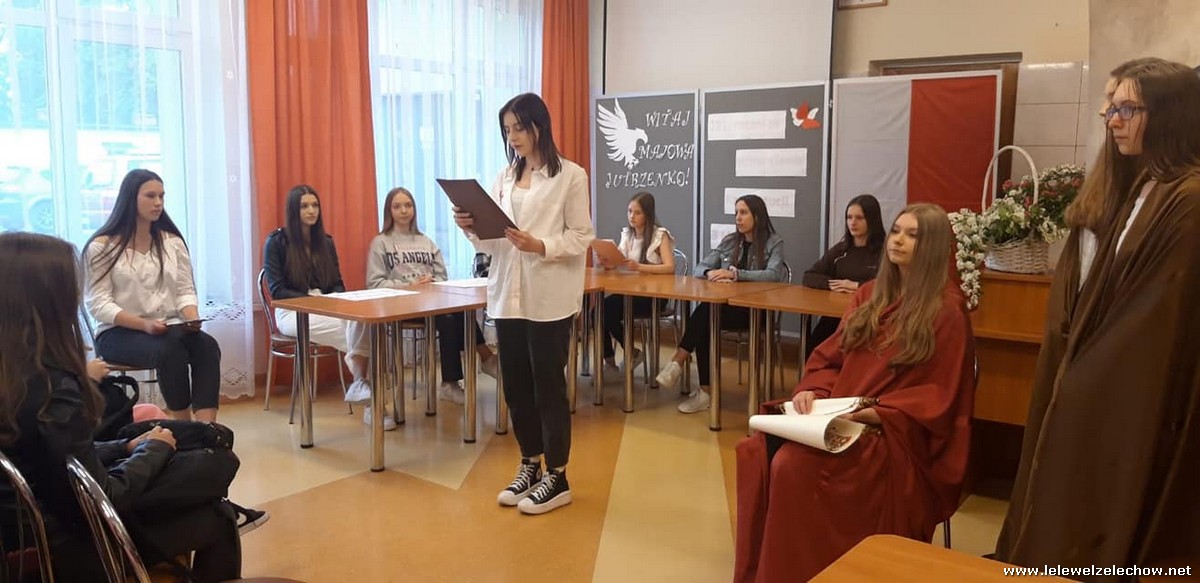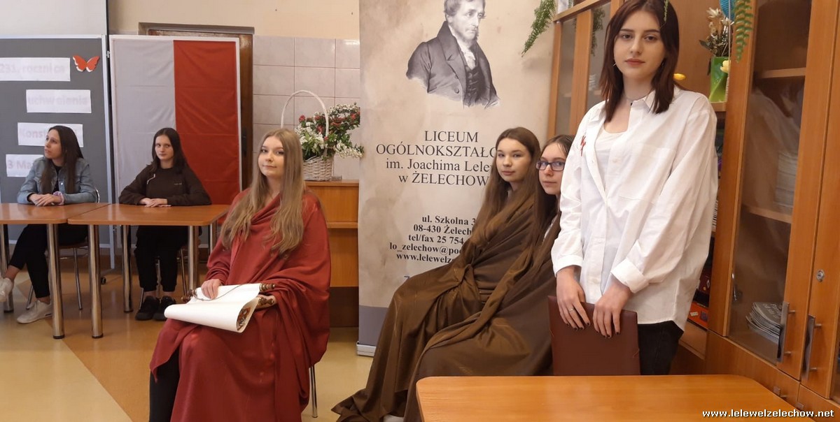 Inscenizacja przygotowana przez uczennice klasy 2a, przypominająca wydarzenia związane z uchwaleniem Konstytucji 3 Maja. Krótki program został zaprezentowany klasom pierwszym.