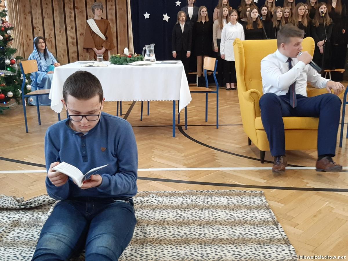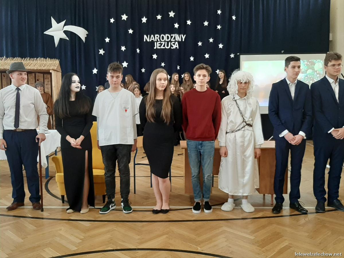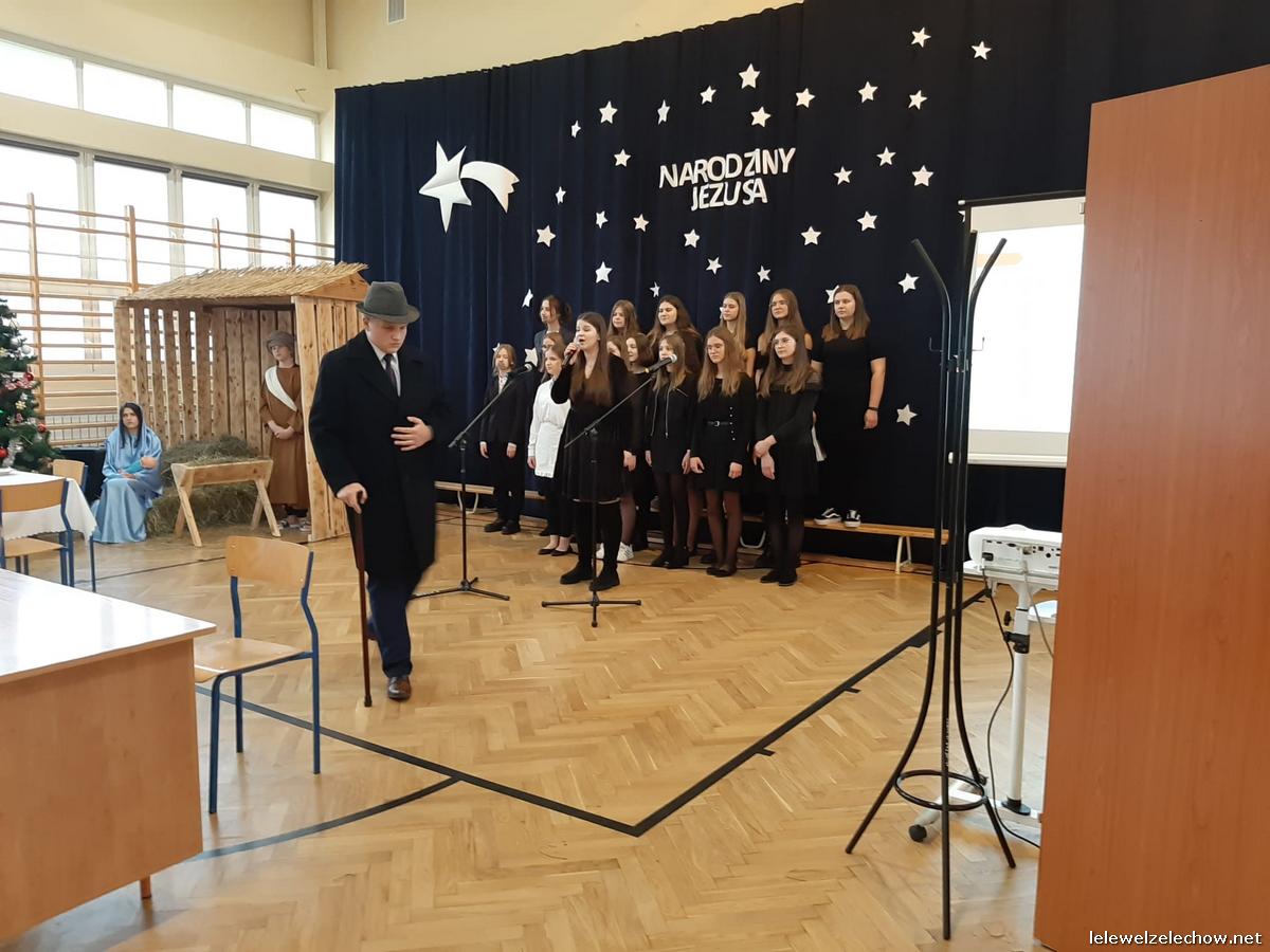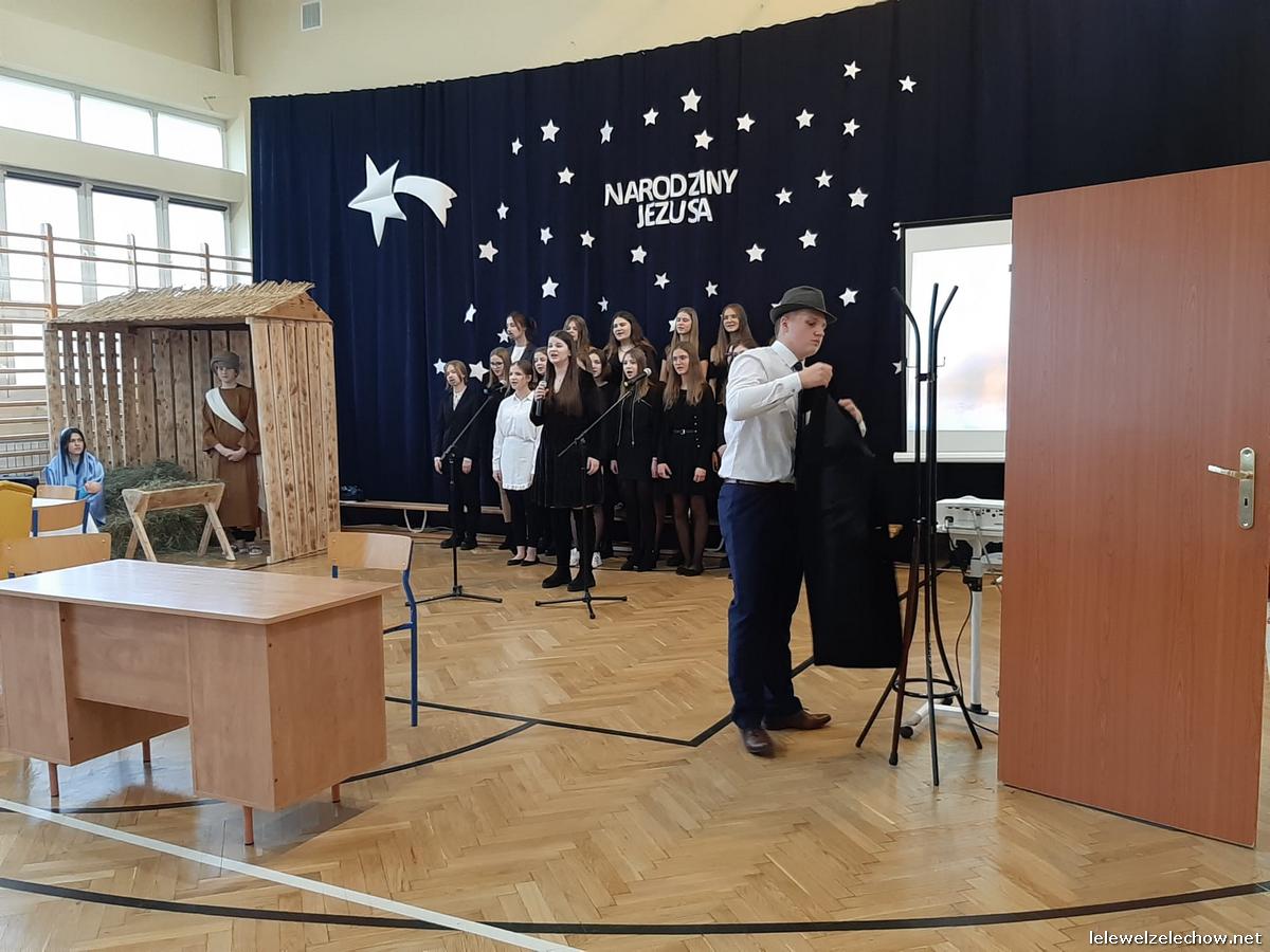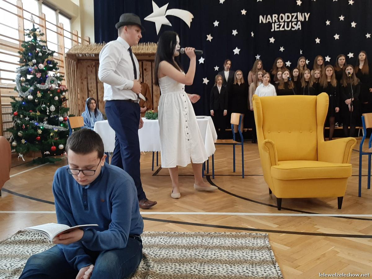 Przedstawienie dopełniały kolędy w niezwykłym wykonaniu Chóru Szkolnego oraz solistki Natalii Krawczyk. Zarówno pełne zaangażowania dialogi jak i przygotowana scenografia "wskazywały nam na to, co rzeczywiście jest najważniejsze w okresie świątecznym" jak powiedziała p. Dyrektor po przedstawieniu. Były również głębokie w swej treści życzenia dla uczniów, ich rodzin oraz pracowników szkoły od pani Dyrektor Sylwii Tomaszek oraz przewodniczącej Samorządu Uczniowskiego Patrycji Babiniec