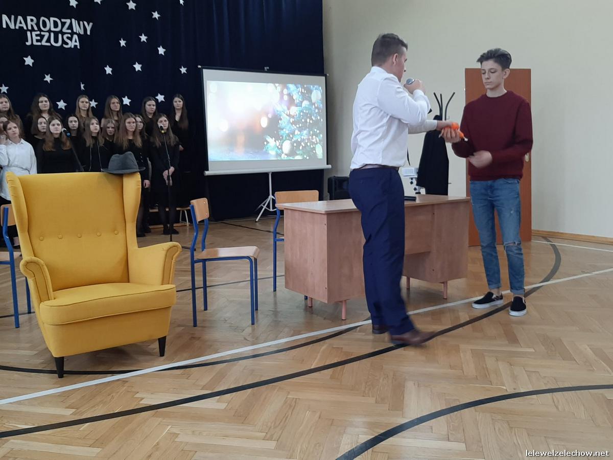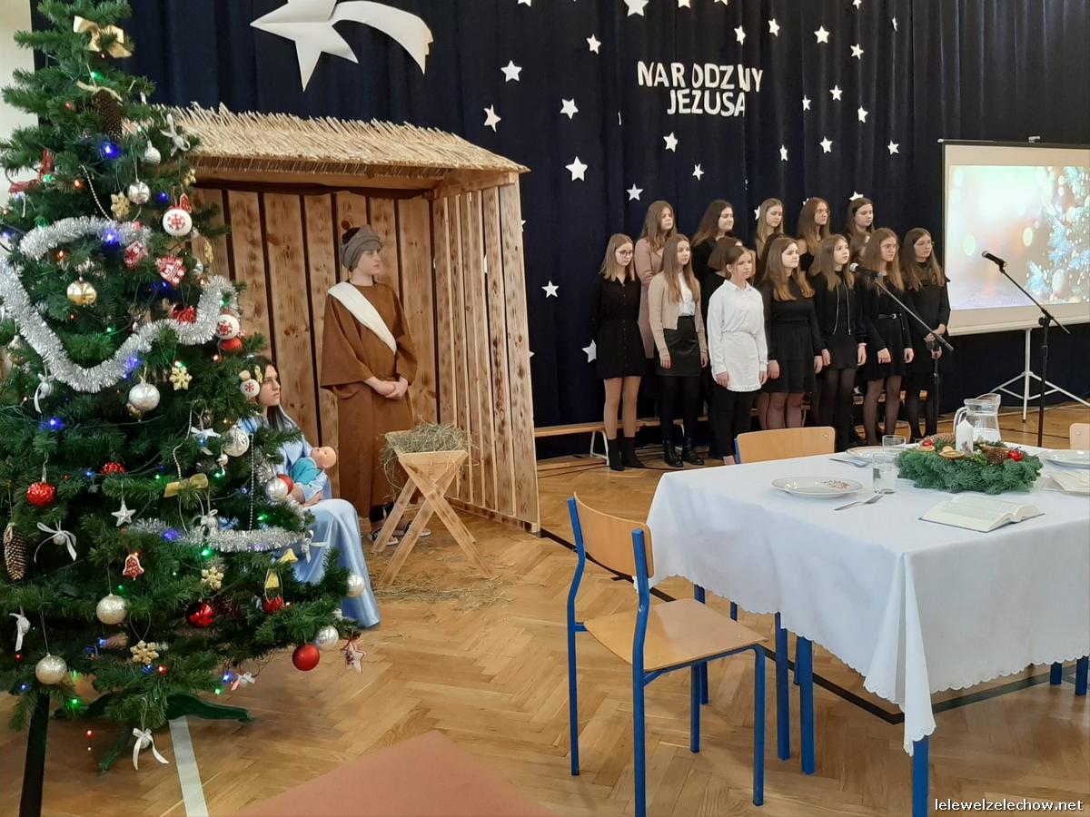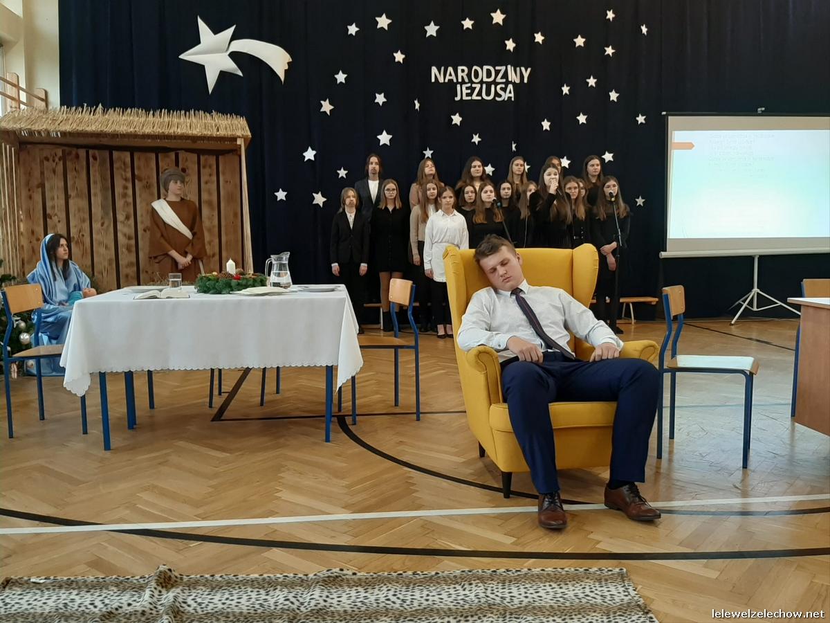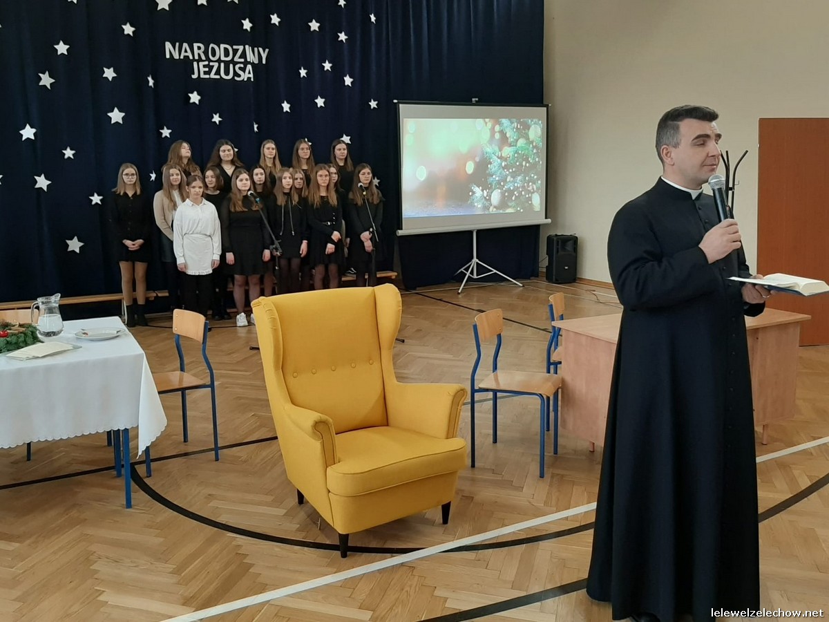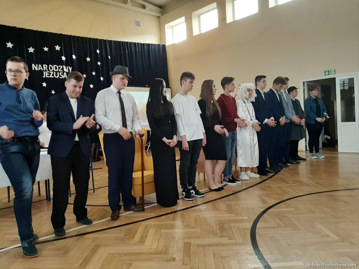Przedstawienie dopełniały kolędy w niezwykłym wykonaniu Chóru Szkolnego oraz solistki Natalii Krawczyk. Zarówno pełne zaangażowania dialogi jak i przygotowana scenografia "wskazywały nam na to, co rzeczywiście jest najważniejsze w okresie świątecznym" jak powiedziała p. Dyrektor po przedstawieniu. Były również głębokie w swej treści życzenia dla uczniów, ich rodzin oraz pracowników szkoły od pani Dyrektor Sylwii Tomaszek oraz przewodniczącej Samorządu Uczniowskiego Patrycji Babiniec