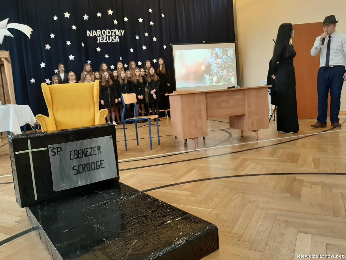 Piątek był dniem wyjątkowym w naszej szkole. A to dzięki inscenizacji Opowieści Wigilijnej Karola Dickensa przygotowanej przez naszą młodzież pod kierunkiem księdza Leszka Mućki.