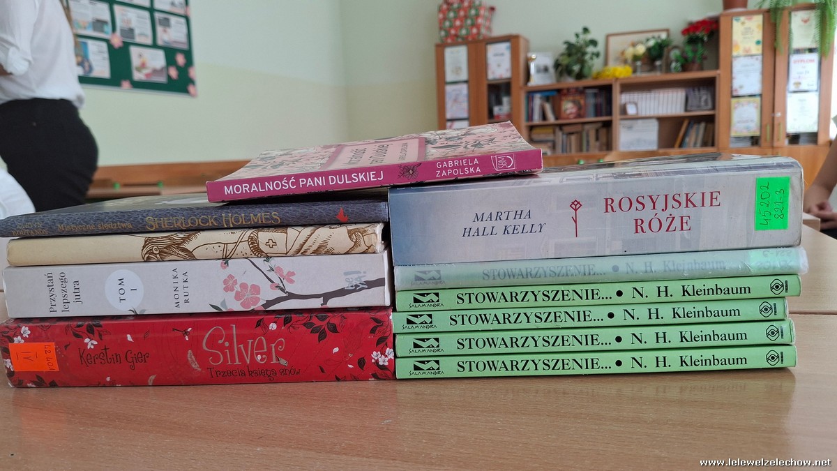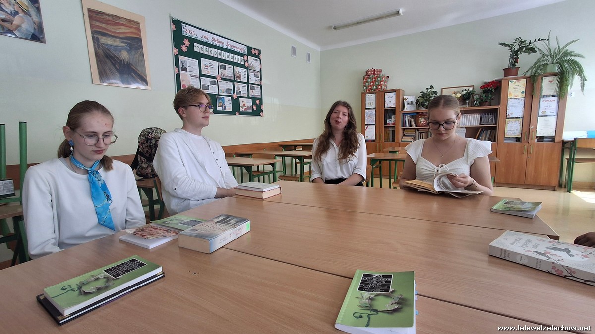 16 czerwca 2025 r. wrażeniami z ostatnio przeczytanych książek dzielili się: Agata, Julia, Klaudia, Kasia, Zosia, Kacper, Krystian i p. Magdalena Woźniak. Wśród prezentowanych tytułów znalazły się: