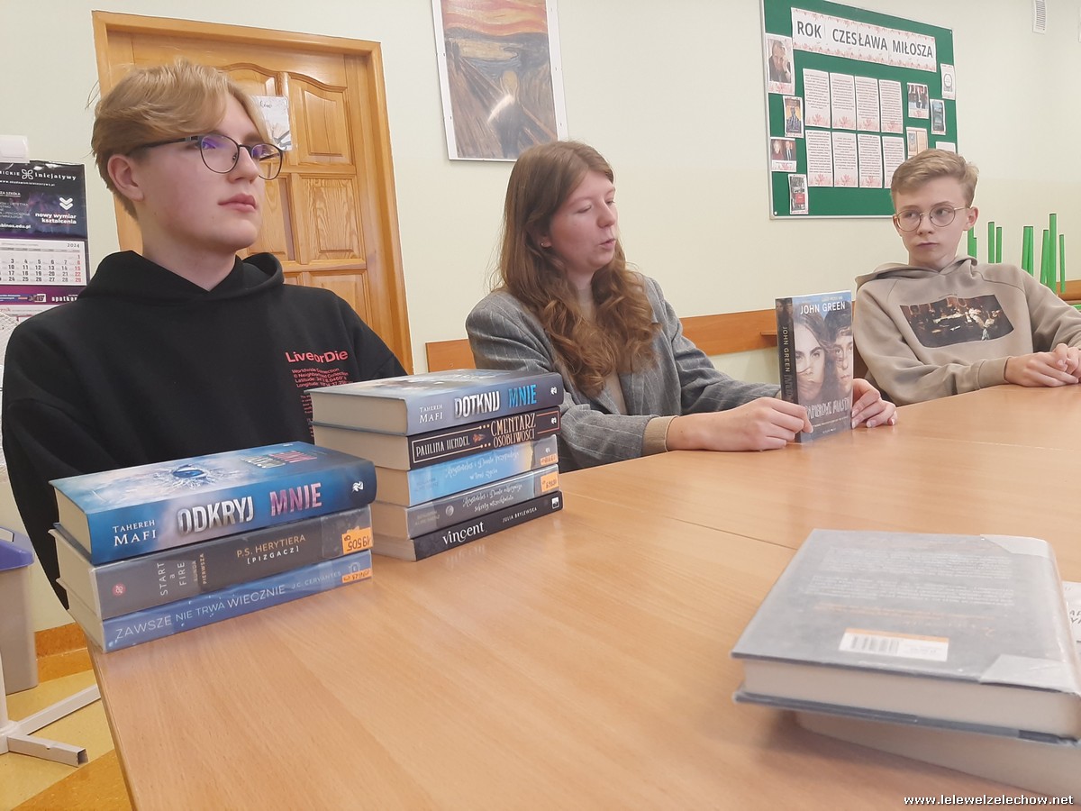 Do włączenia się w rozmowy o literaturze zaprosiliśmy również uczniów klas pierwszych, którzy ochoczo skorzystali z tej możliwości. Zaprezentowane zostały głównie utwory czytane w wakacje: