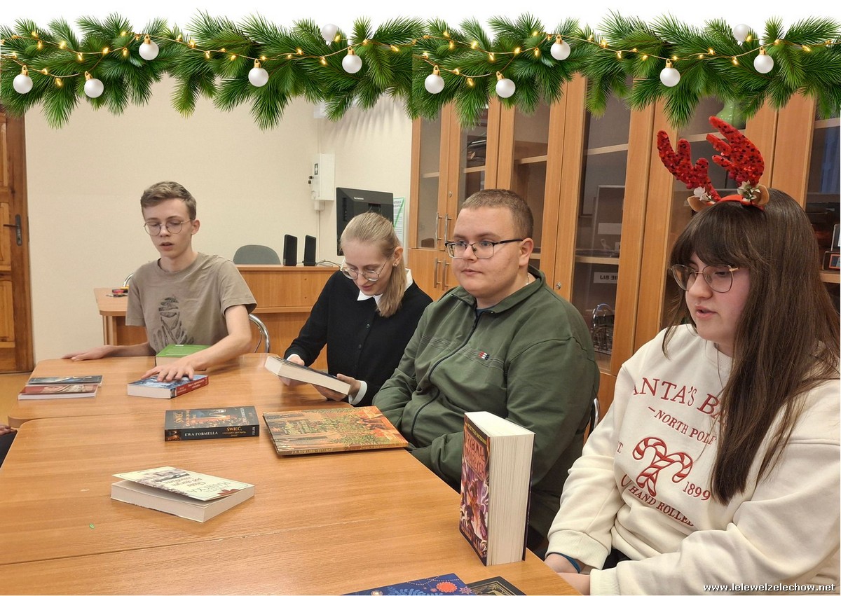 Grudniowe Spotkanie Koła Miłośników Czytania przebiegało w wyjątkowo ciepłym, świątecznym klimacie. Wśród prezentowanych tytułów szczególne miejsce zajęły wypożyczone z biblioteki szkolnej książki o tematyce bożonarodzeniowej, które zakupione zostały dzięki realizowanemu przez szkołę Narodowemu Programowi Rozwoju Czytelnictwa.