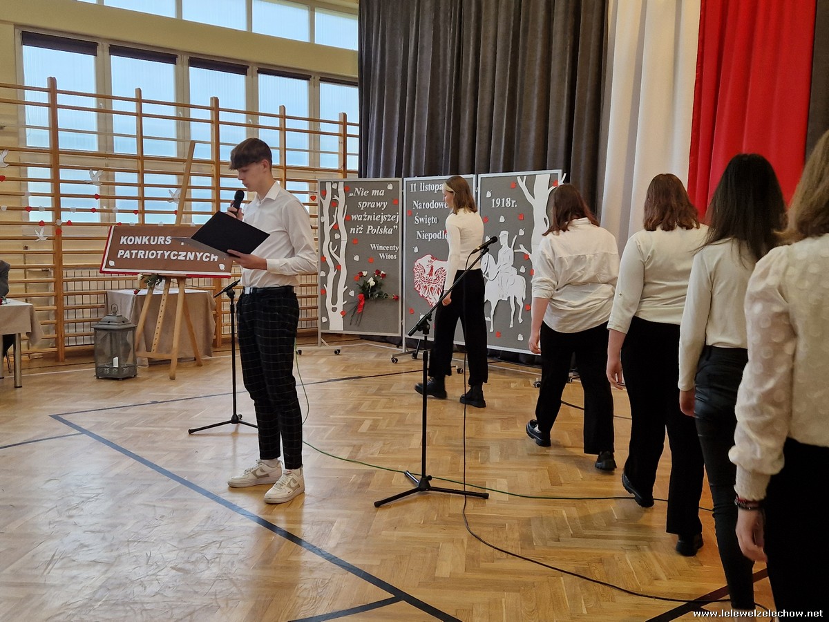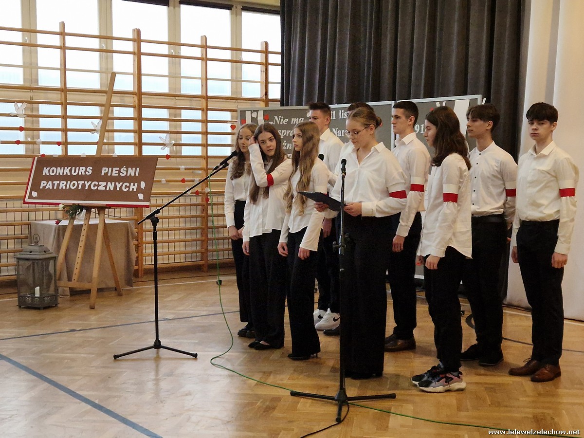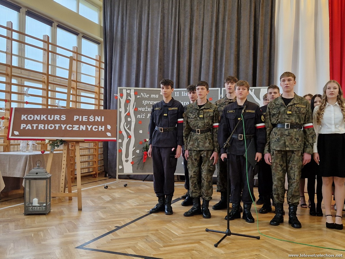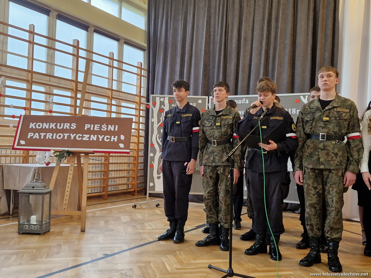 8 listopada odbył się coroczny Konkurs Pieśni Patriotycznych. Każda z klas zaprezentowała się wspaniale ale zwycięzca mógł być tylko jeden! Jury jednogłośnie oceniło najwyżej występ klasy 3a, która wykonała utwór ,,Dziś idę walczyć mamo”. Drugie miejsce zajęła klasa 4a z utworem ,,Niepodległa, niepokorna”. Na trzecim miejscu uplasowała się klasa 1a wykonując utwór ,,Dziewczyna z granatem”. Zdobywcy trzech pierwszych miejsc otrzymali z rąk pani Dyrektor Sylwii Tomaszek dyplomy i puchary. Pani Dyrektor pogratulowała zwycięzcom pięknych wykonań oraz podziękowała za udział wszystkim pozostałym klasom.