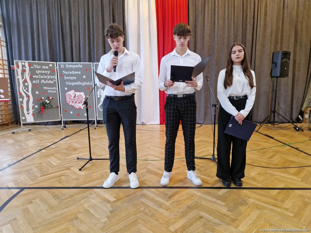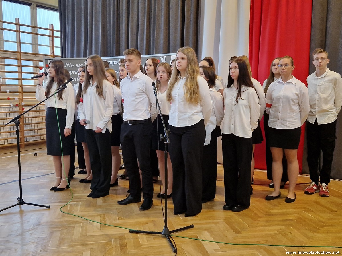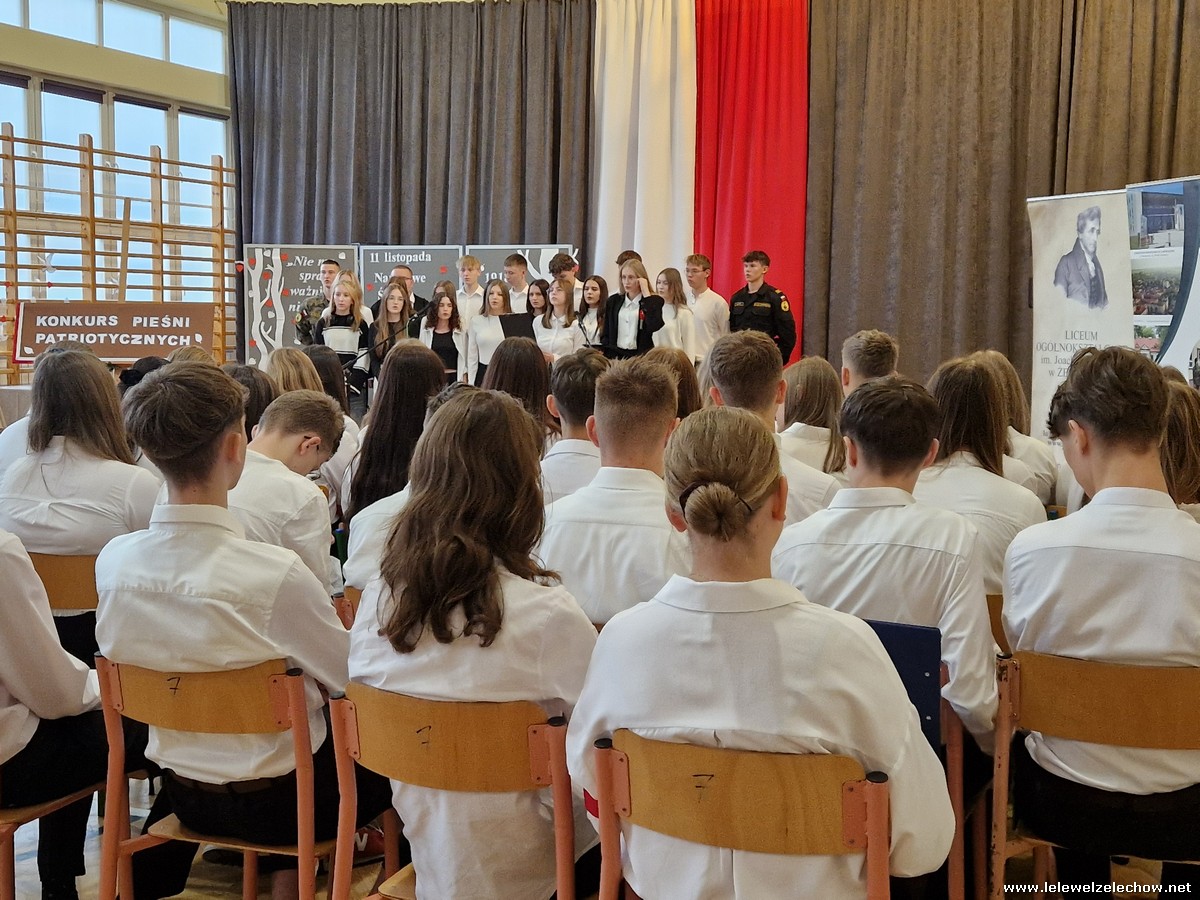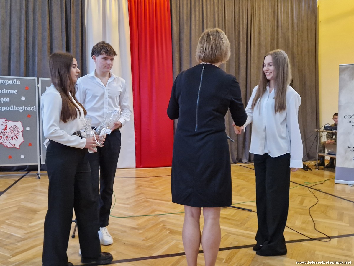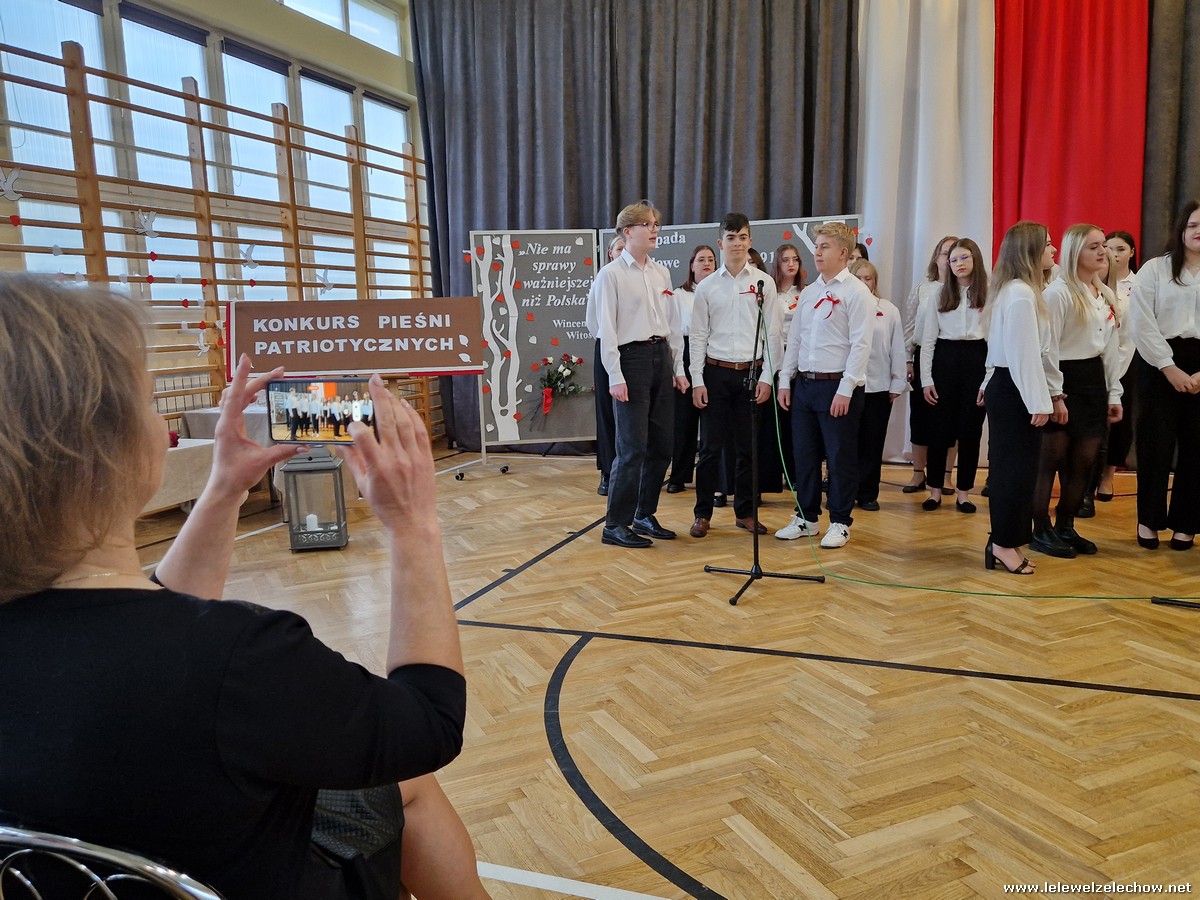 8 listopada odbył się coroczny Konkurs Pieśni Patriotycznych. Każda z klas zaprezentowała się wspaniale ale zwycięzca mógł być tylko jeden! Jury jednogłośnie oceniło najwyżej występ klasy 3a, która wykonała utwór ,,Dziś idę walczyć mamo”. Drugie miejsce zajęła klasa 4a z utworem ,,Niepodległa, niepokorna”. Na trzecim miejscu uplasowała się klasa 1a wykonując utwór ,,Dziewczyna z granatem”. Zdobywcy trzech pierwszych miejsc otrzymali z rąk pani Dyrektor Sylwii Tomaszek dyplomy i puchary. Pani Dyrektor pogratulowała zwycięzcom pięknych wykonań oraz podziękowała za udział wszystkim pozostałym klasom.