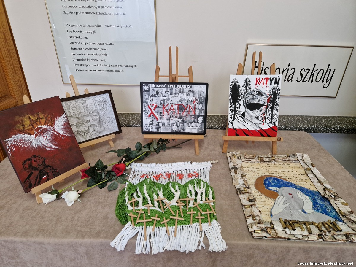 W ramach obchodów Dnia Pamięci Ofiar Zbrodni Katyńskiej ogłoszony został w naszym liceum konkurs plastyczny. Przygotowane przez uczniów prace zostały zaprezentowane w holu szkoły. Pani Urszula Kobielus organizator konkursu podziękowała młodzieży za przygotowane bardzo ciekawe i liczne prace oraz ogłosiła wyniki konkursu: